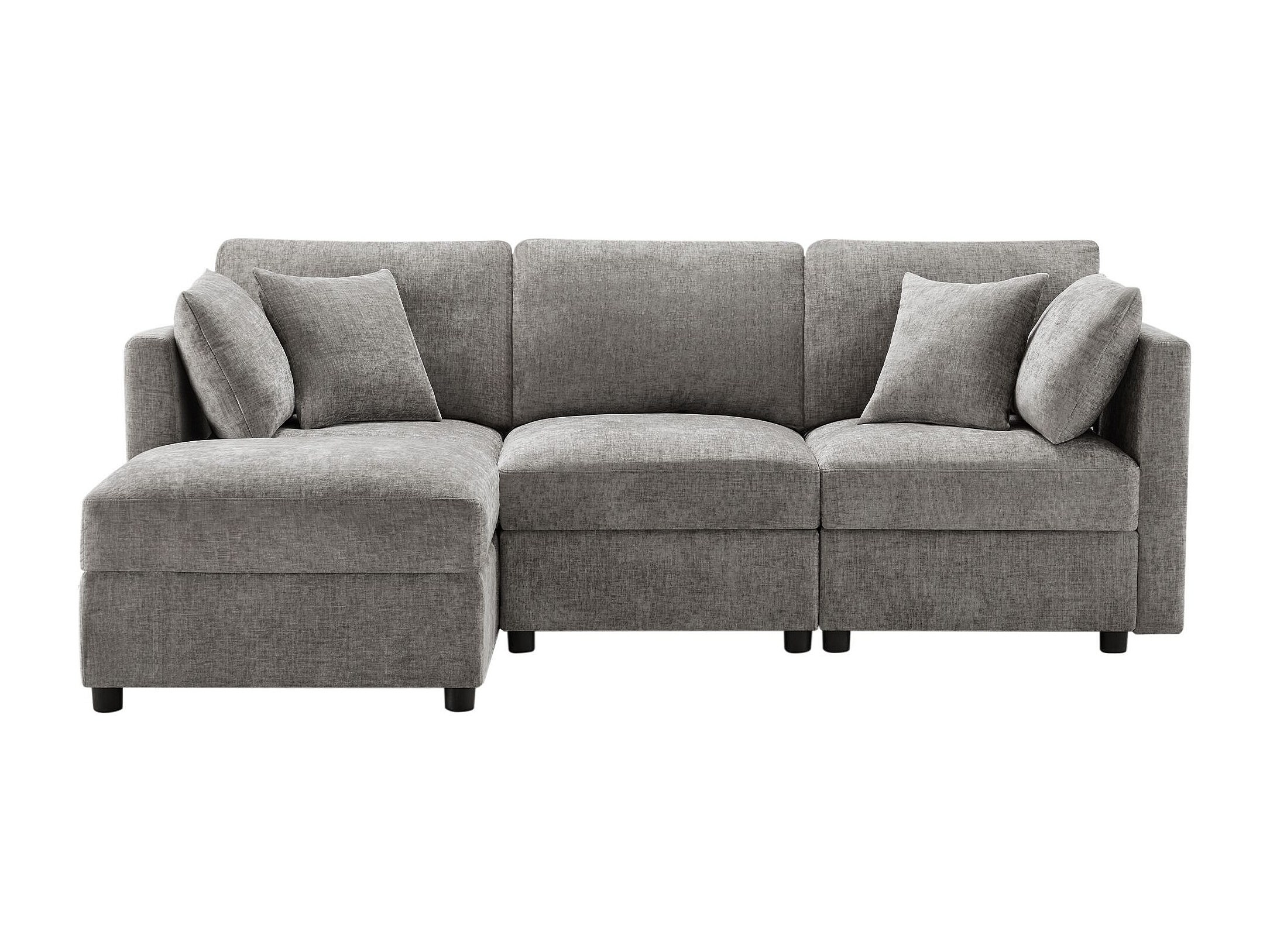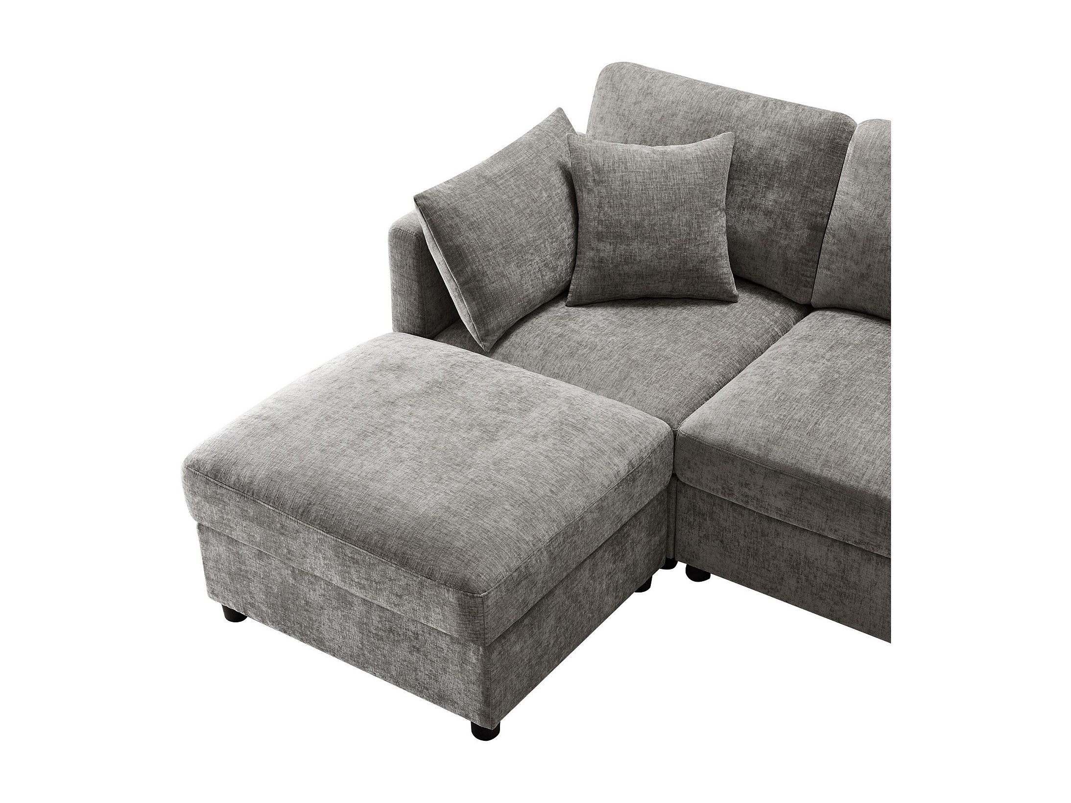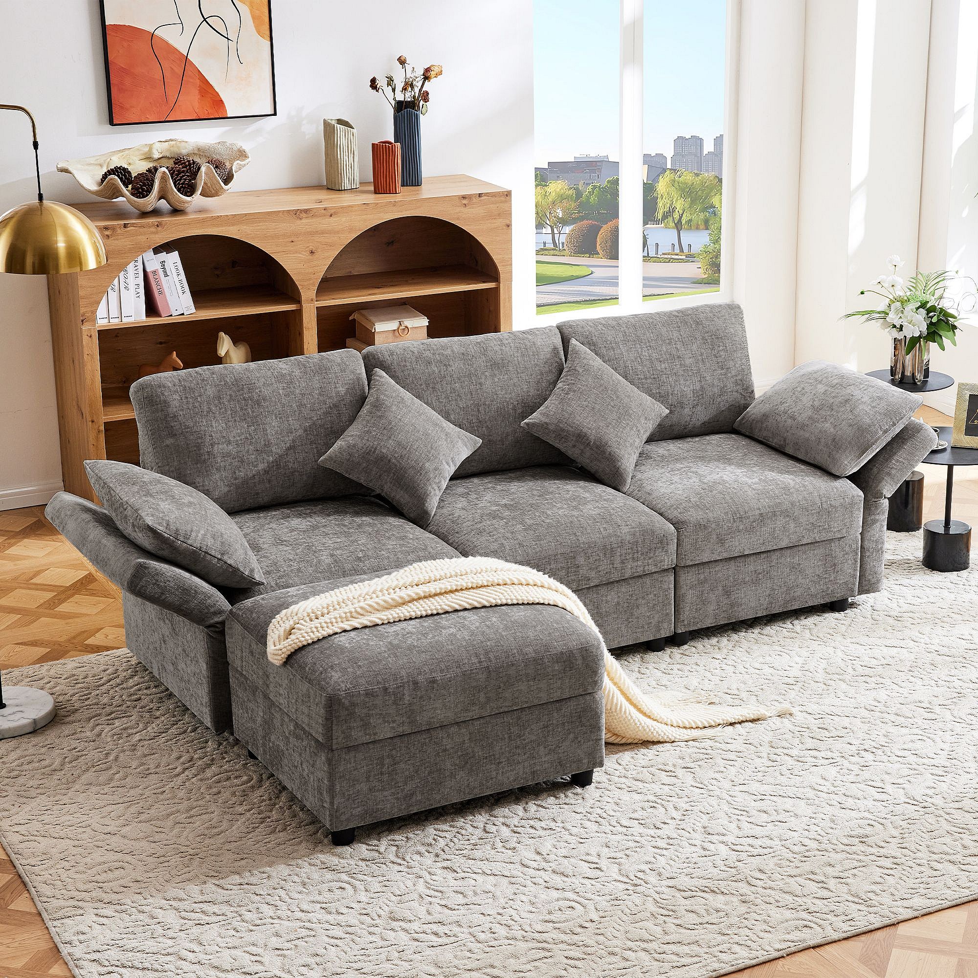 Canapé 3 places, canapé d'angle avec repose-pieds et accoudoirs réglables - chenille grise