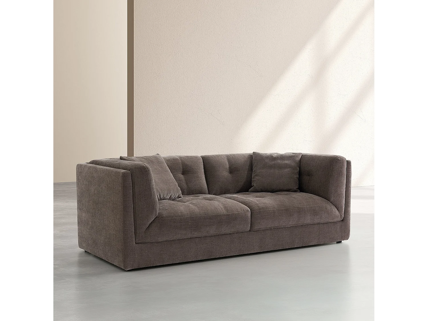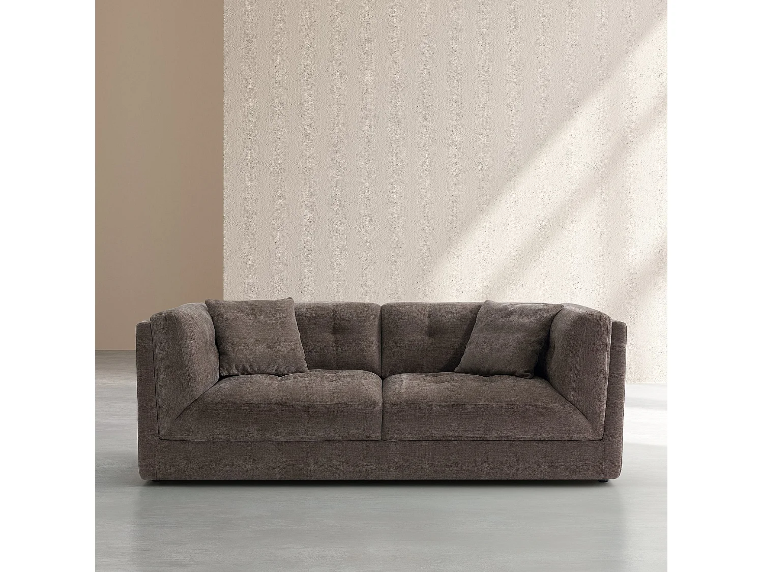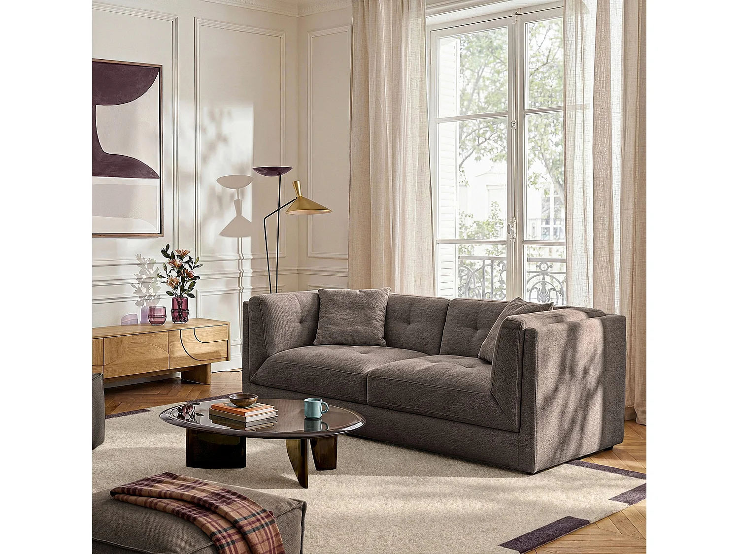 Canapé 3 places capitonné en tissu garni de plumes - Taupe