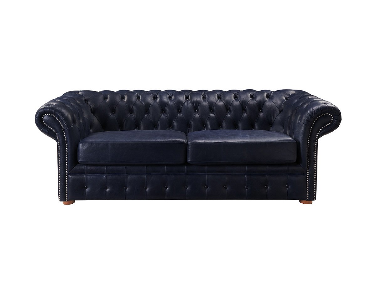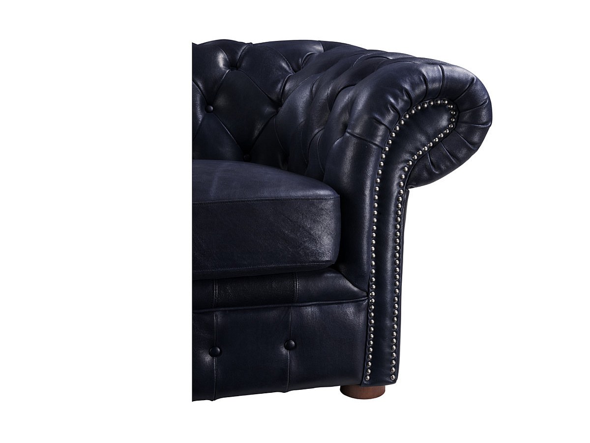 Canapé 3 places chesterfield CLOTAIRE 100% cuir - bleu nuit