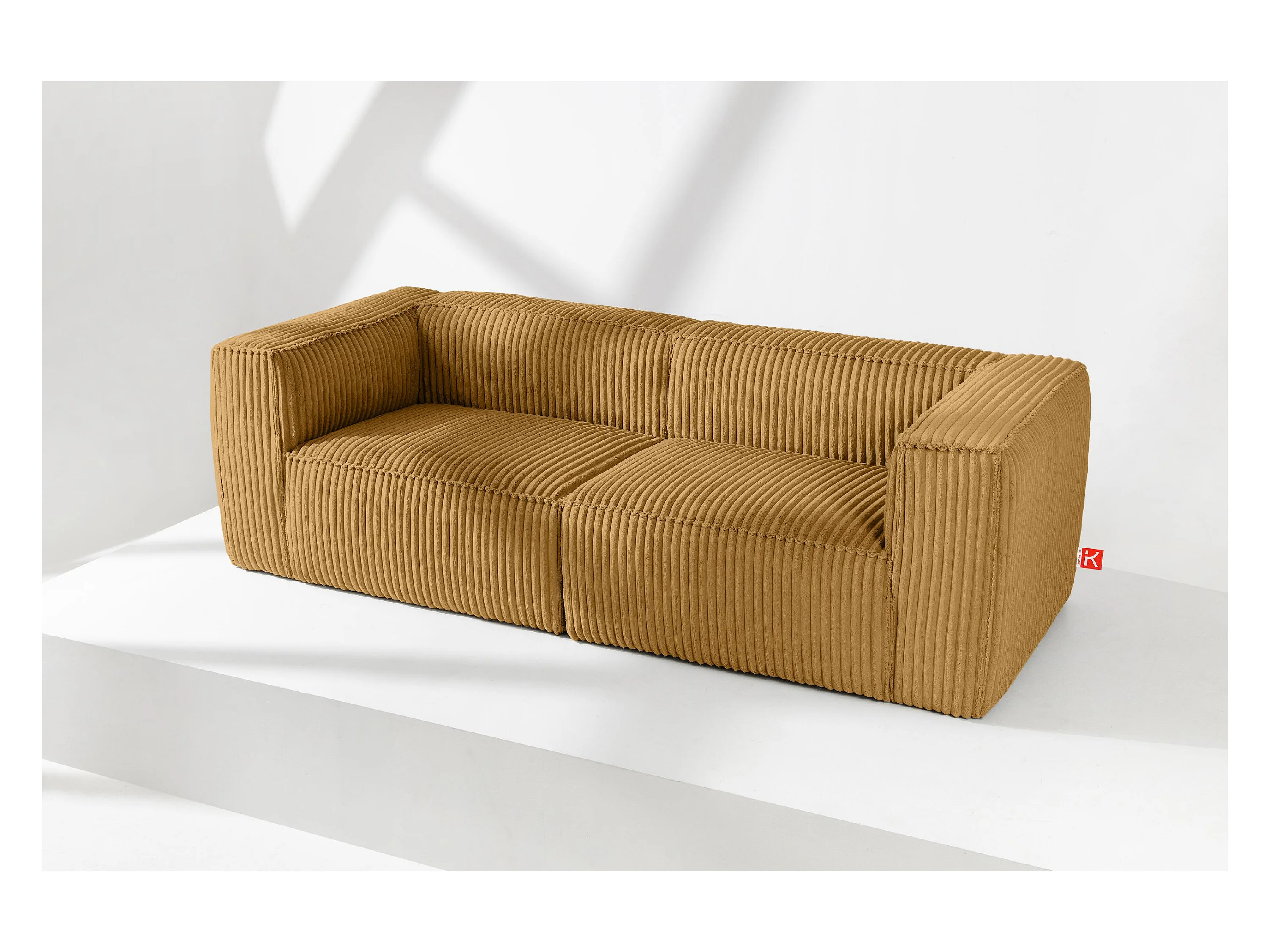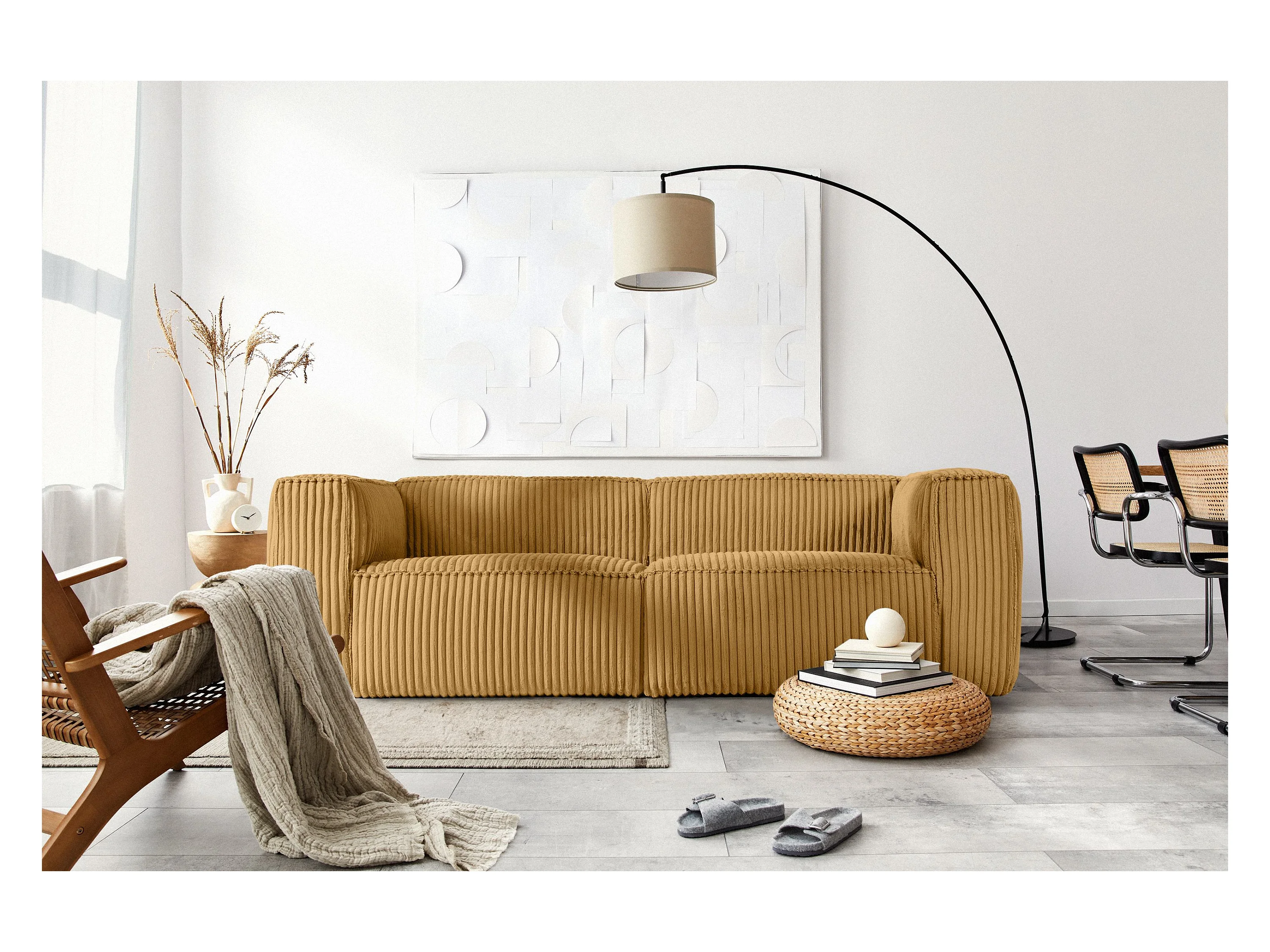 Canapé 3 places contemporain en velours côtelé large - jaune - FEROX