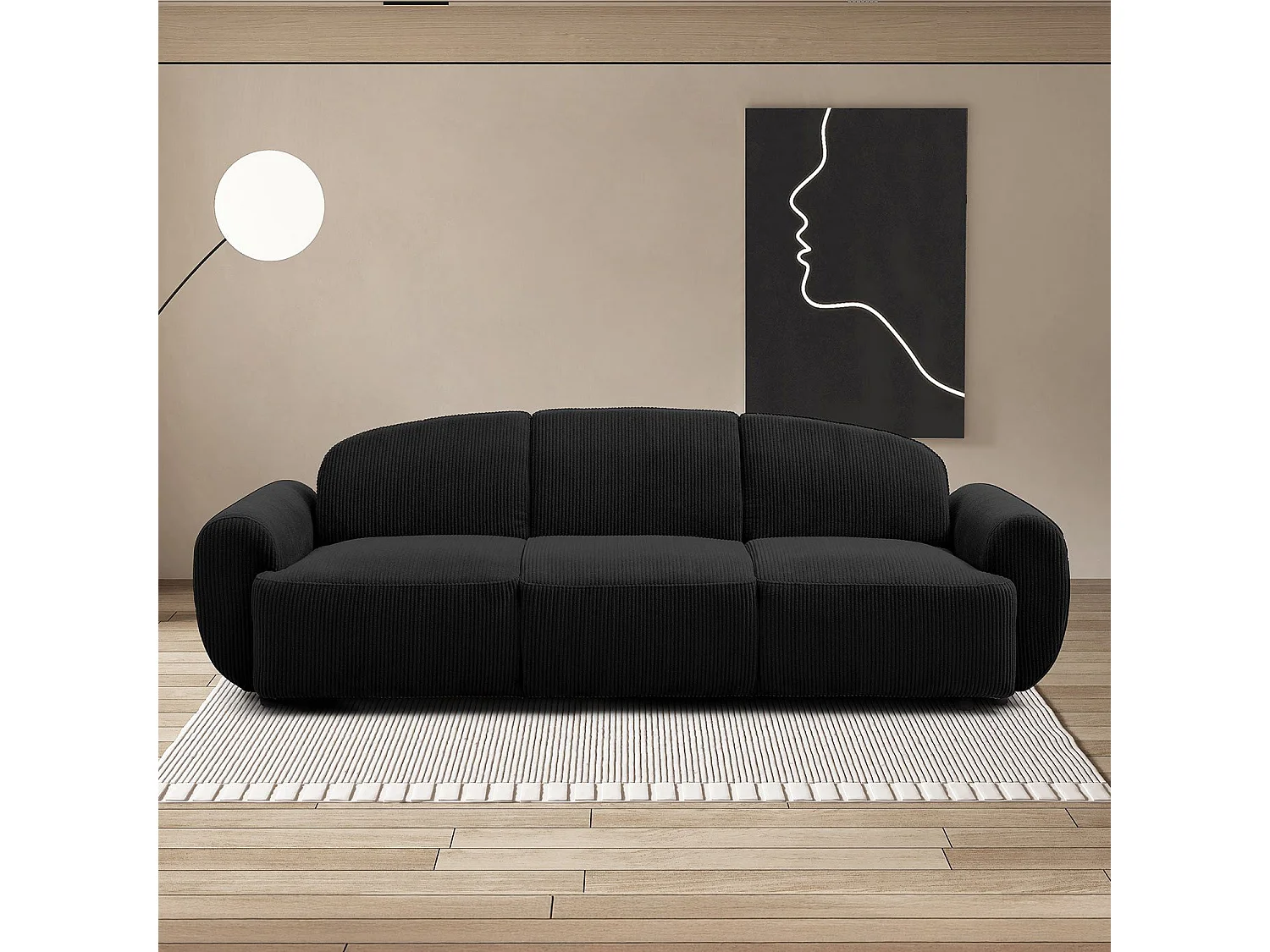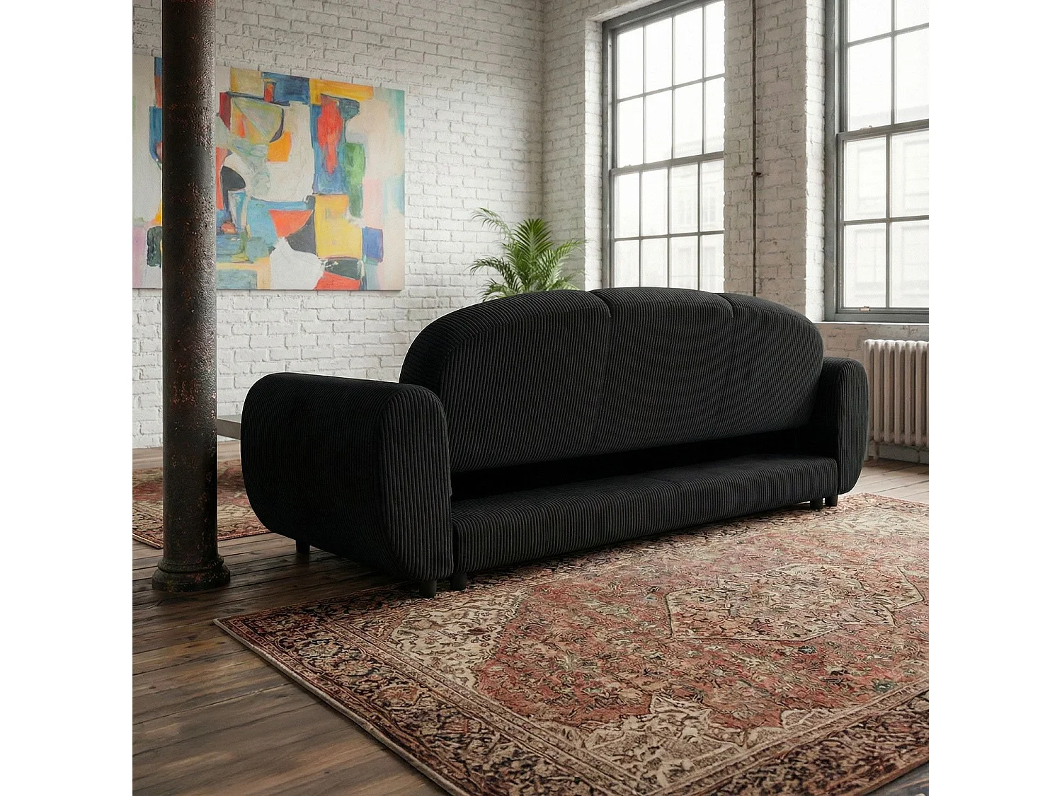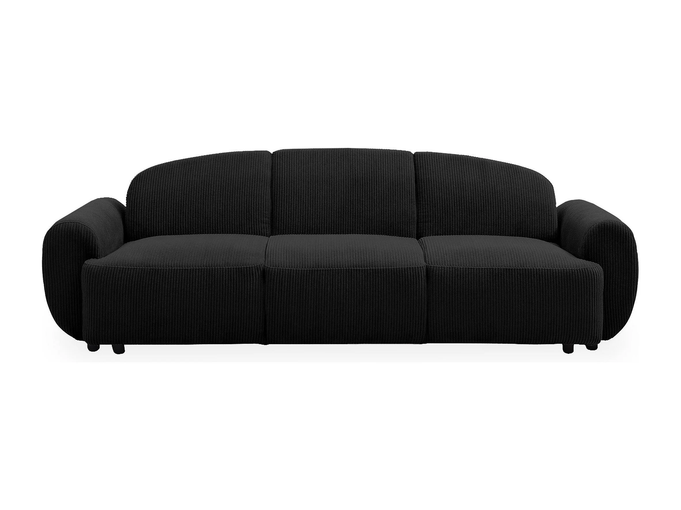 Canapé 3 places convertible dossier et accoudoirs arrondis Oliver Velours côtelé Noir