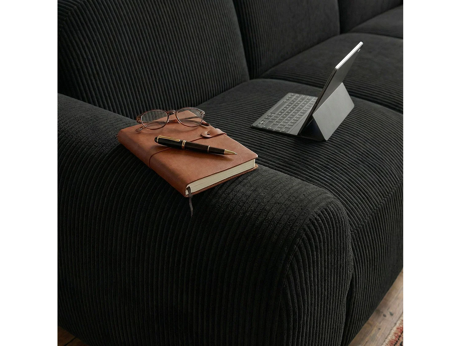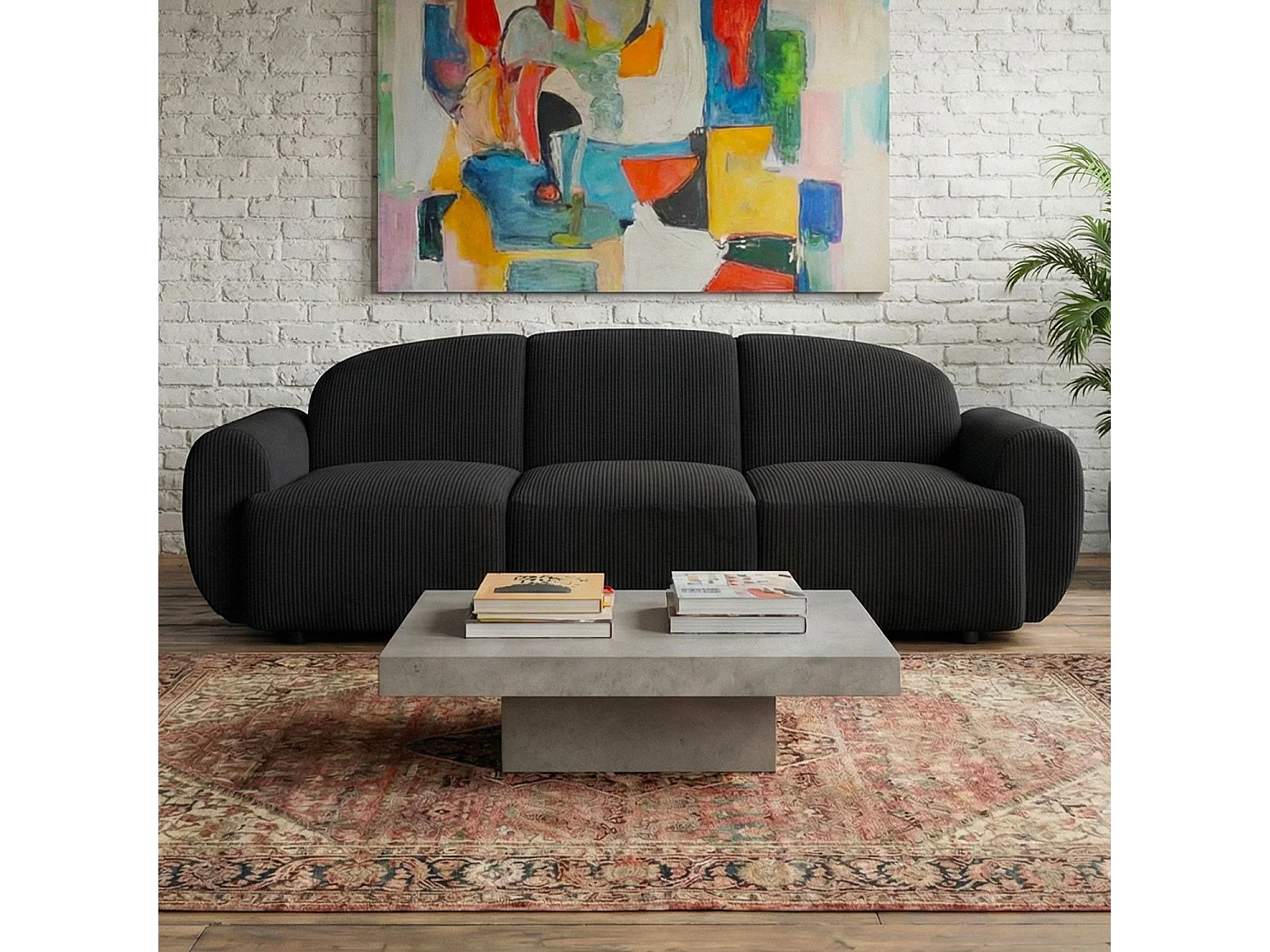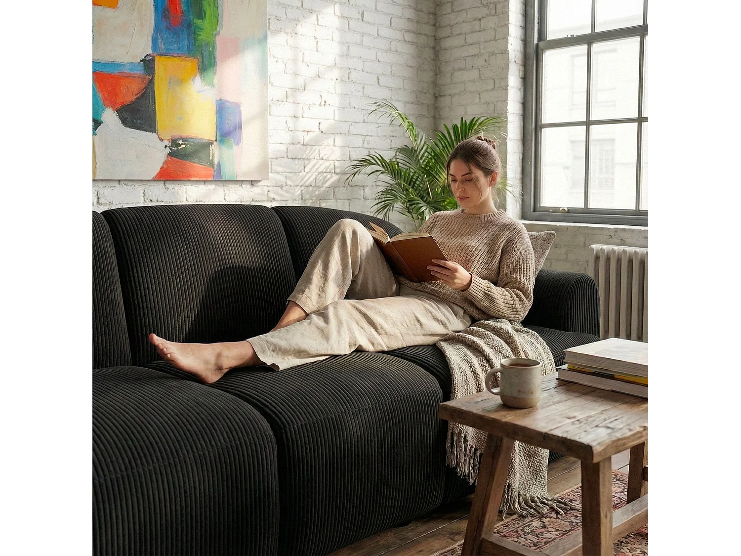 Canapé 3 places convertible dossier et accoudoirs arrondis Oliver Velours côtelé Noir