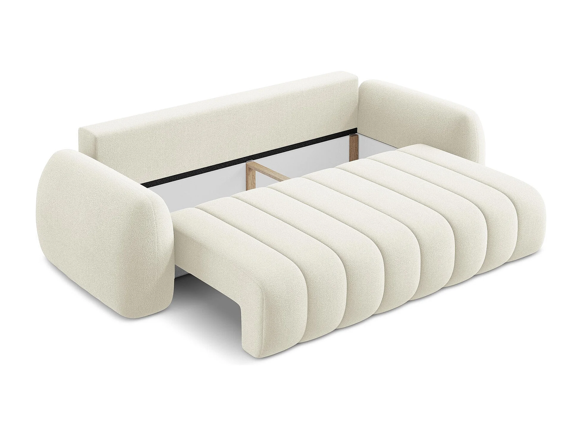 Canapé 3 places convertible en tissu bouclette - beige clair - PELE