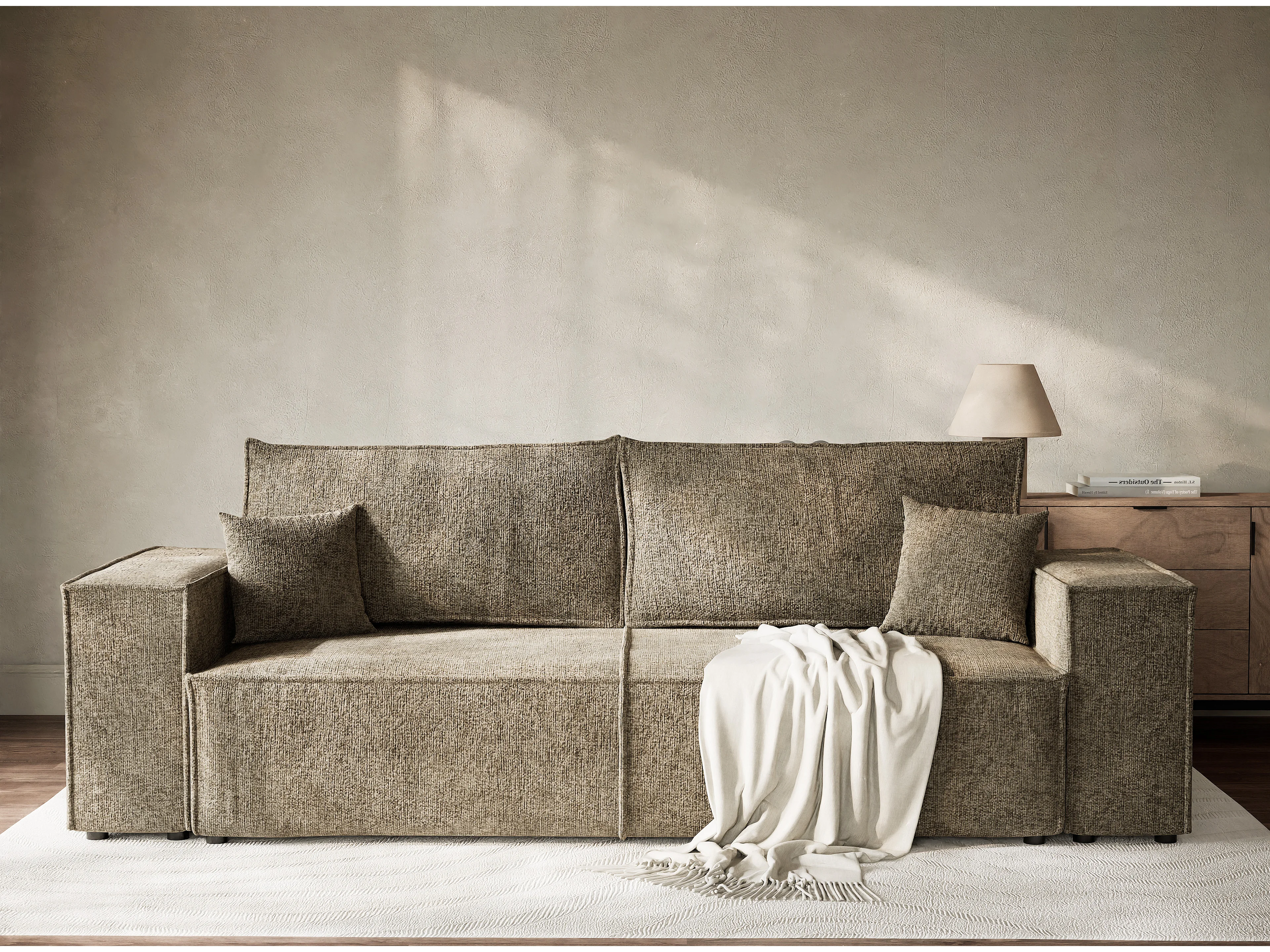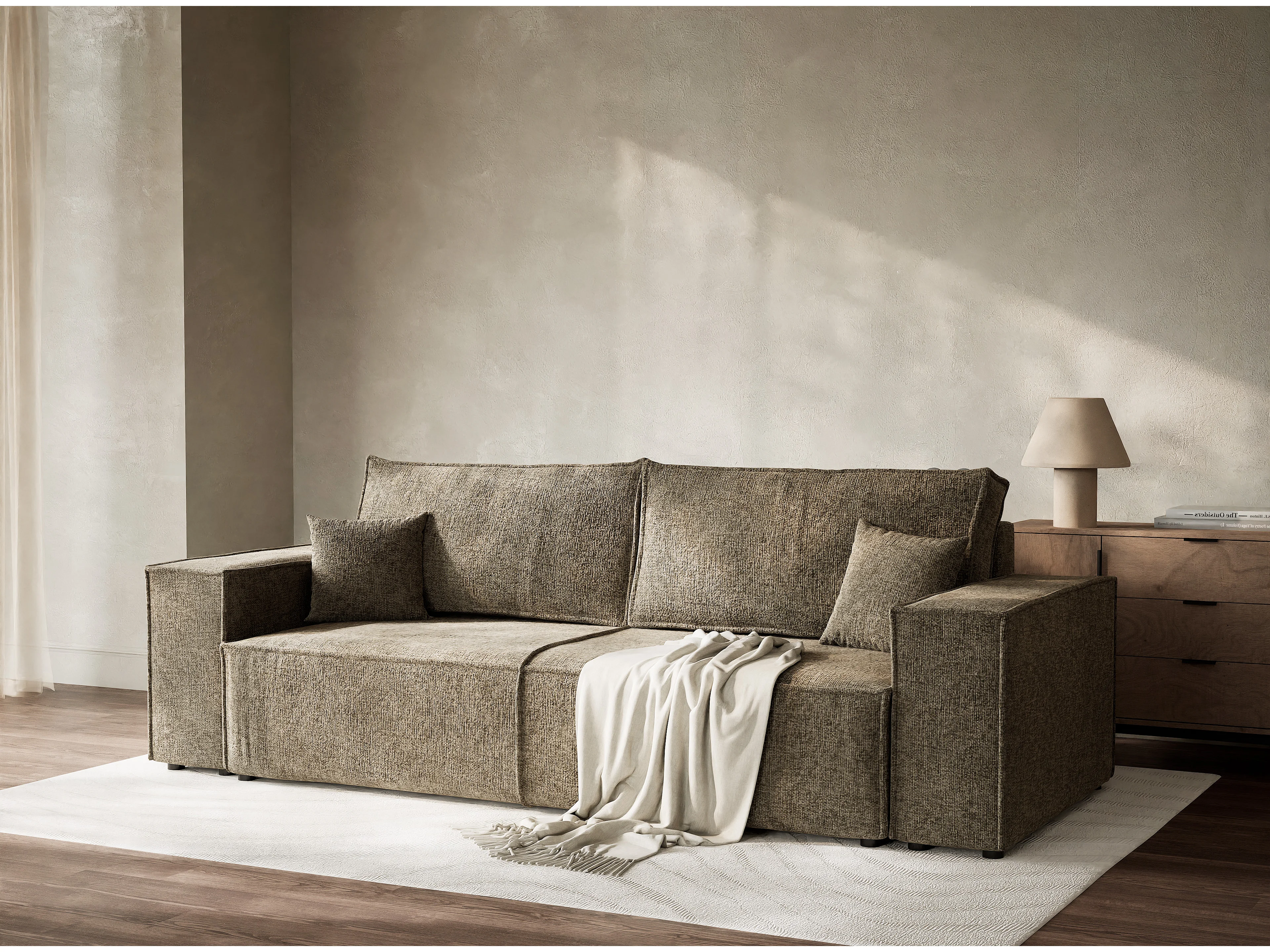 Canapé 3 places convertible en tissu chenille brun MILOS