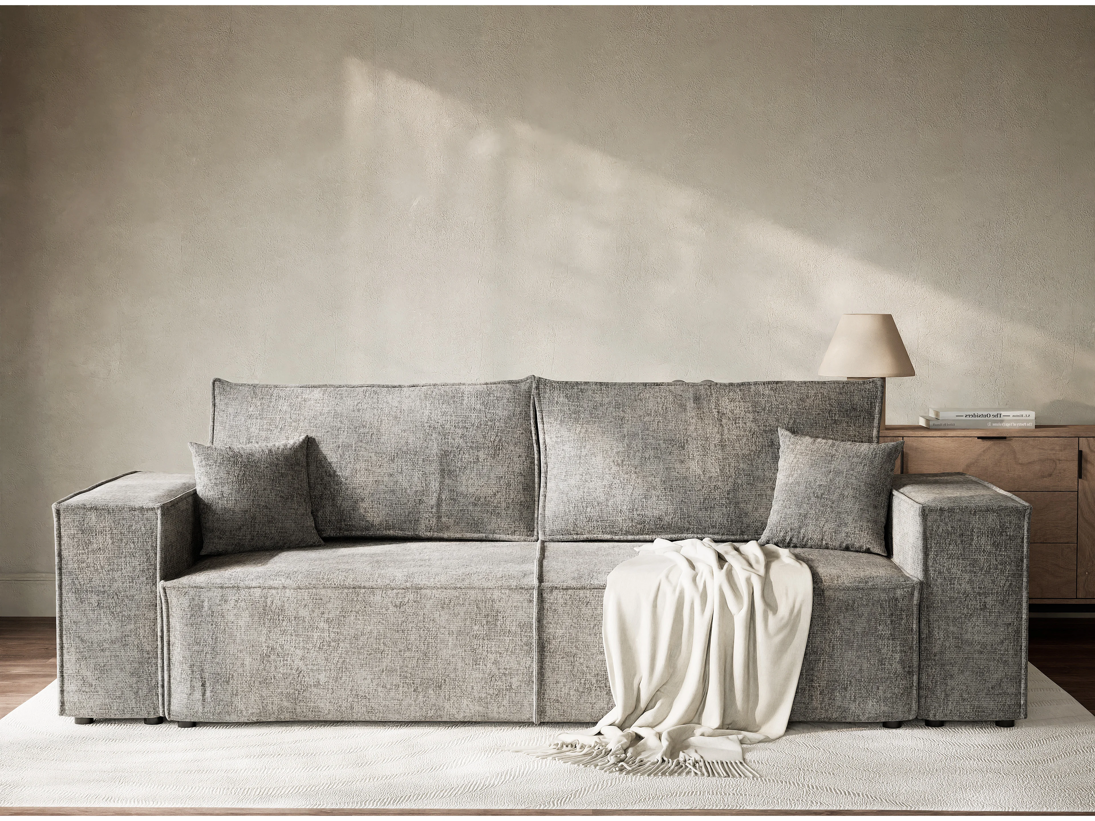 Canapé 3 places convertible en tissu chenille gris MILOS
