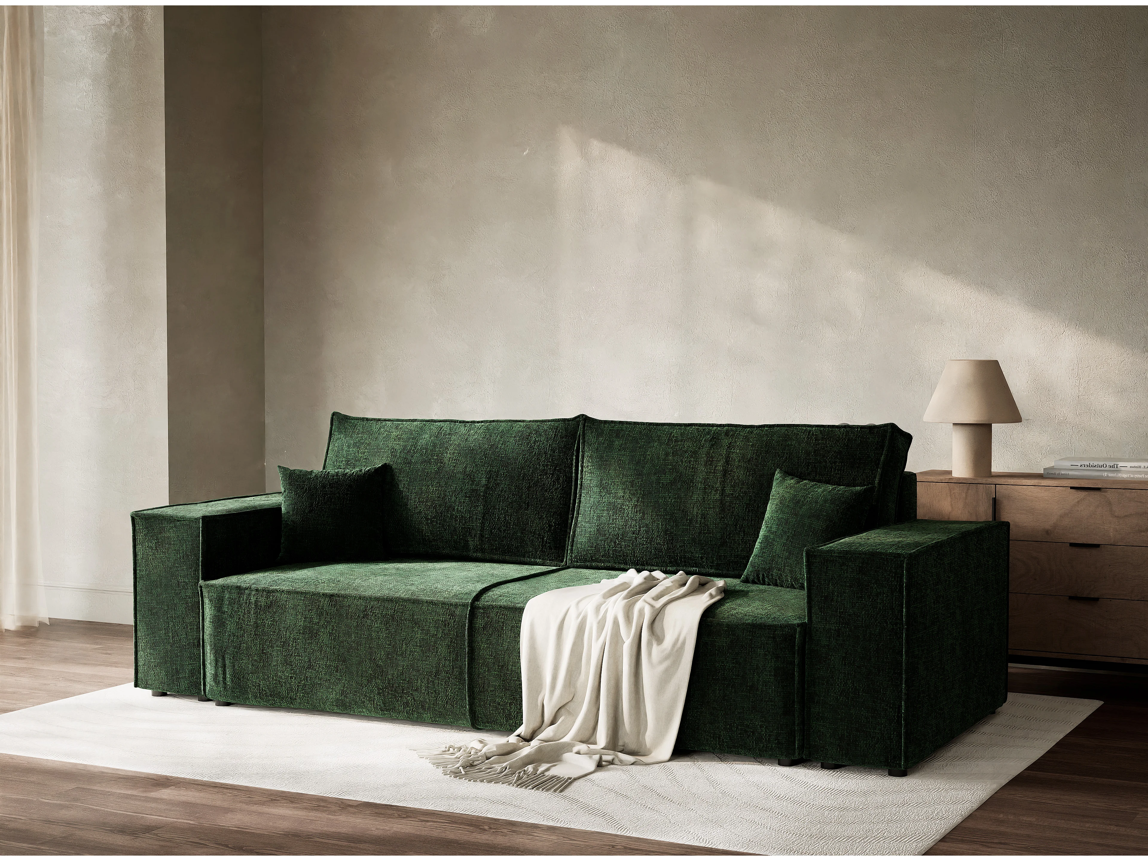Canapé 3 places convertible en tissu chenille vert foncé MILOS