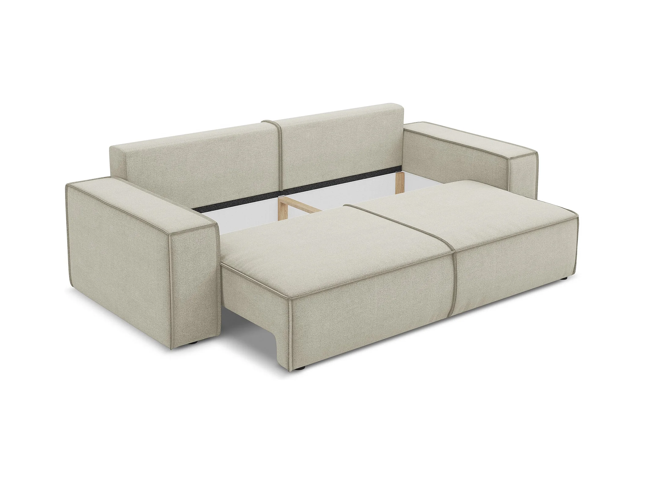 Canapé 3 places convertible en tissu texturé - beige clair - KIMO