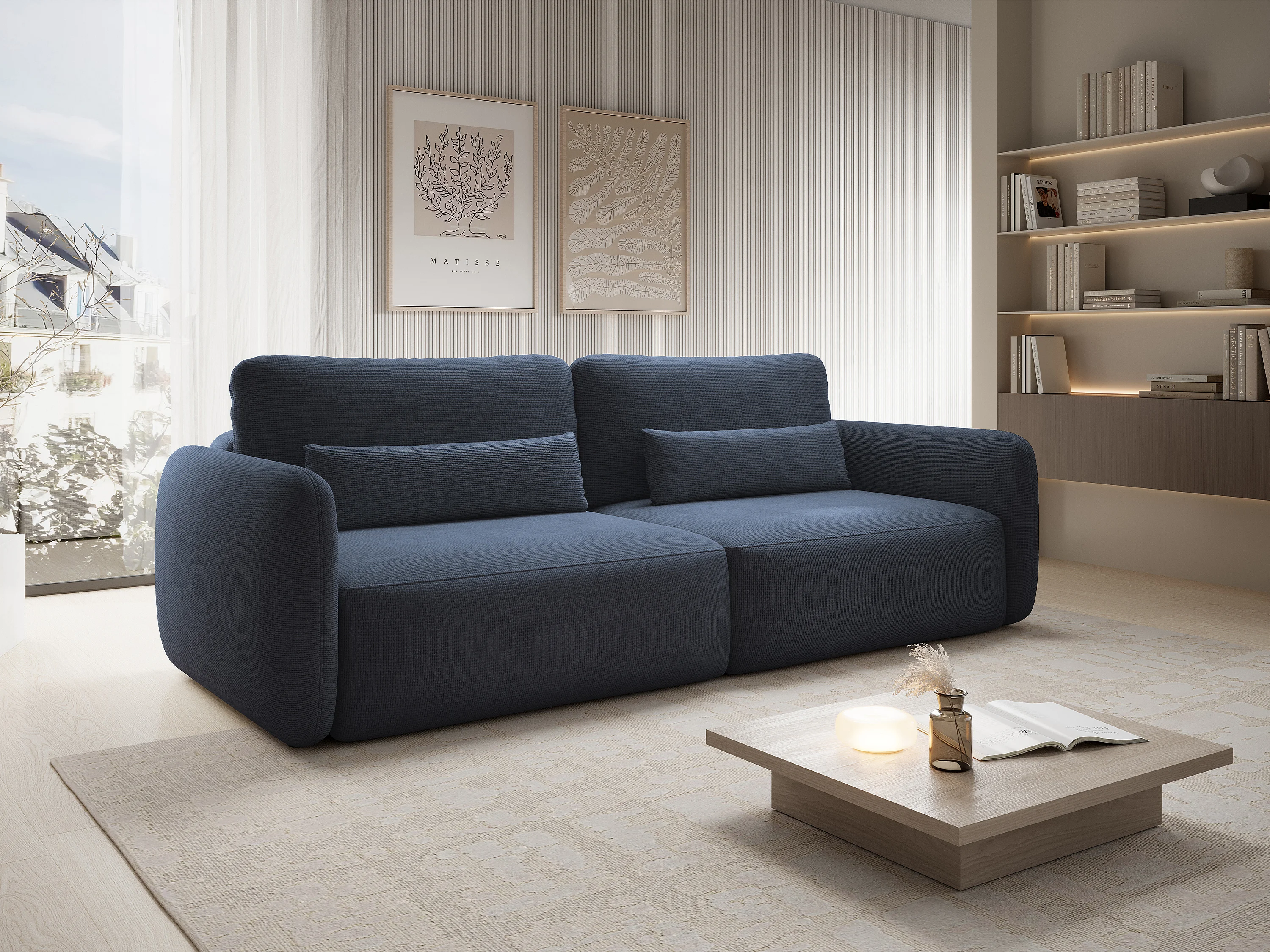 Canapé 3 places convertible en tissu texturé bleu marine VOPOZA