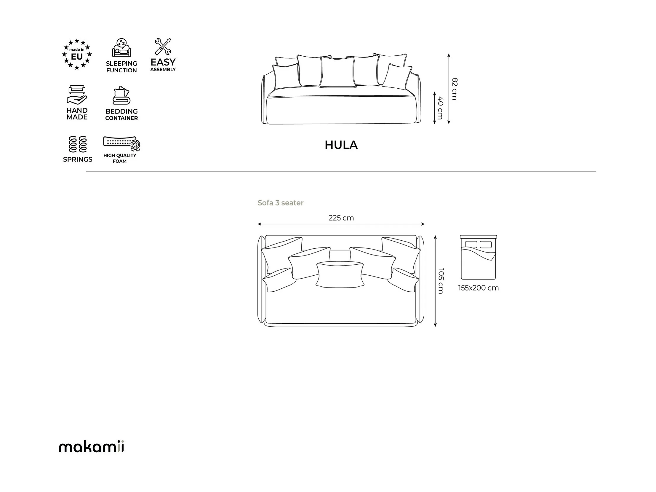 Canapé 3 places convertible en tissu texturé - vert clair - HULA