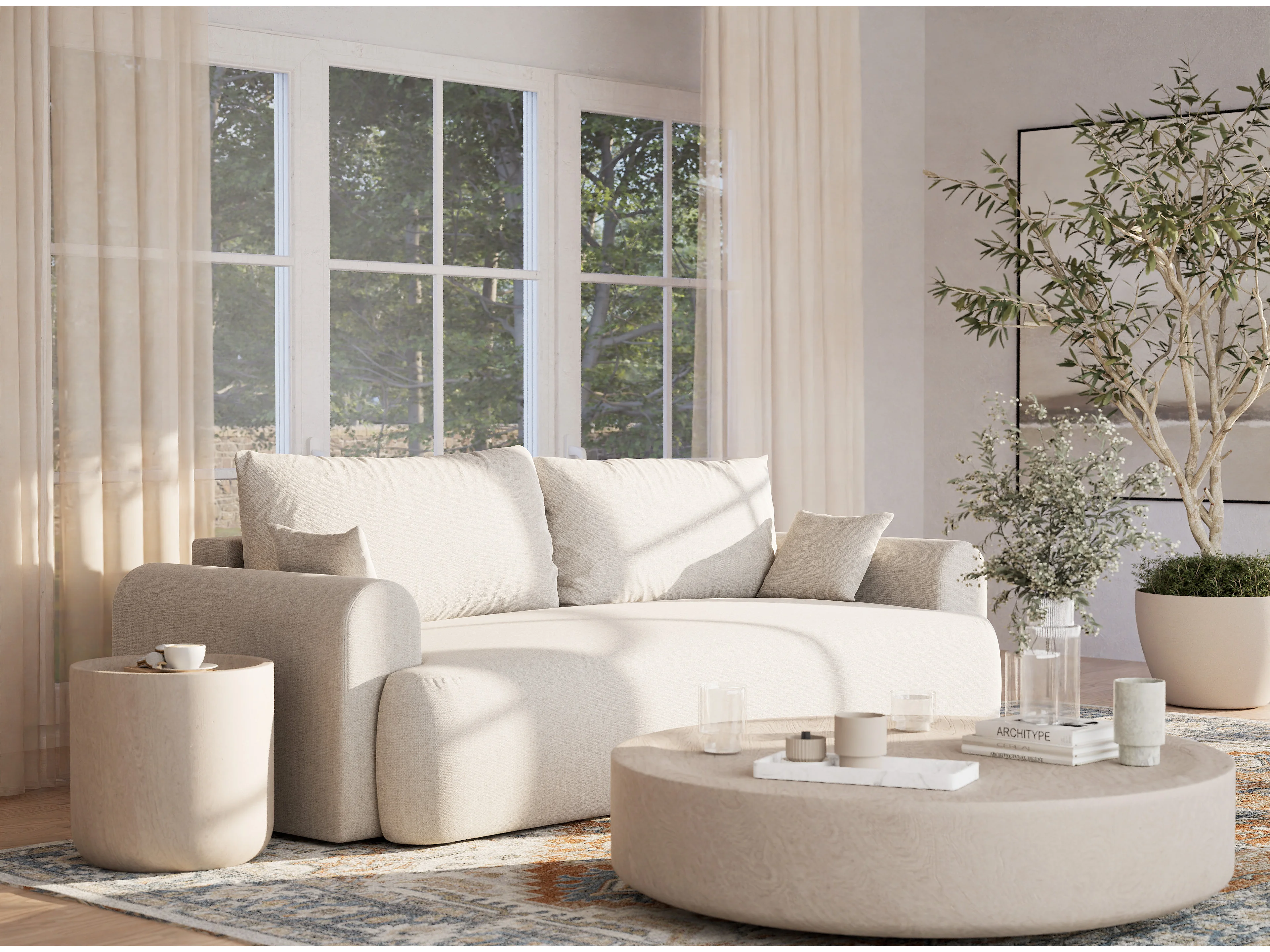 Canapé 3 places convertible en tissu tressé beige clair TOLUCA