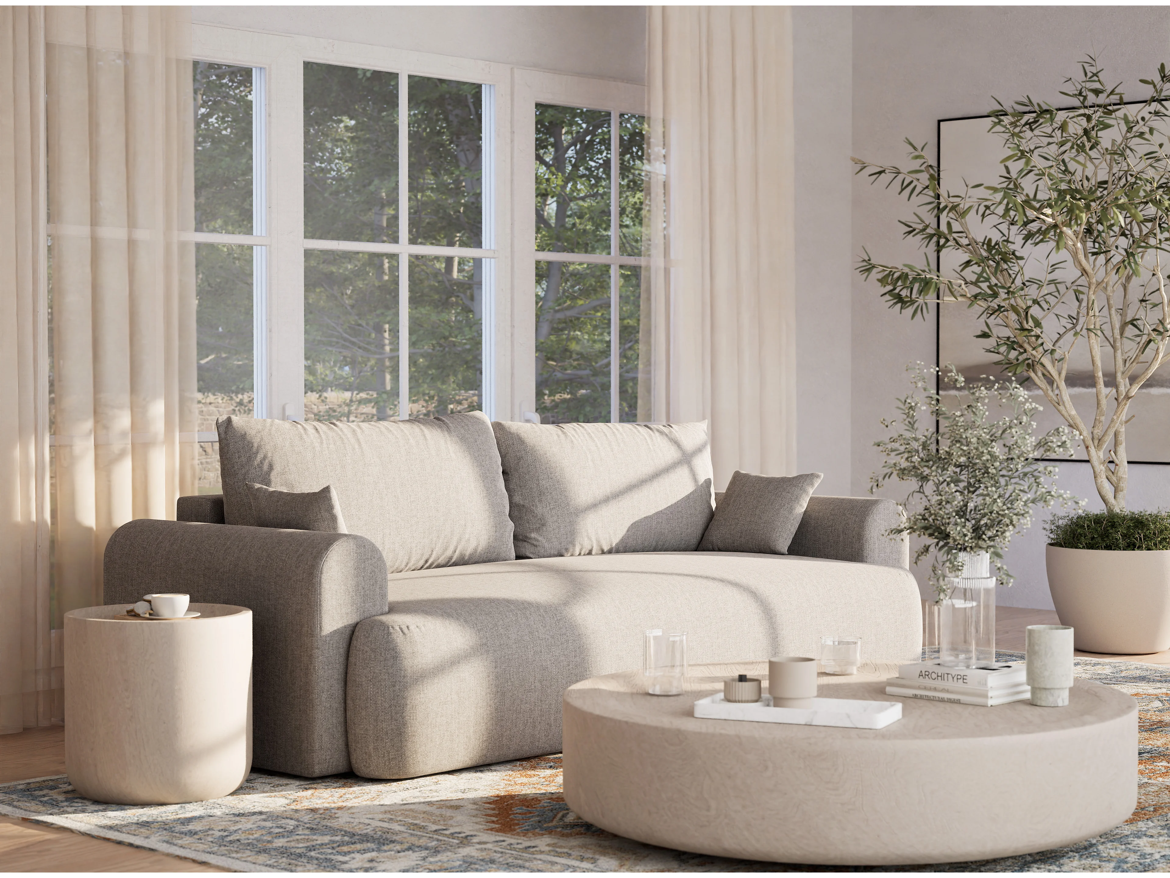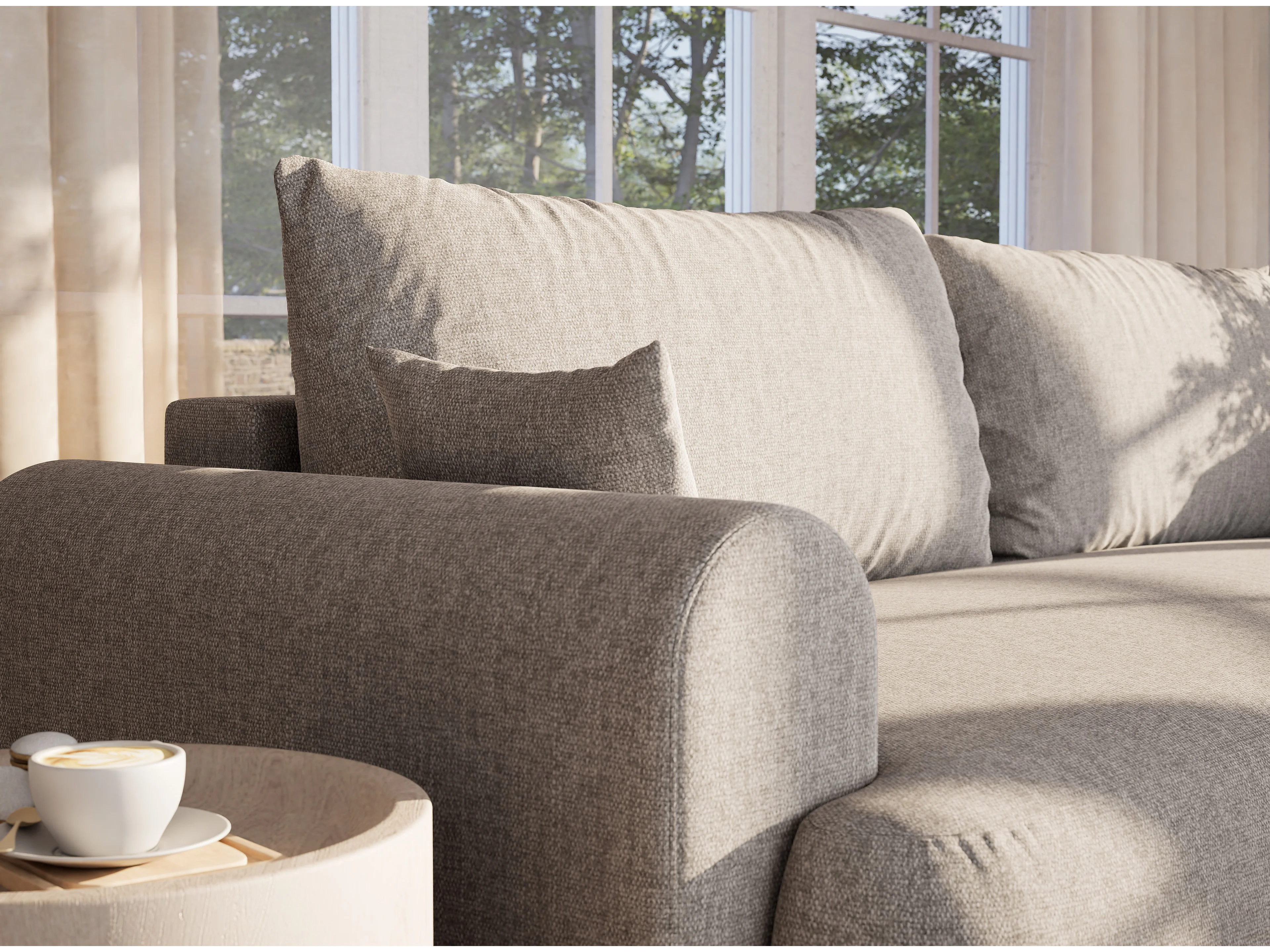 Canapé 3 places convertible en tissu tressé beige gris TOLUCA