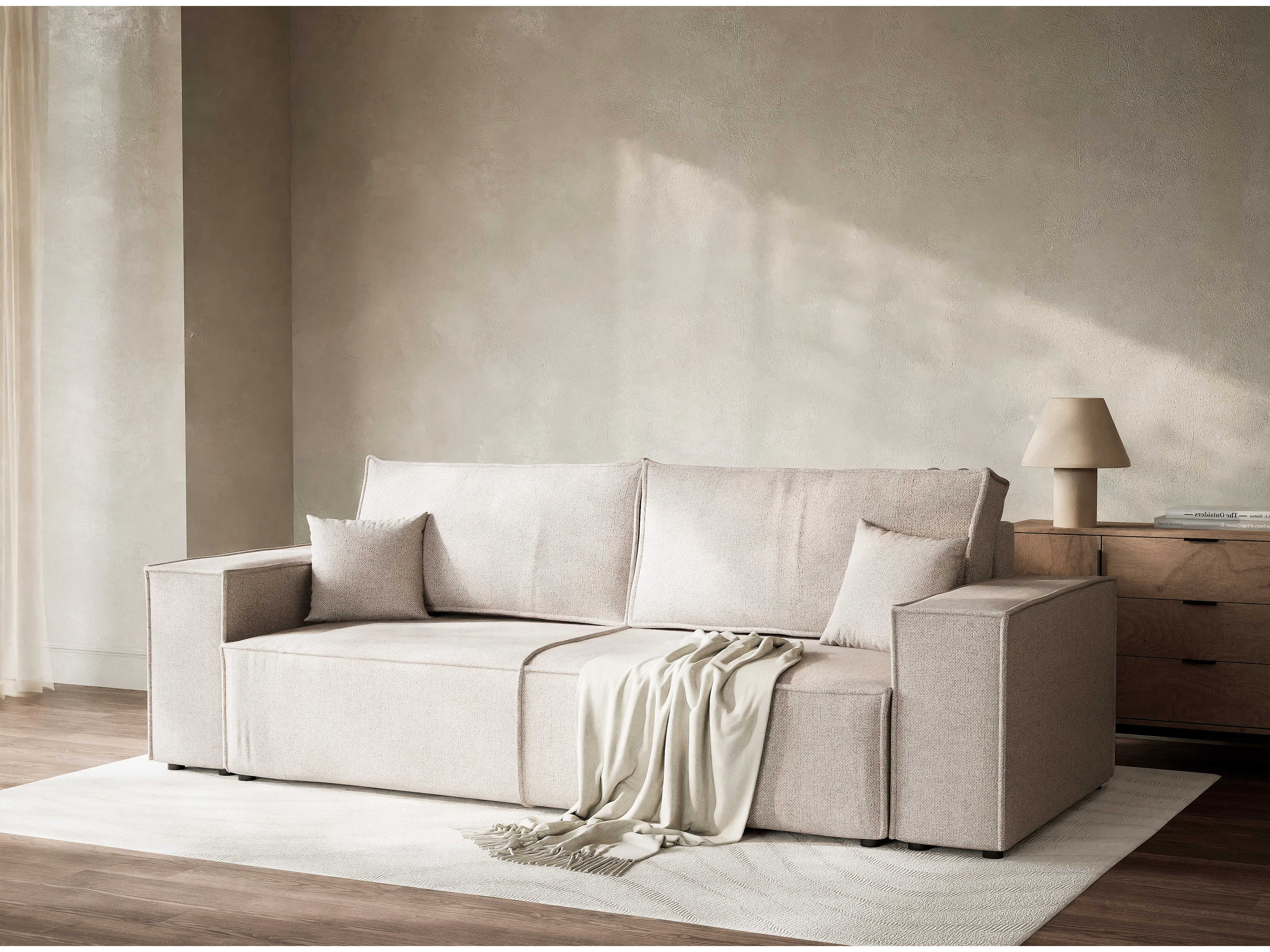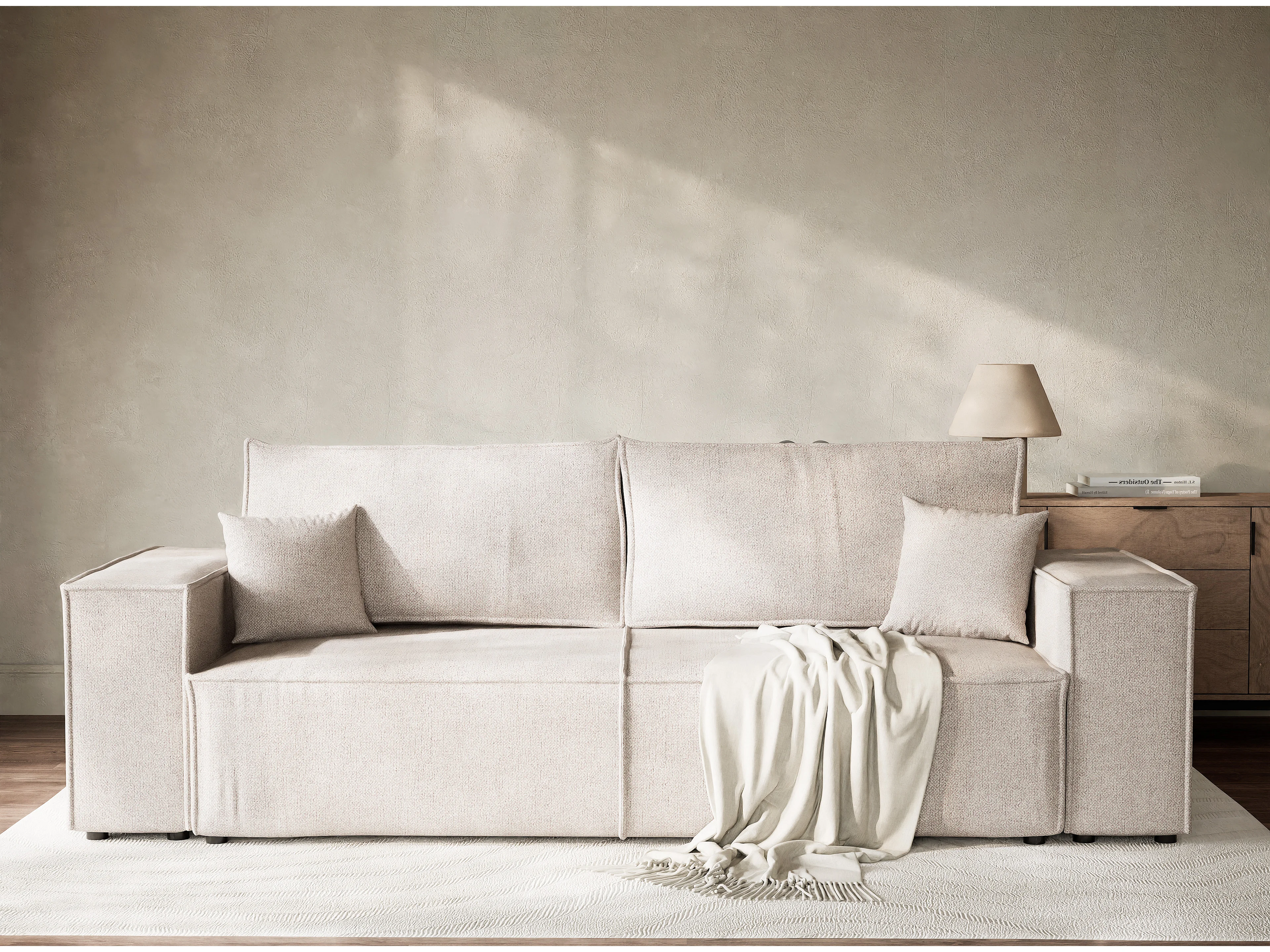Canapé 3 places convertible en tissu tressé beige MILOS