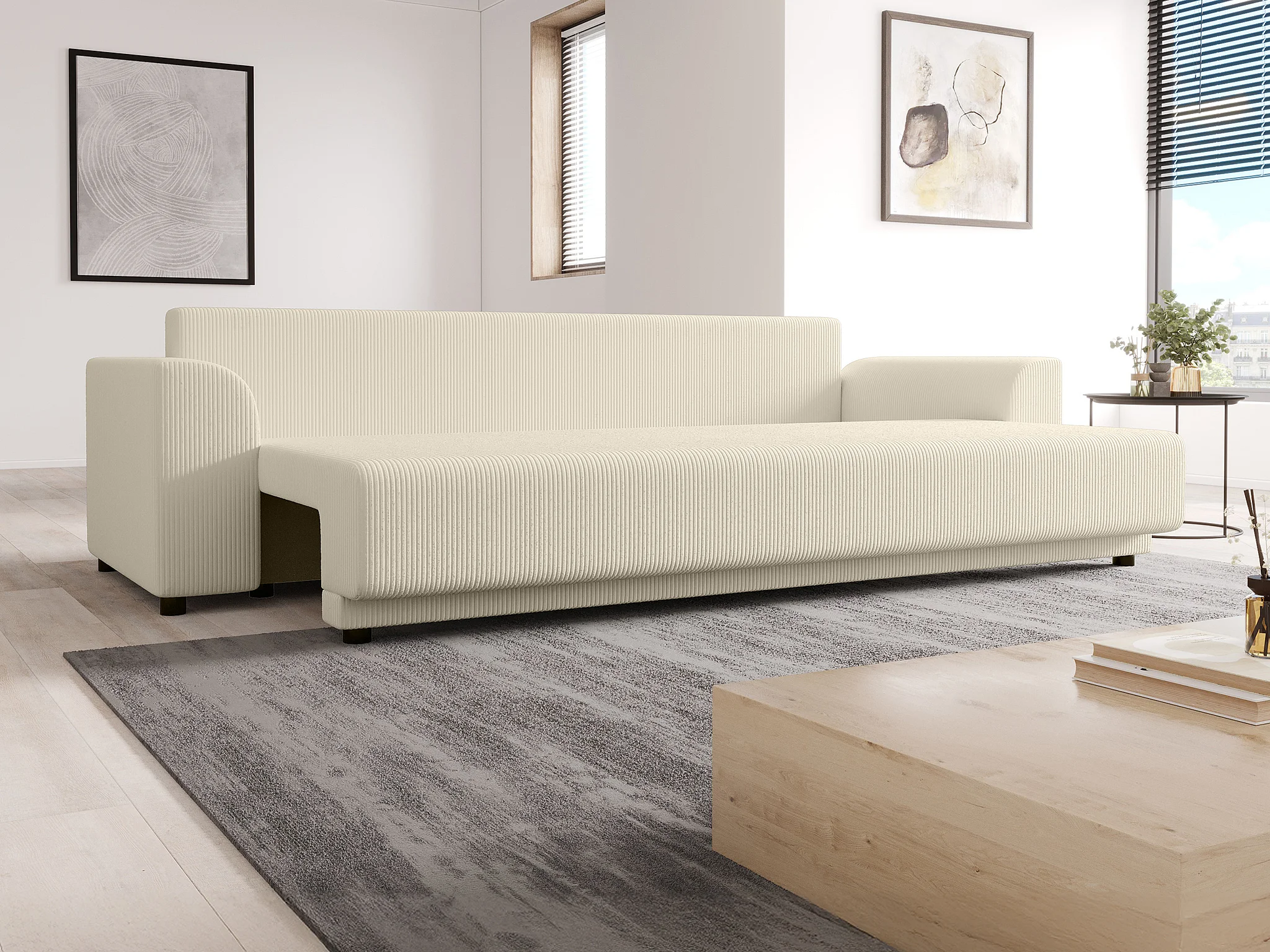 Canapé 3 places convertible en velours côtelé beige NESSARO