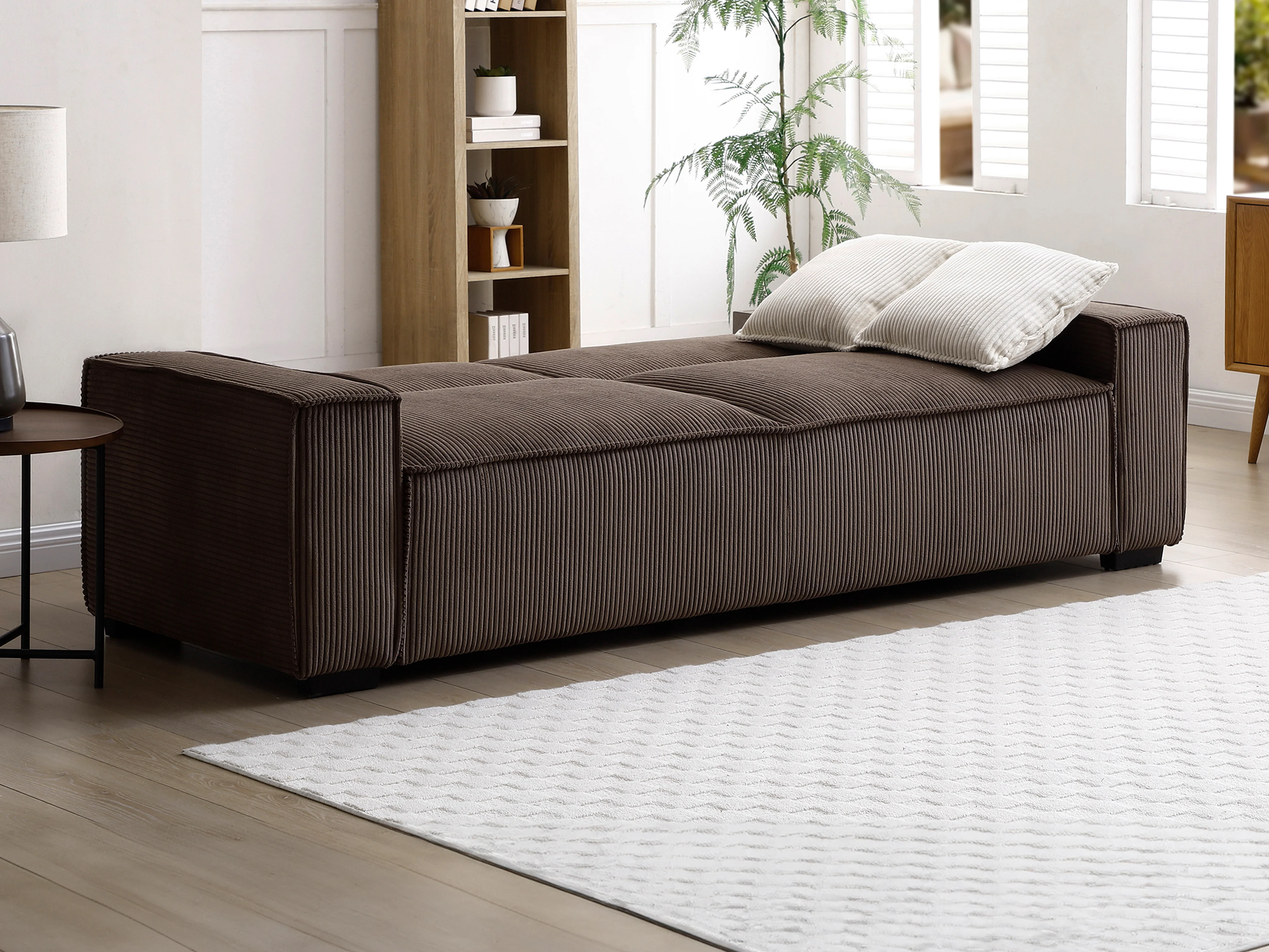 Canapé 3 places convertible en velours côtelé marron SEKOTA