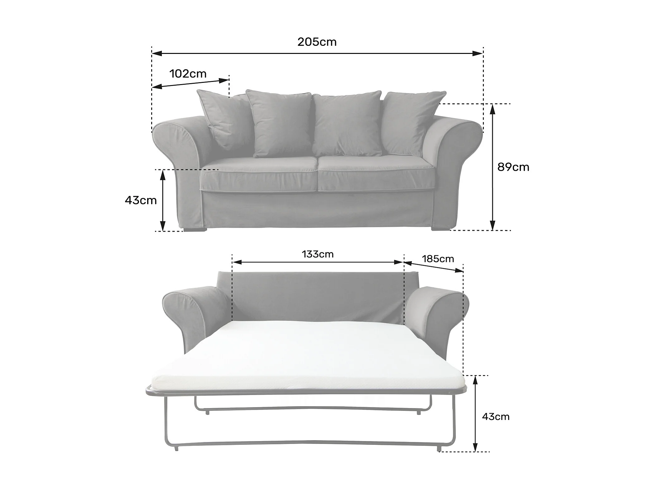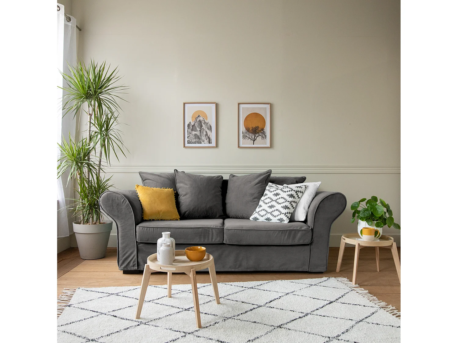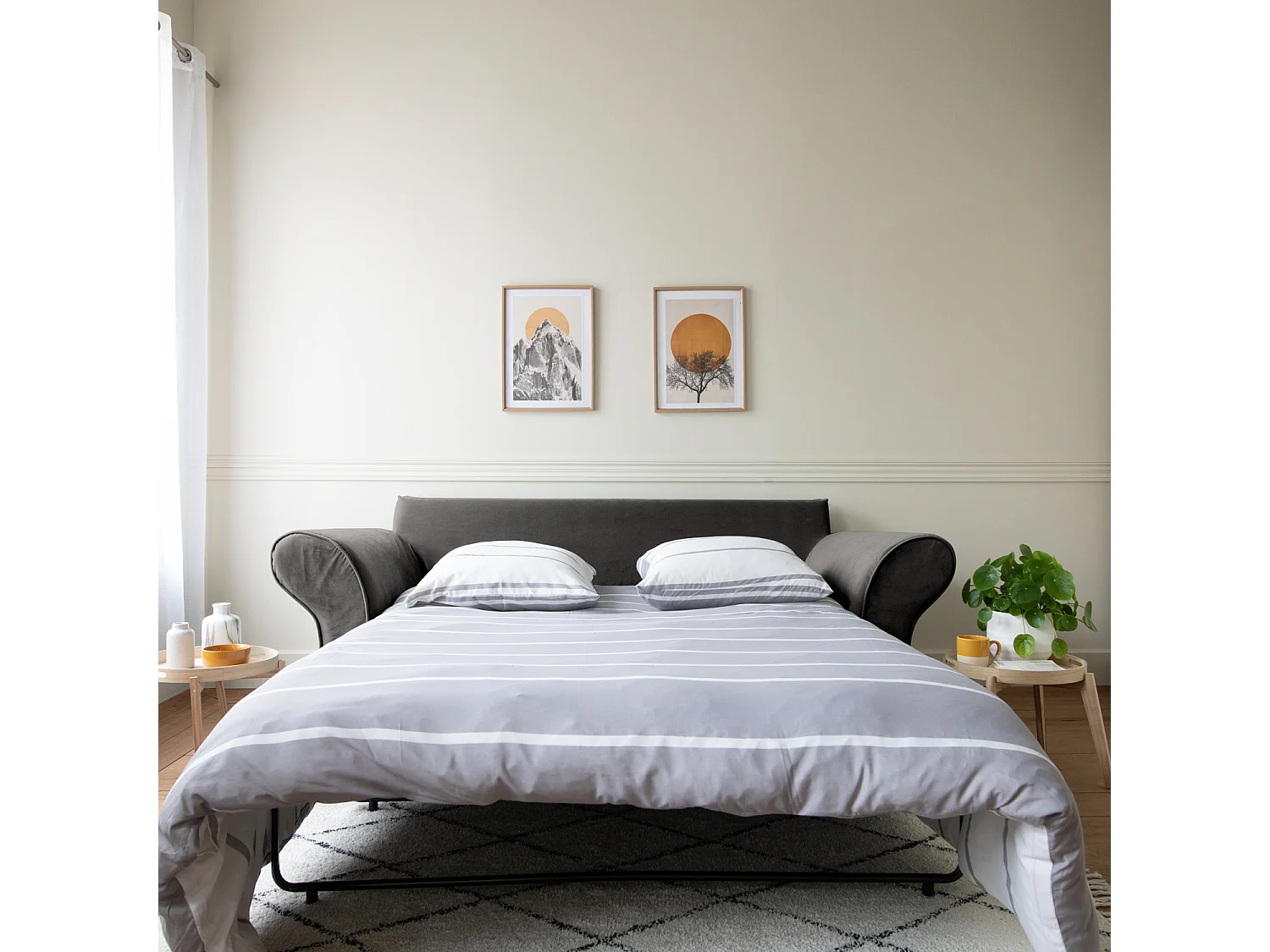 Canapé 3 places convertible en velours gris OSCAR