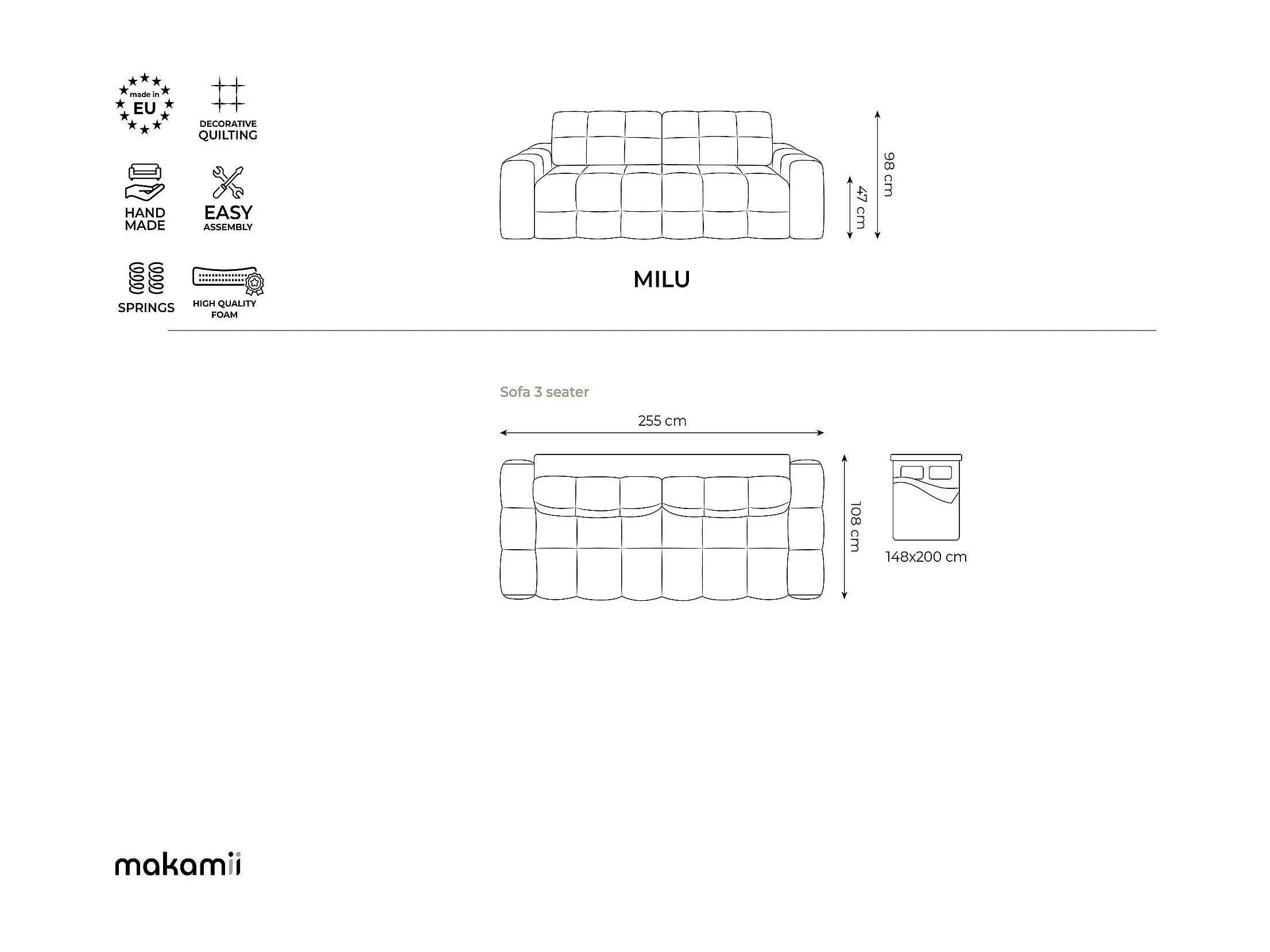 Canapé 3 places convertible en velours - taupe - MILU