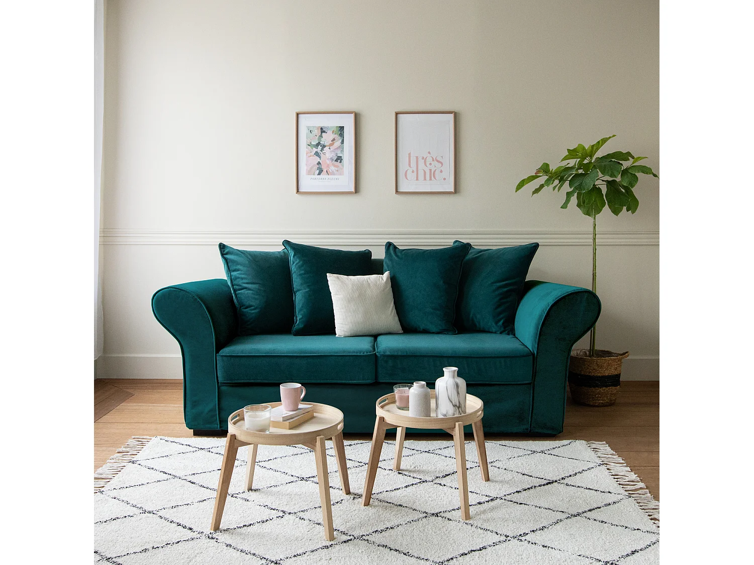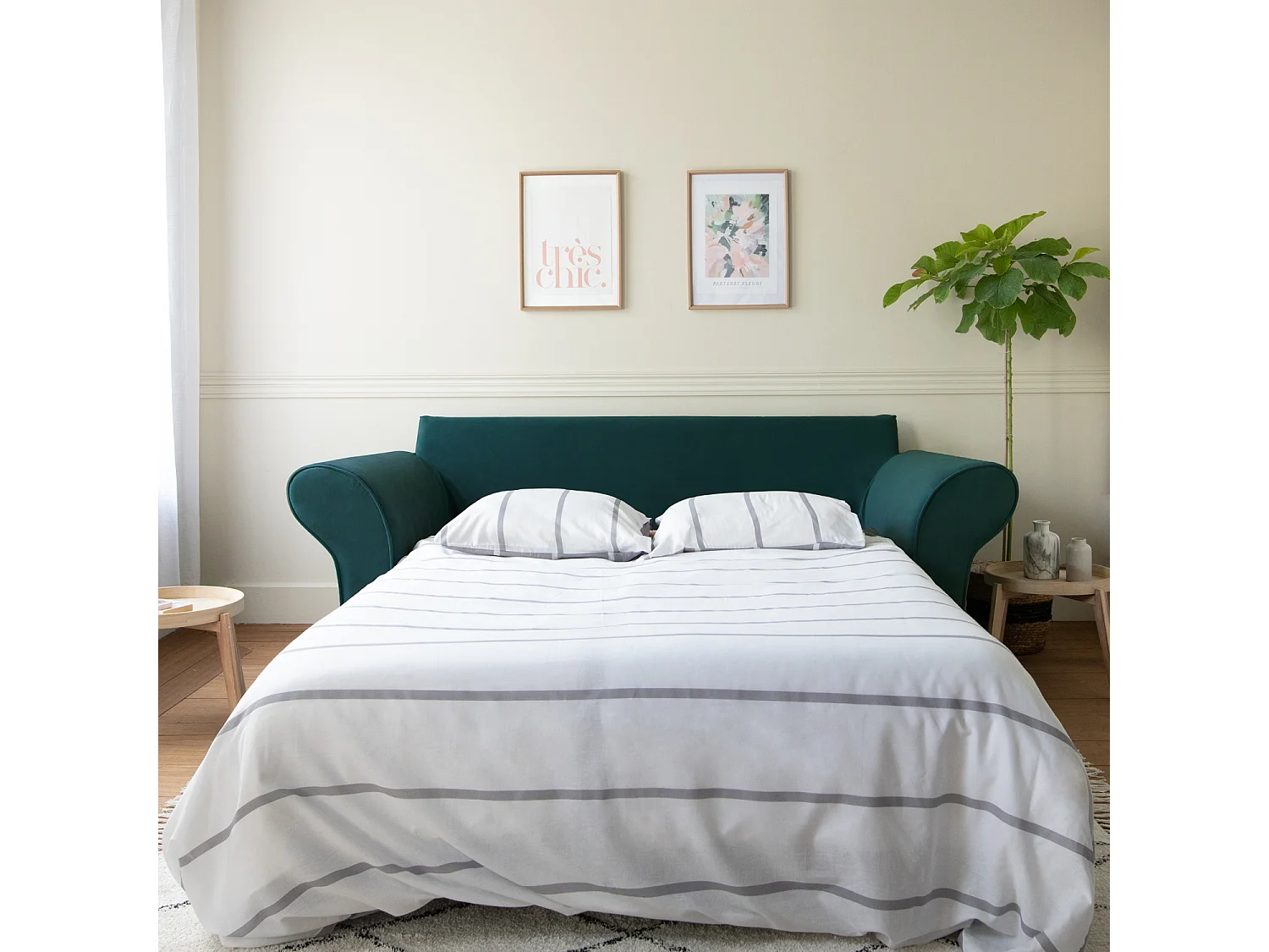 Canapé 3 places convertible en velours vert émeraude OSCAR