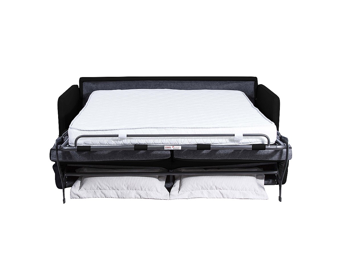 Mécanisme convertible express : quelques secondes suffisent à transformer le canapé NADOA en couchage : tirez simplement sur la poignée située derrière les coussins de dossier pour déplier le matelas !