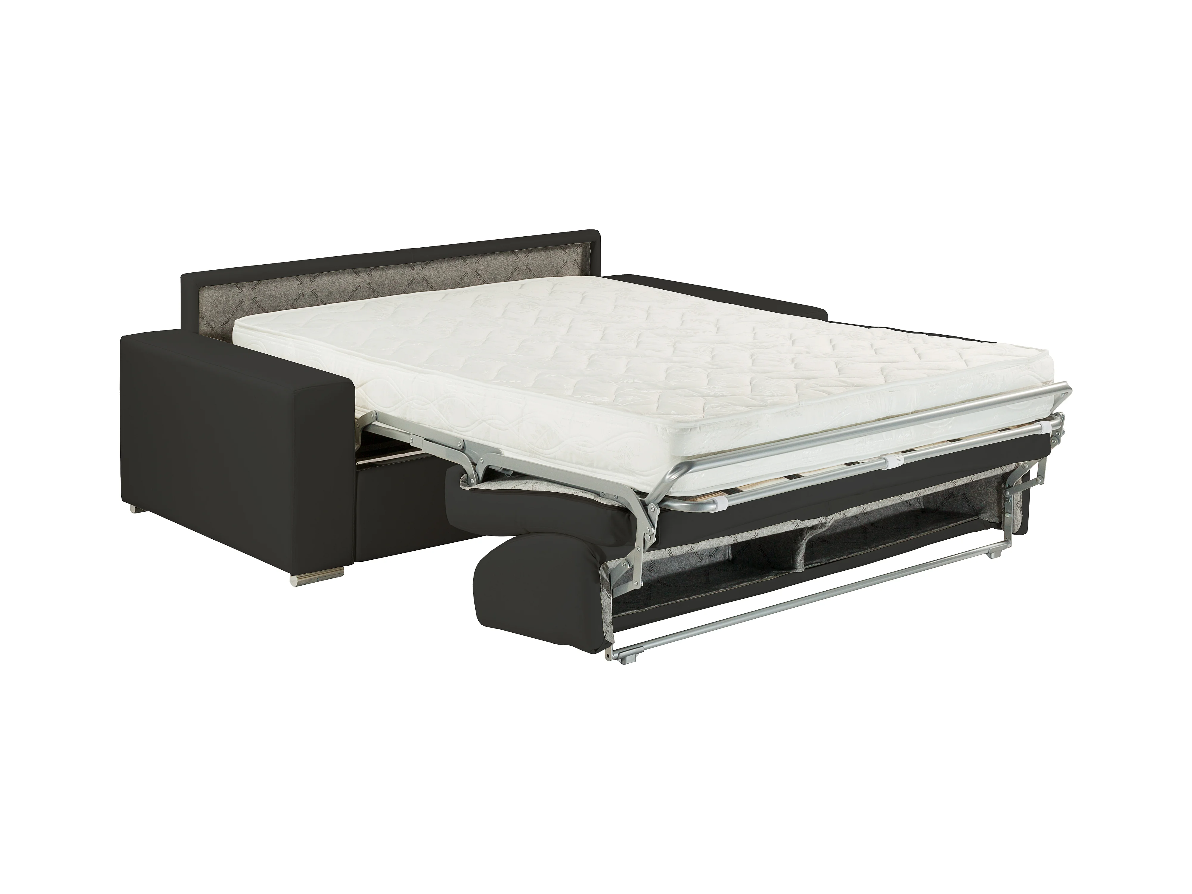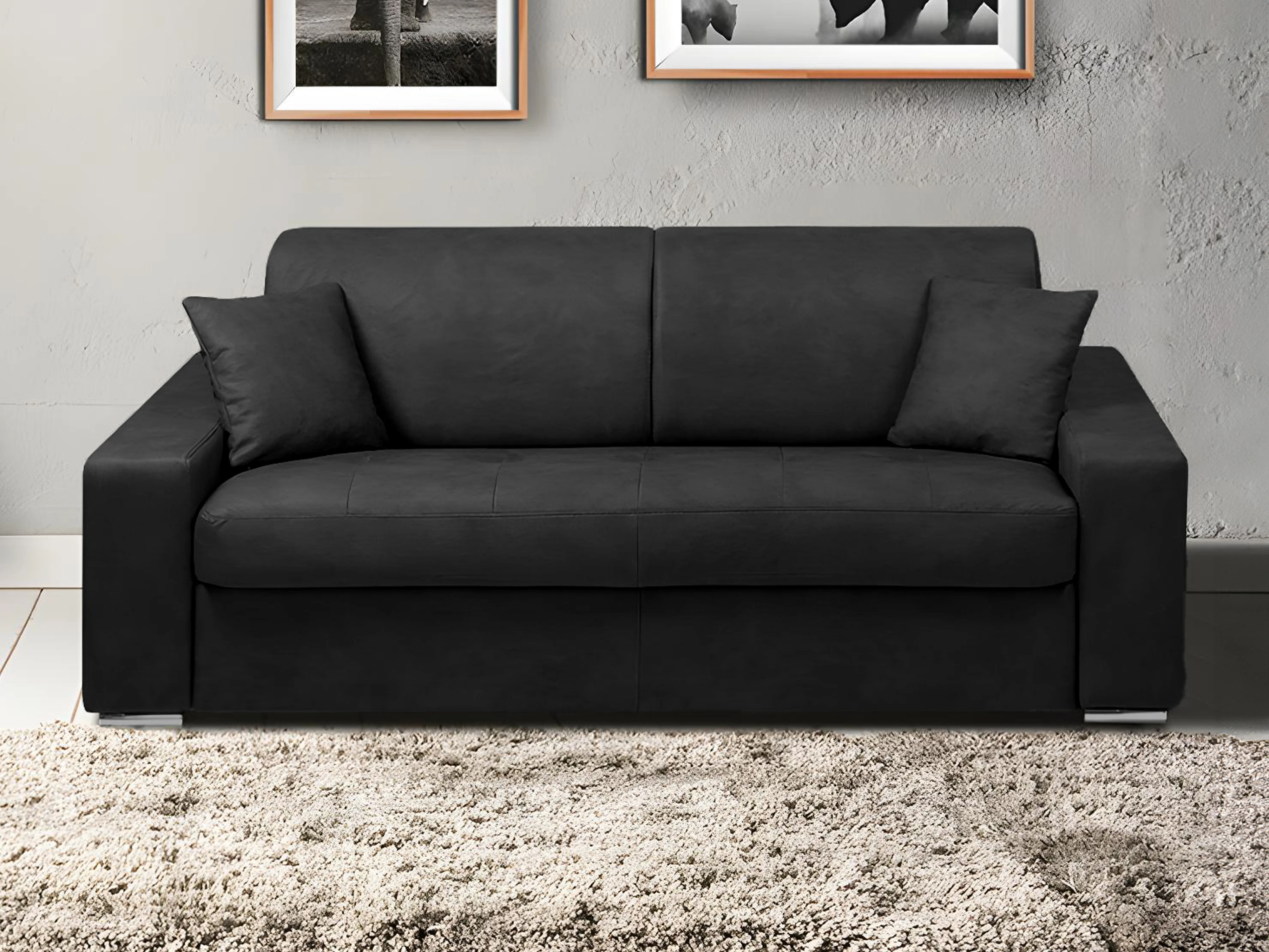 Canapé 3 places convertible express en simili EMIR - Noir - Couchage à lattes larges 140 cm - Matelas 18 cm