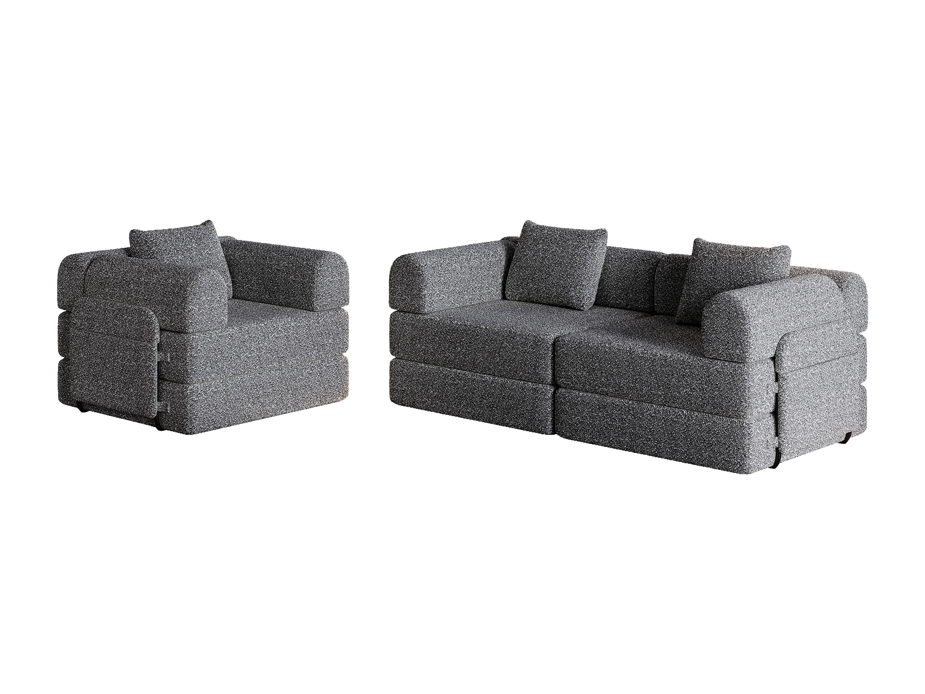 Canapé 3 places convertible express en tissu chenille gris -Combinaisons multiples