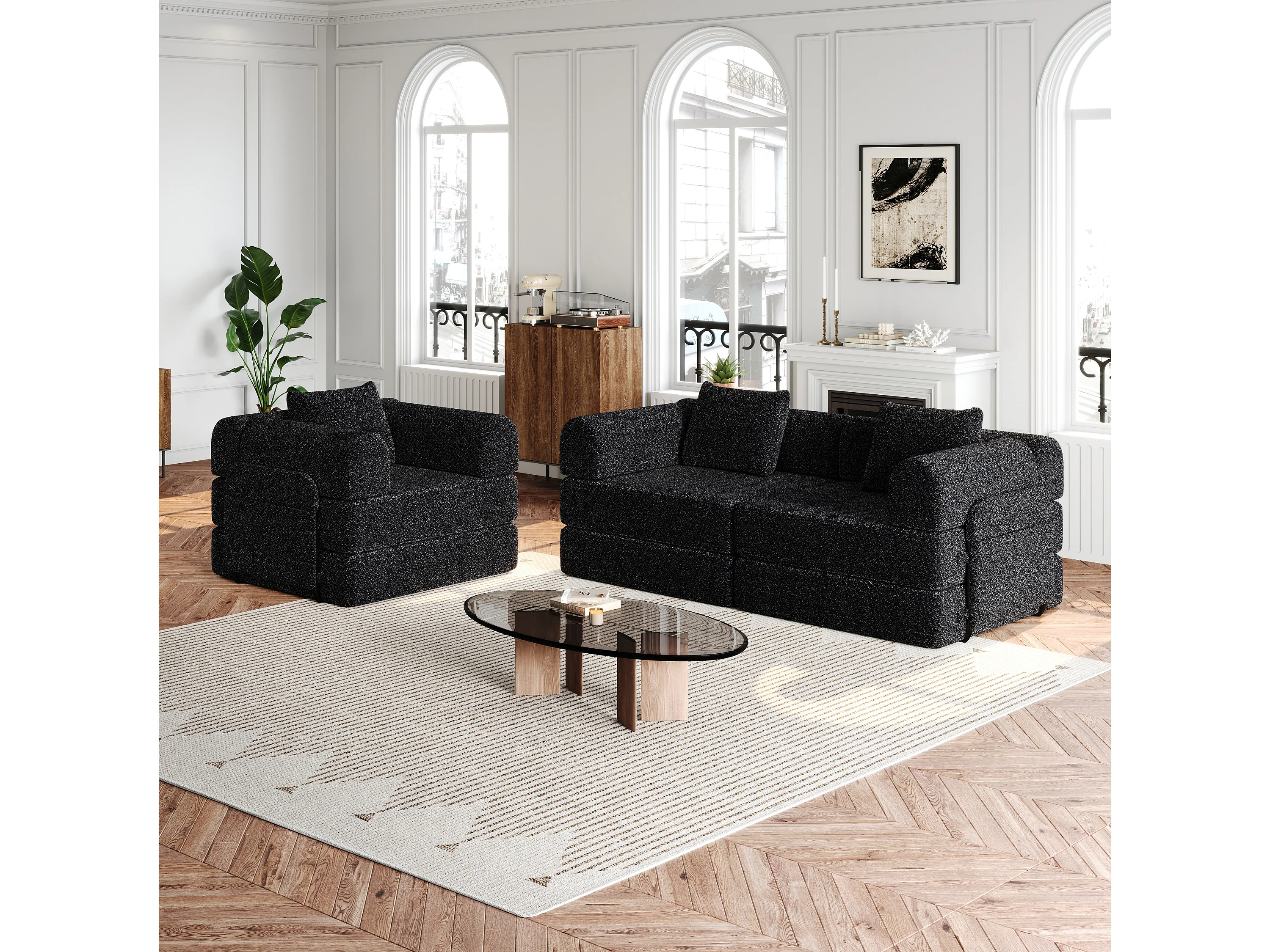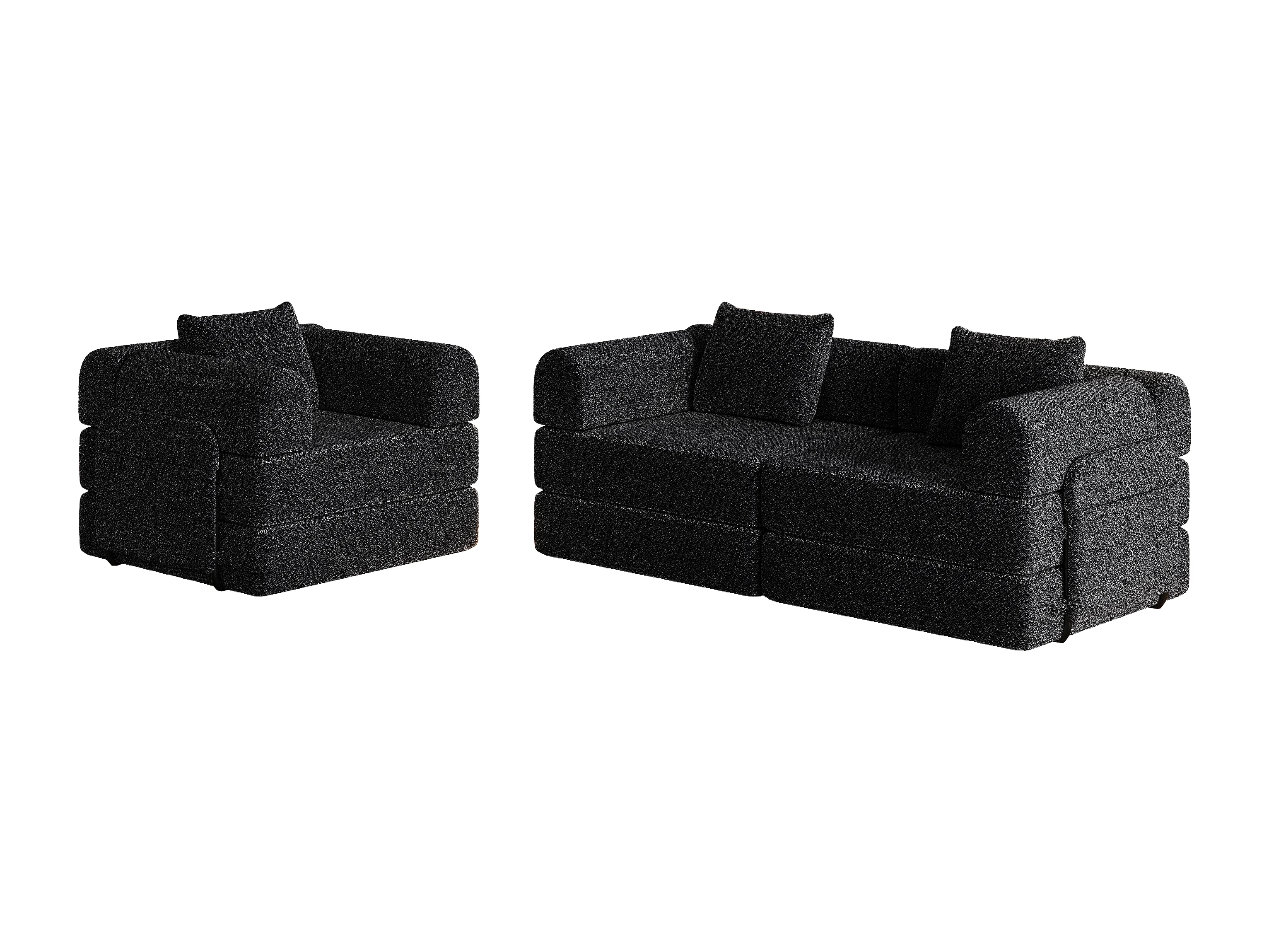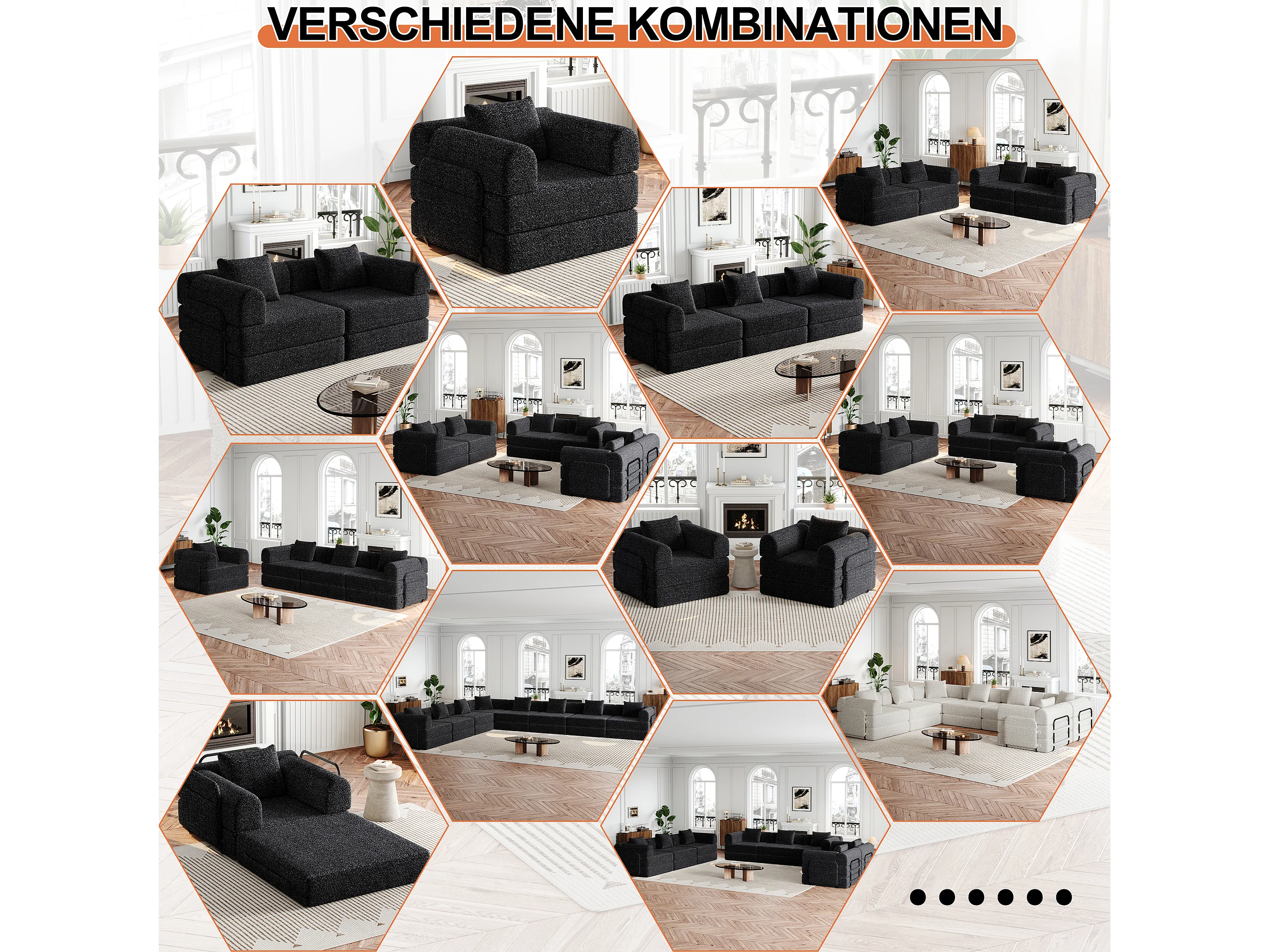 Canapé 3 places convertible express en tissu chenille noir -Combinaisons multiples