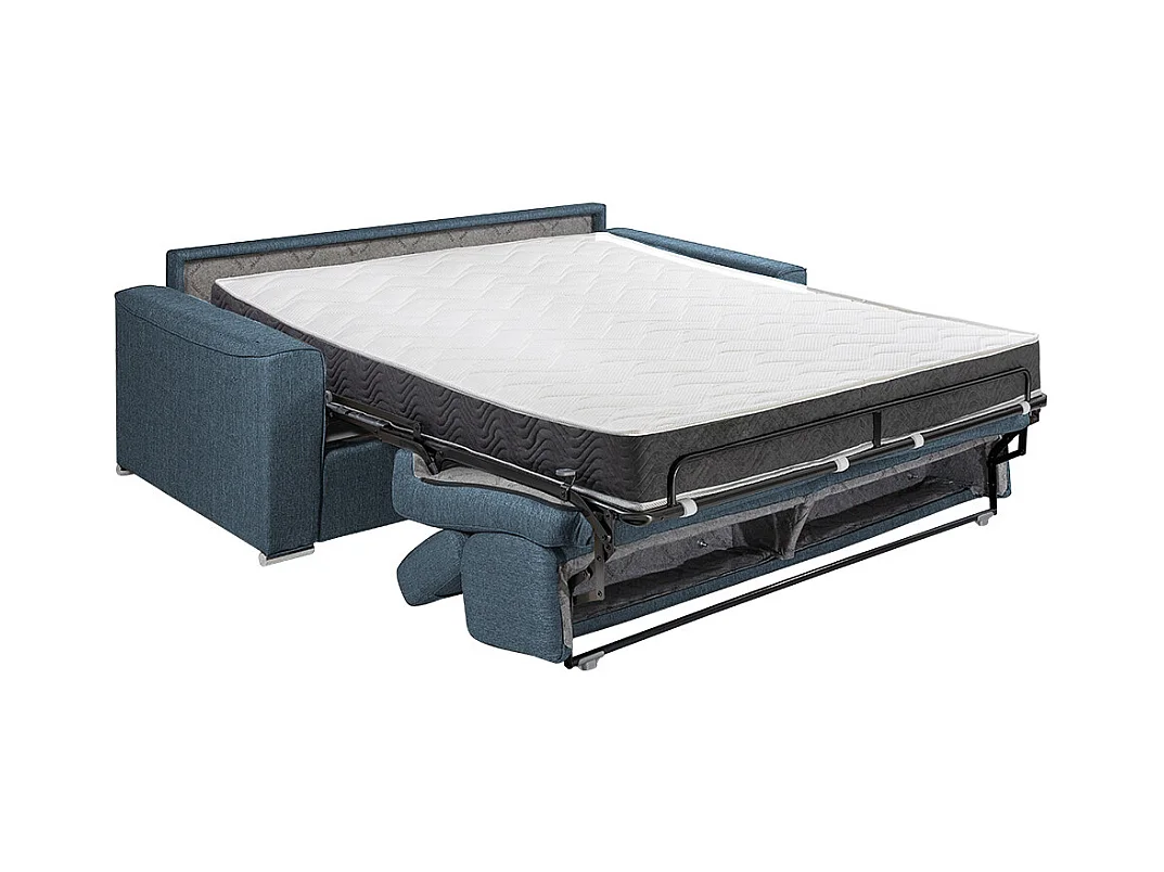 Canapé 3 places convertible express en tissu bleu - couchage 140 cm - Matelas 18 cm avec mémoire de forme VIZIR