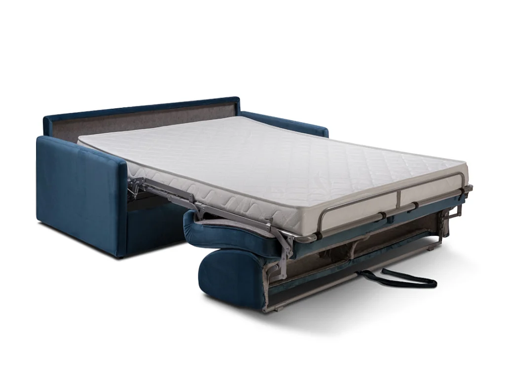 Canapé 3 places convertible express en velours bleu nuit - Couchage 140 cm - Matelas 14 cm CALIFE