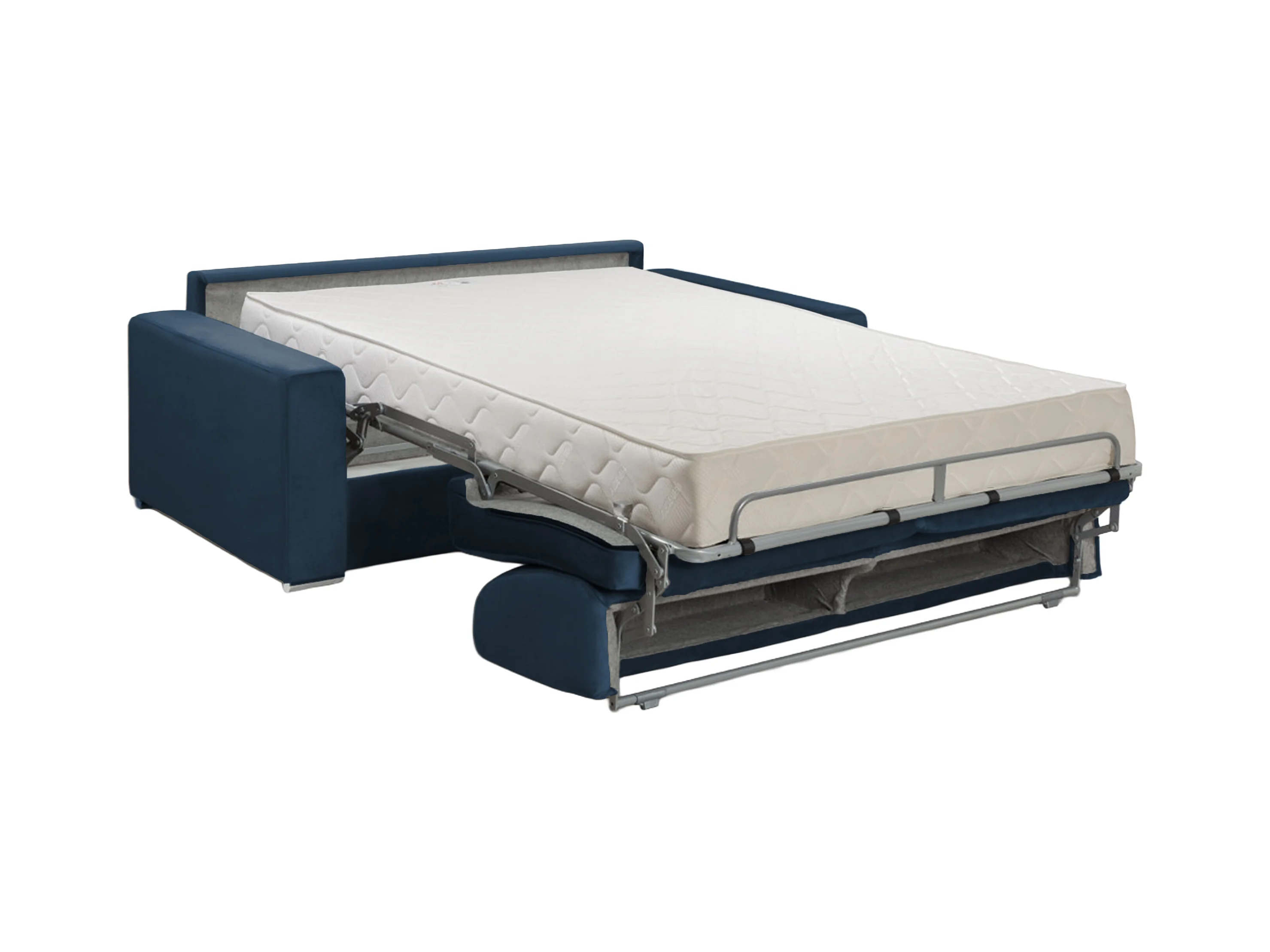 Canapé 3 places convertible express en velours bleu nuit - Couchage lattes larges 140 cm - Matelas 22 cm avec mémoire de forme CALITO