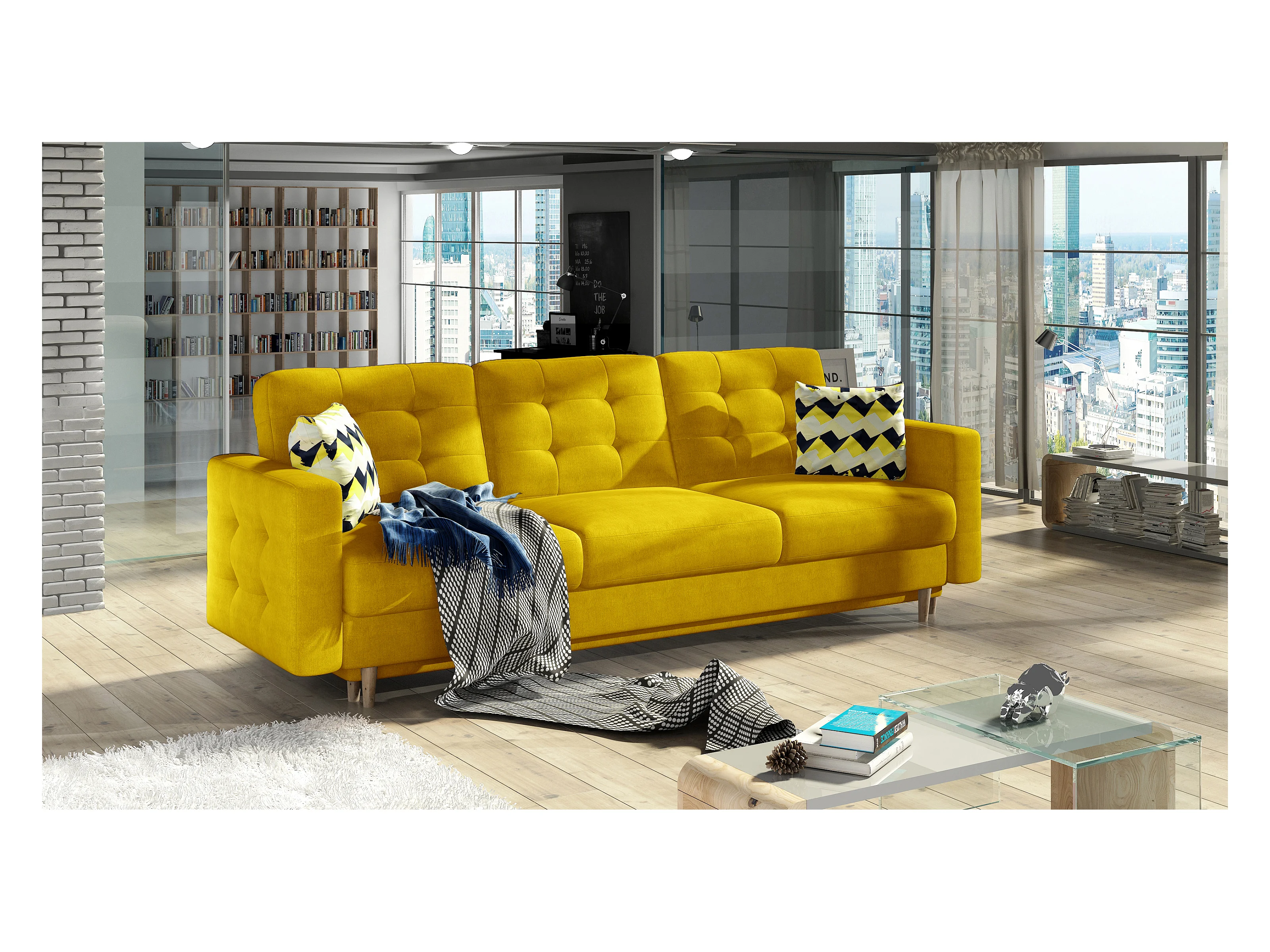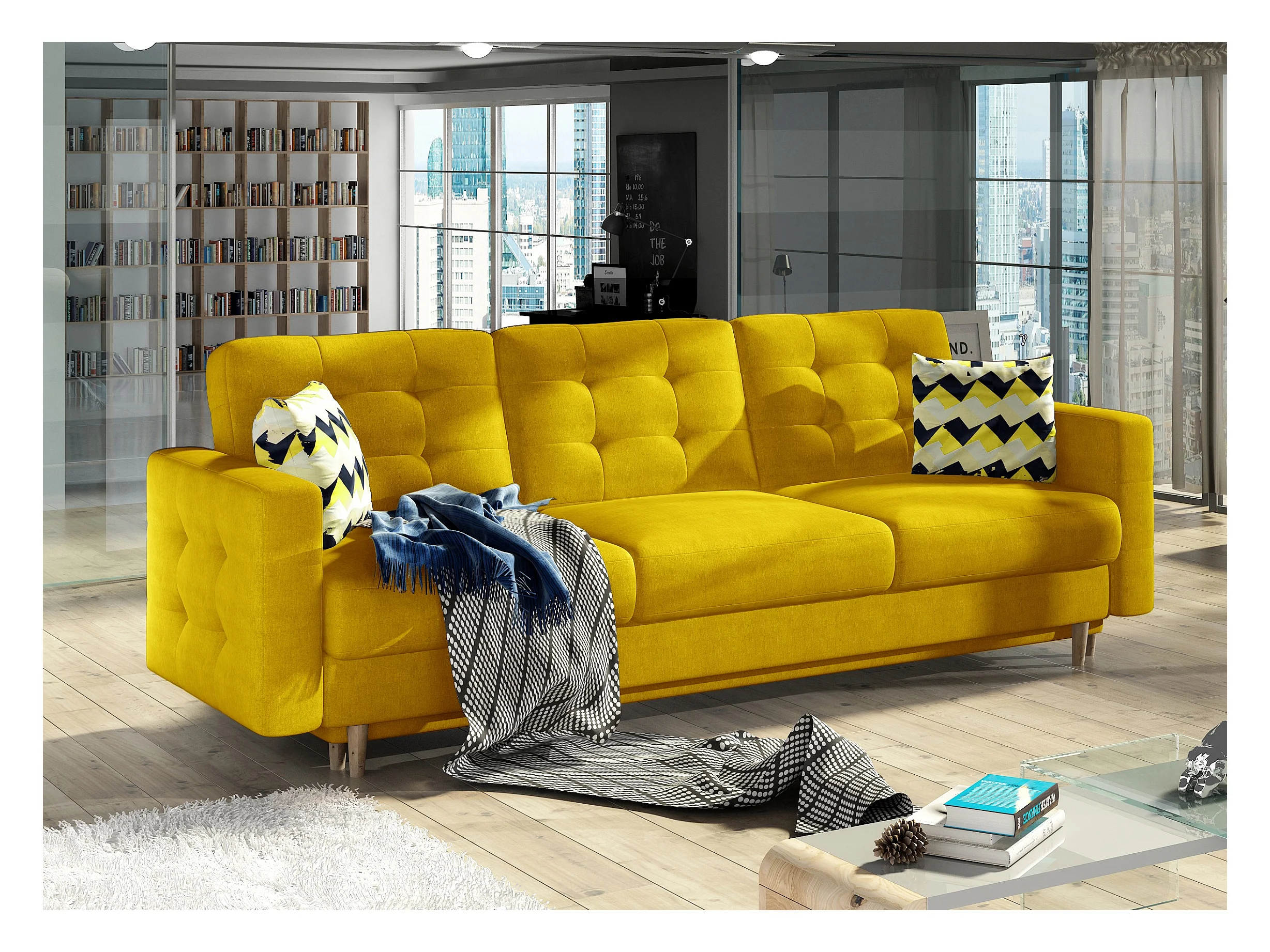 Canapé 3 places convertible matelassé tissu jaune moutarde Anska 235cm
