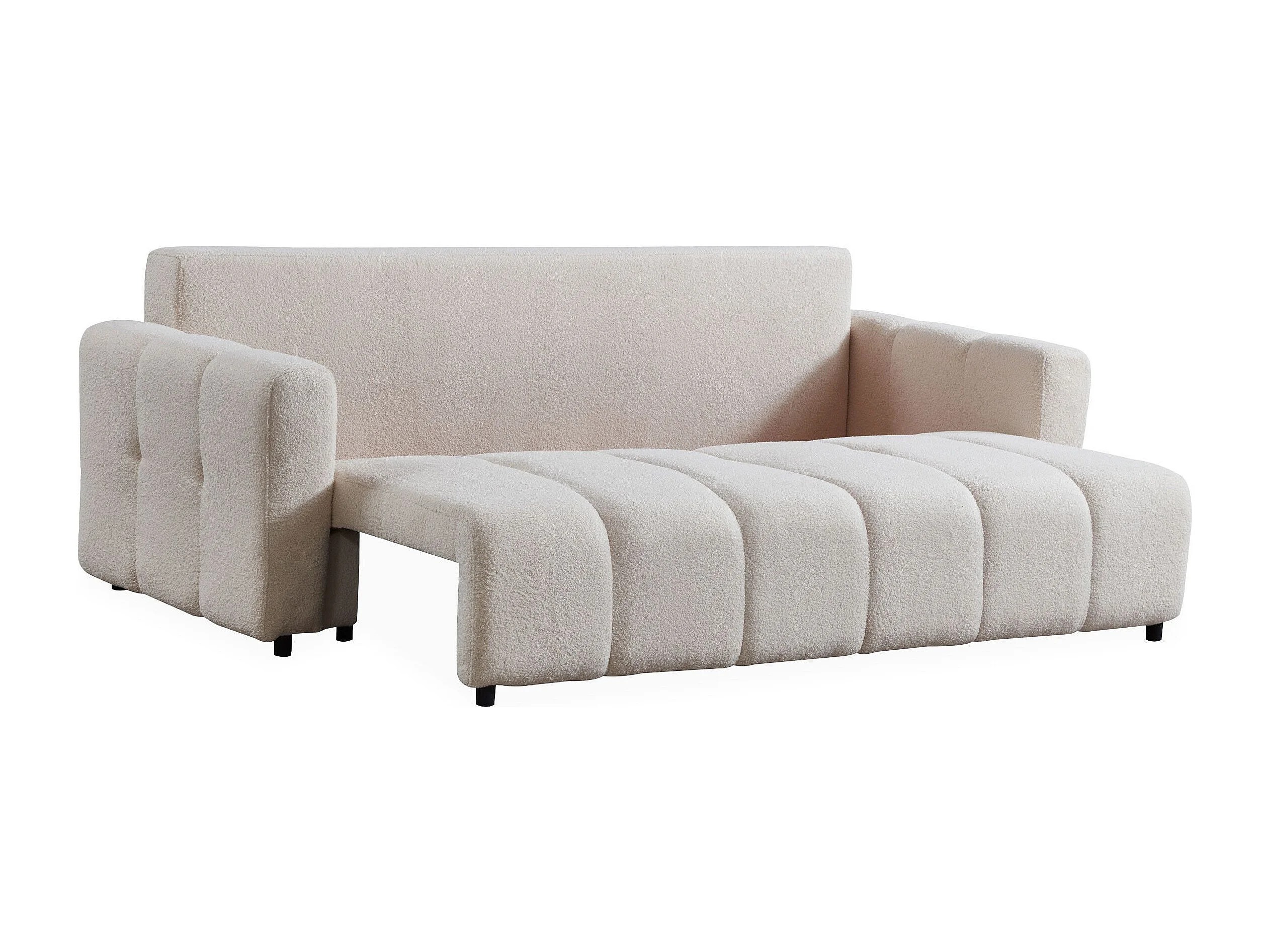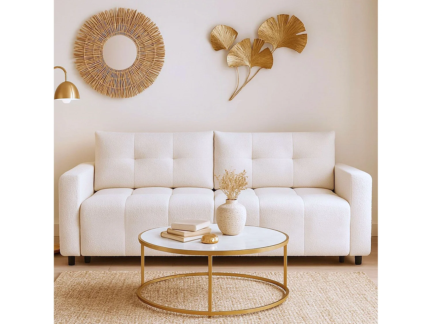 Canapé 3 places convertible Stylian Tissu bouclette Crème