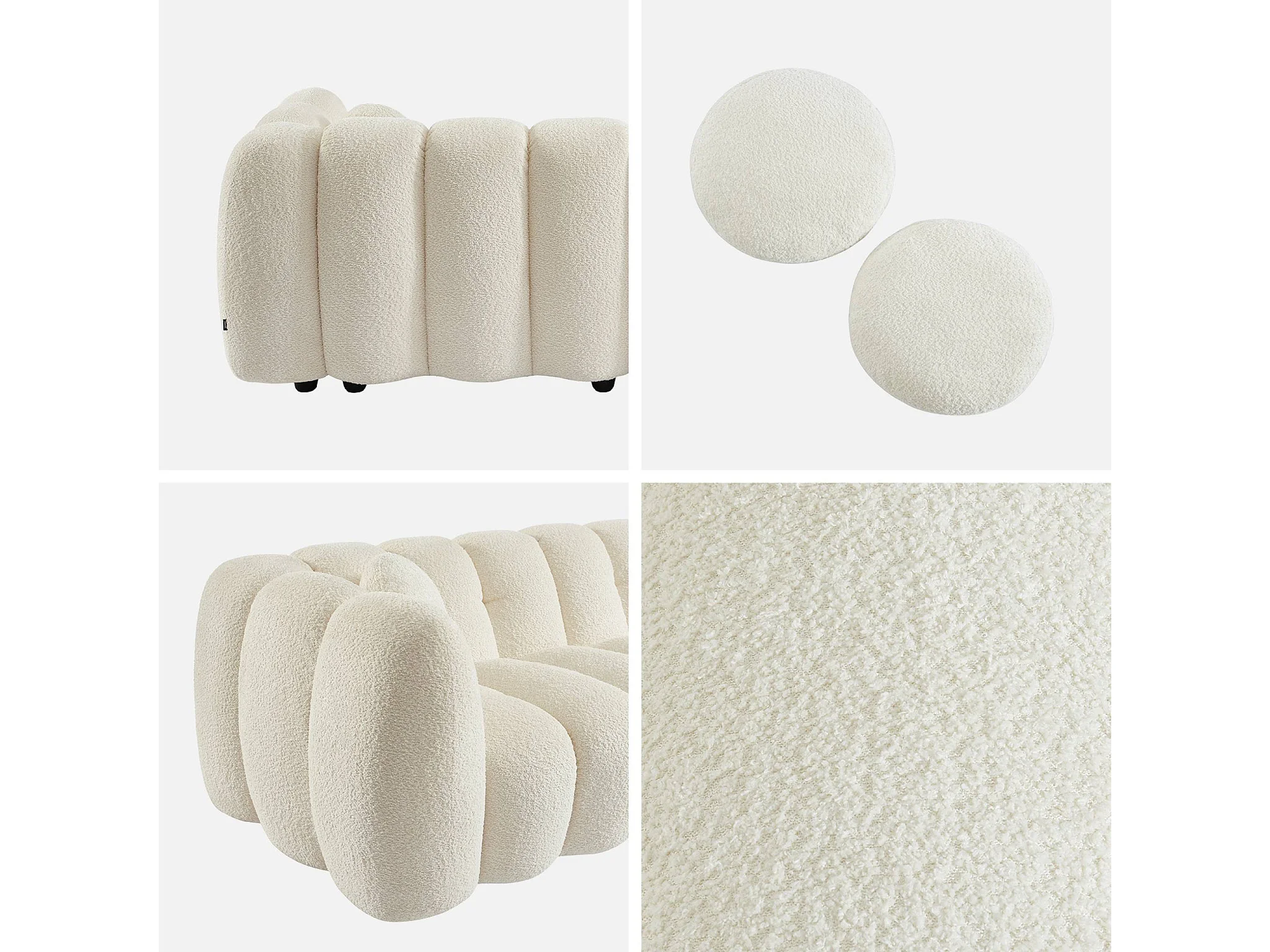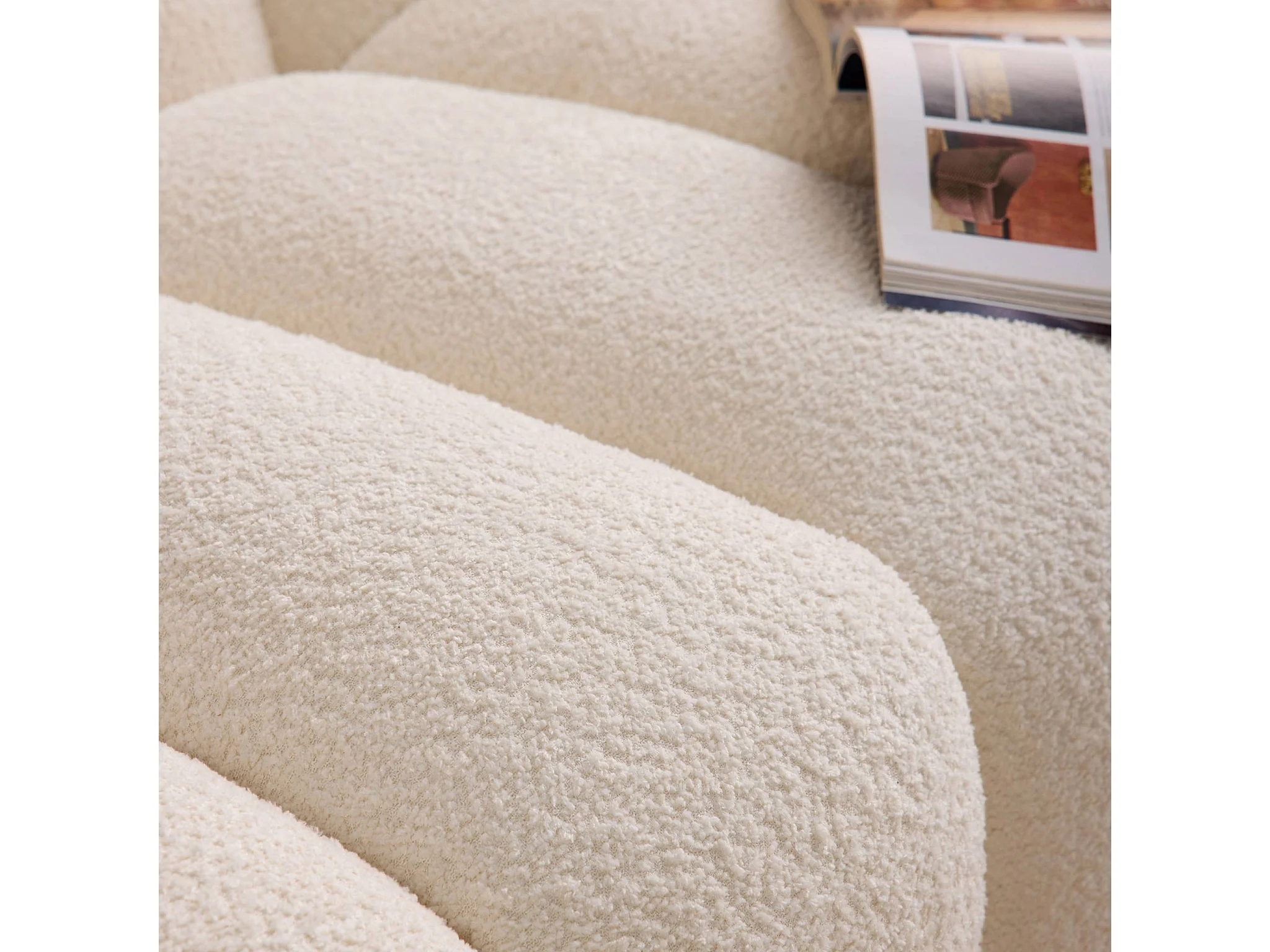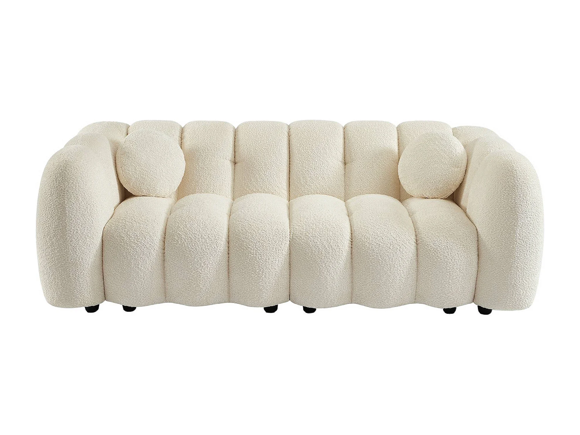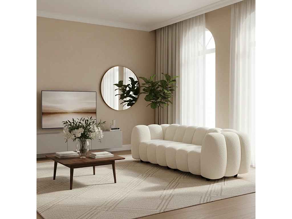 Canapé 3 places coquillage en bouclette blanc L 221 x P 100 x H 76cm - Perla