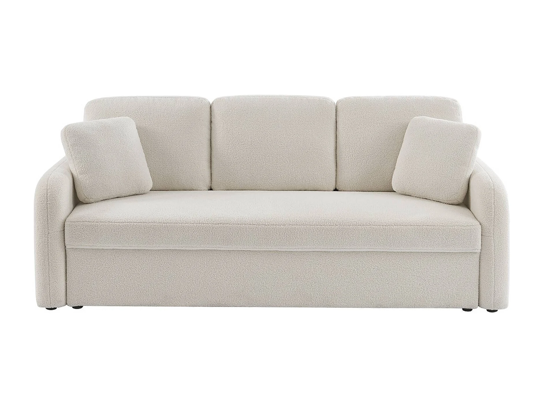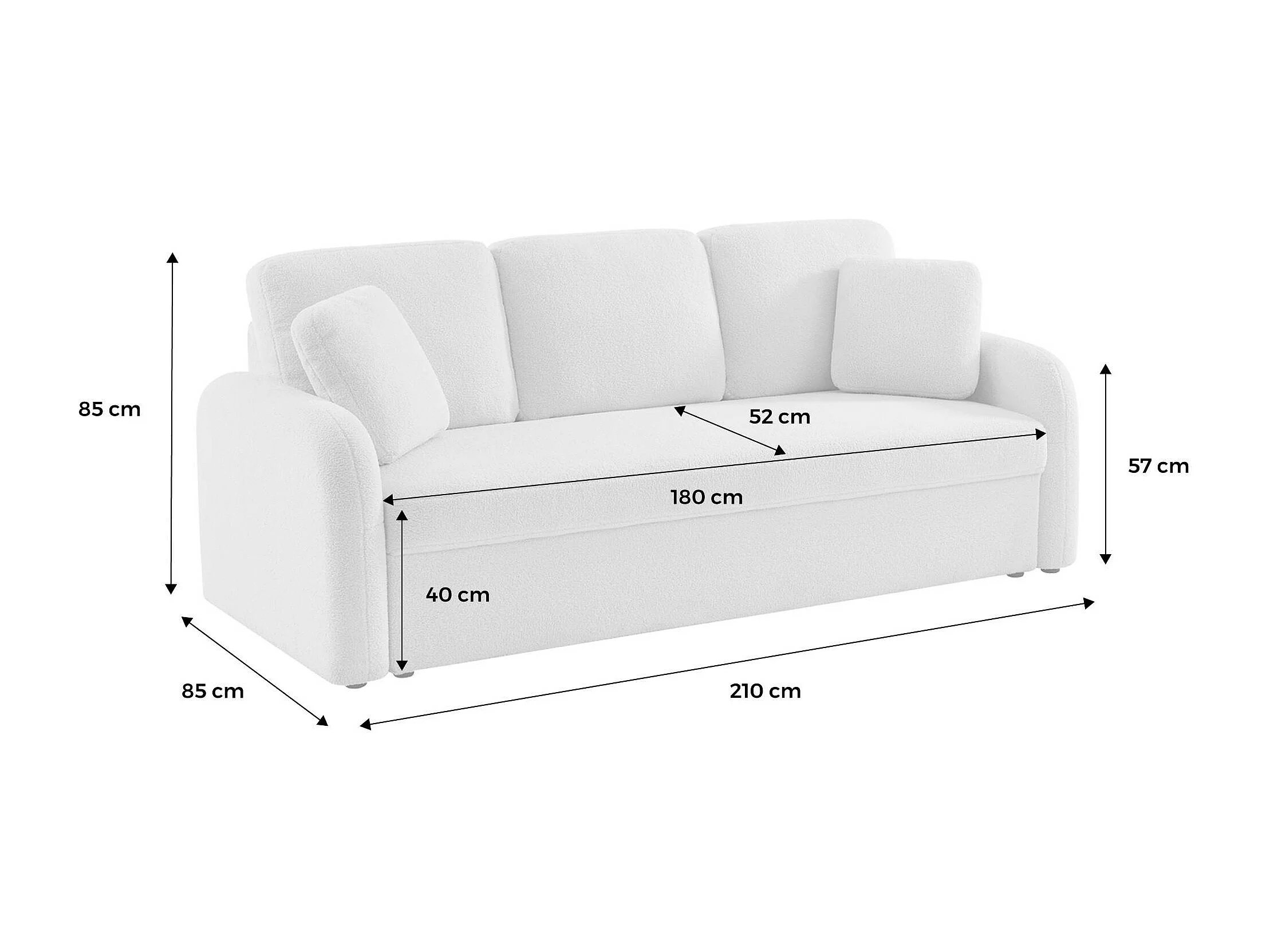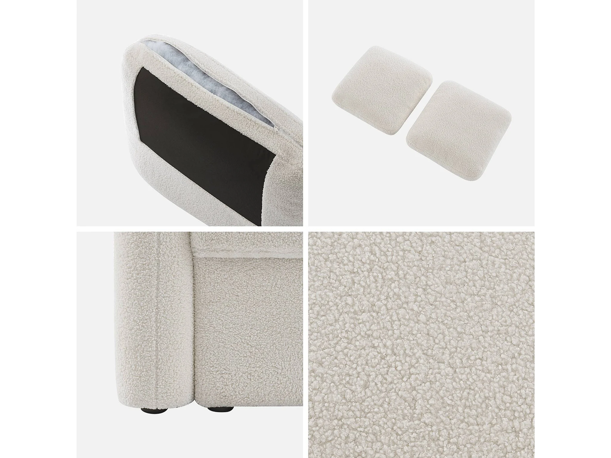 Canapé 3 places cosy rond. tissu bouclettes crème. Milano. L 210 x P 85 x H 85cm