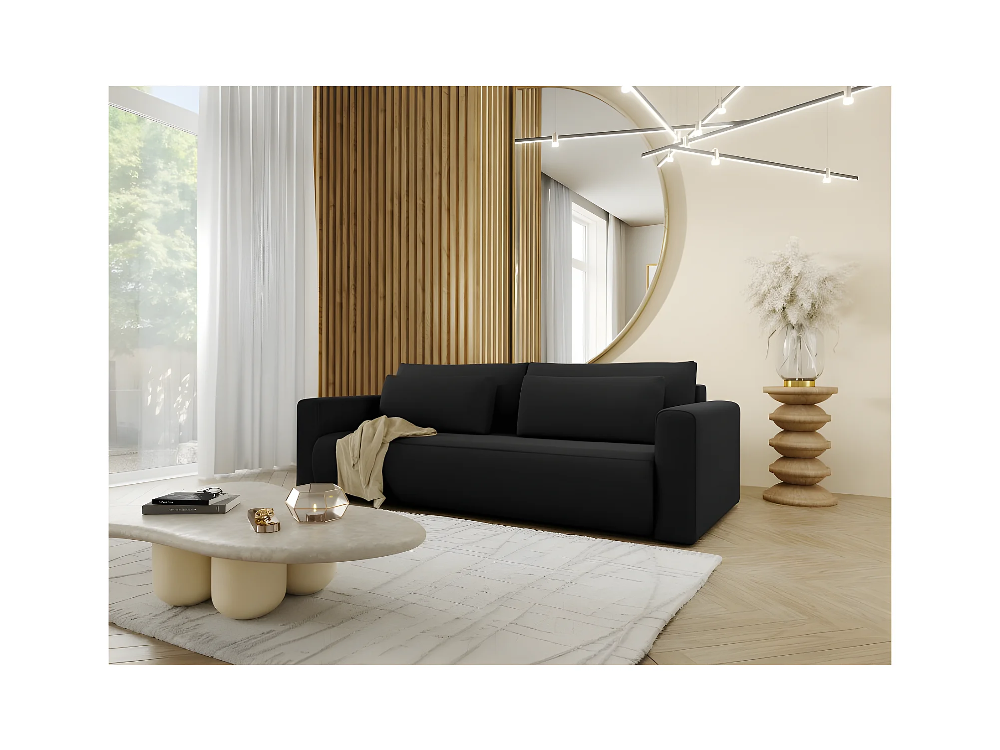 Canapé 3 places CURIA en tissu hydrophobe noir