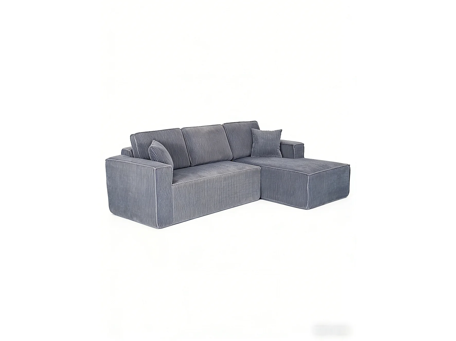 Canapé 3 Places d'angle droit modulable en Velours côtelé, avec 2 oreillers, 128cm méridienne, Gris