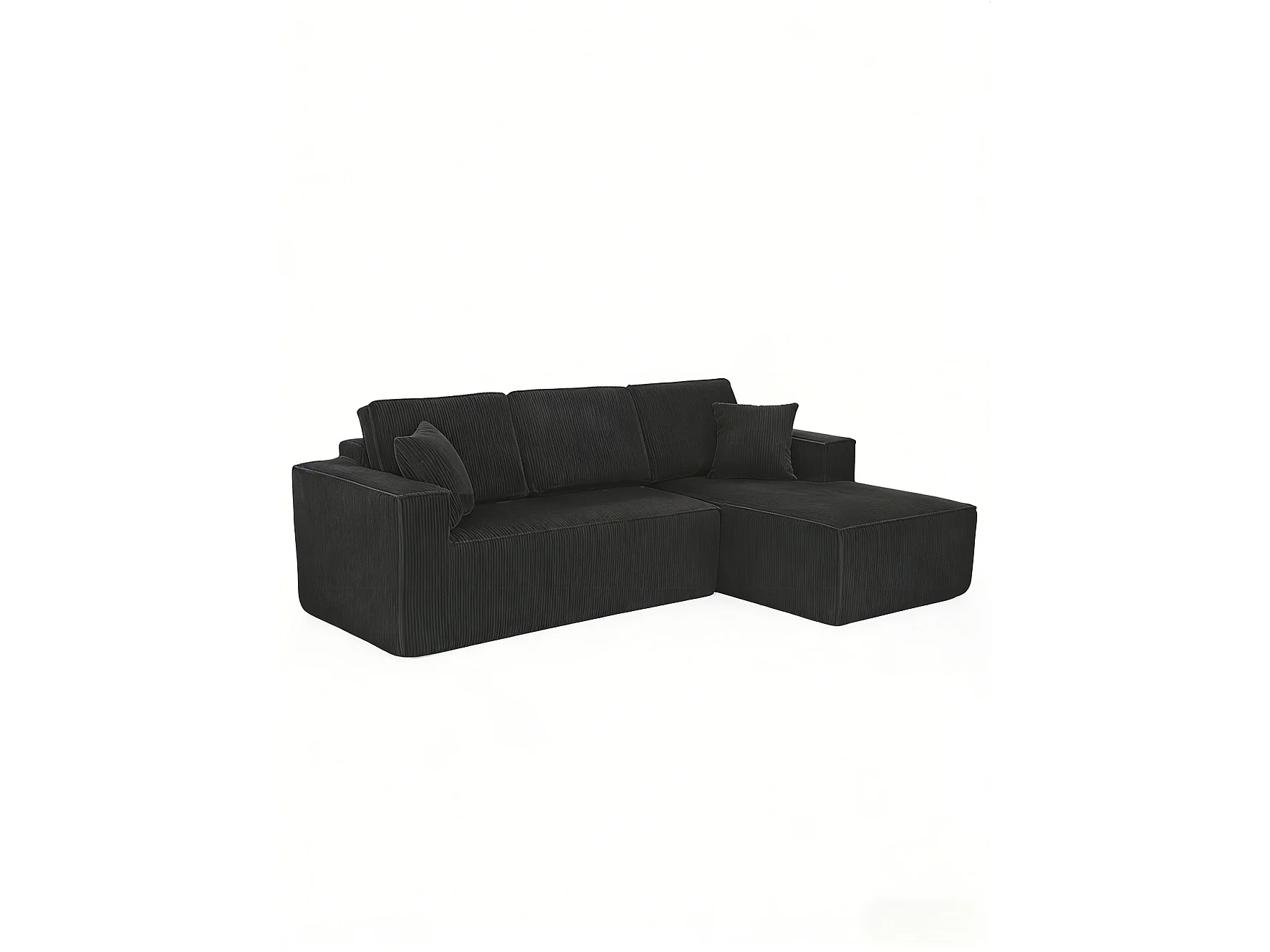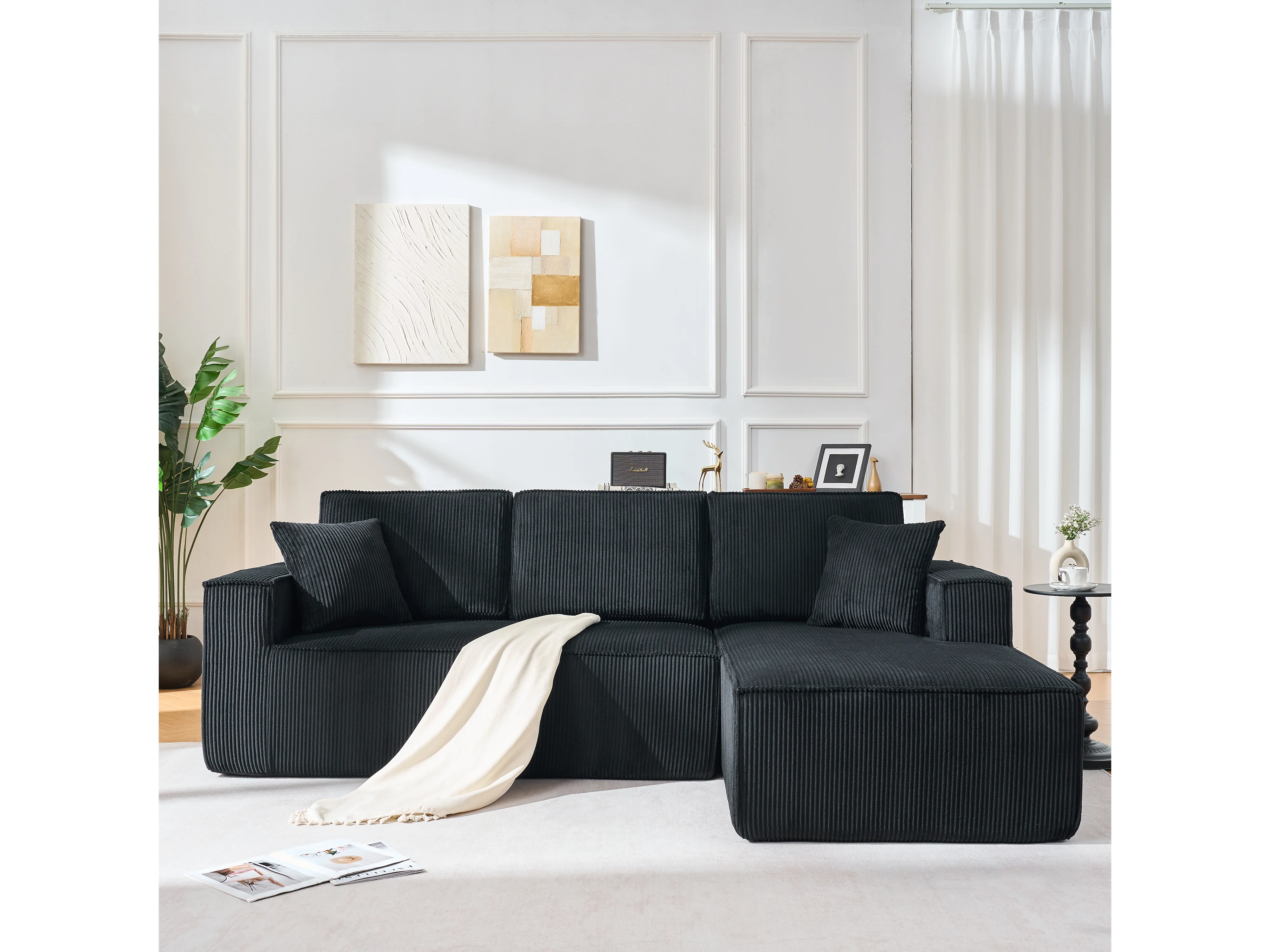 Canapé 3 Places d'angle droit modulable en Velours côtelé, avec 2 oreillers, 128cm méridienne, Noir