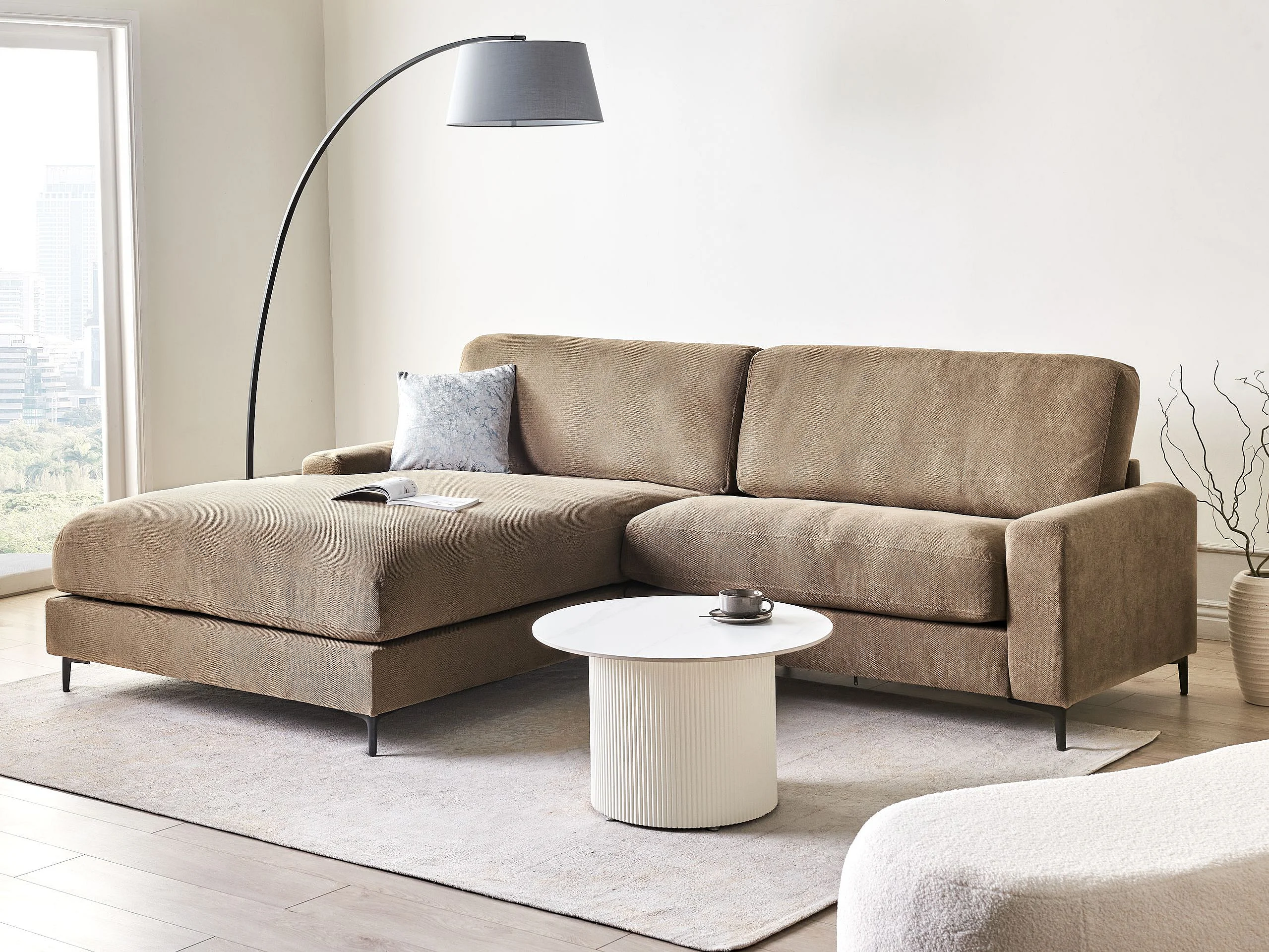 Canapé d'angle 3 places MALOY Tissu Marron Côté droit