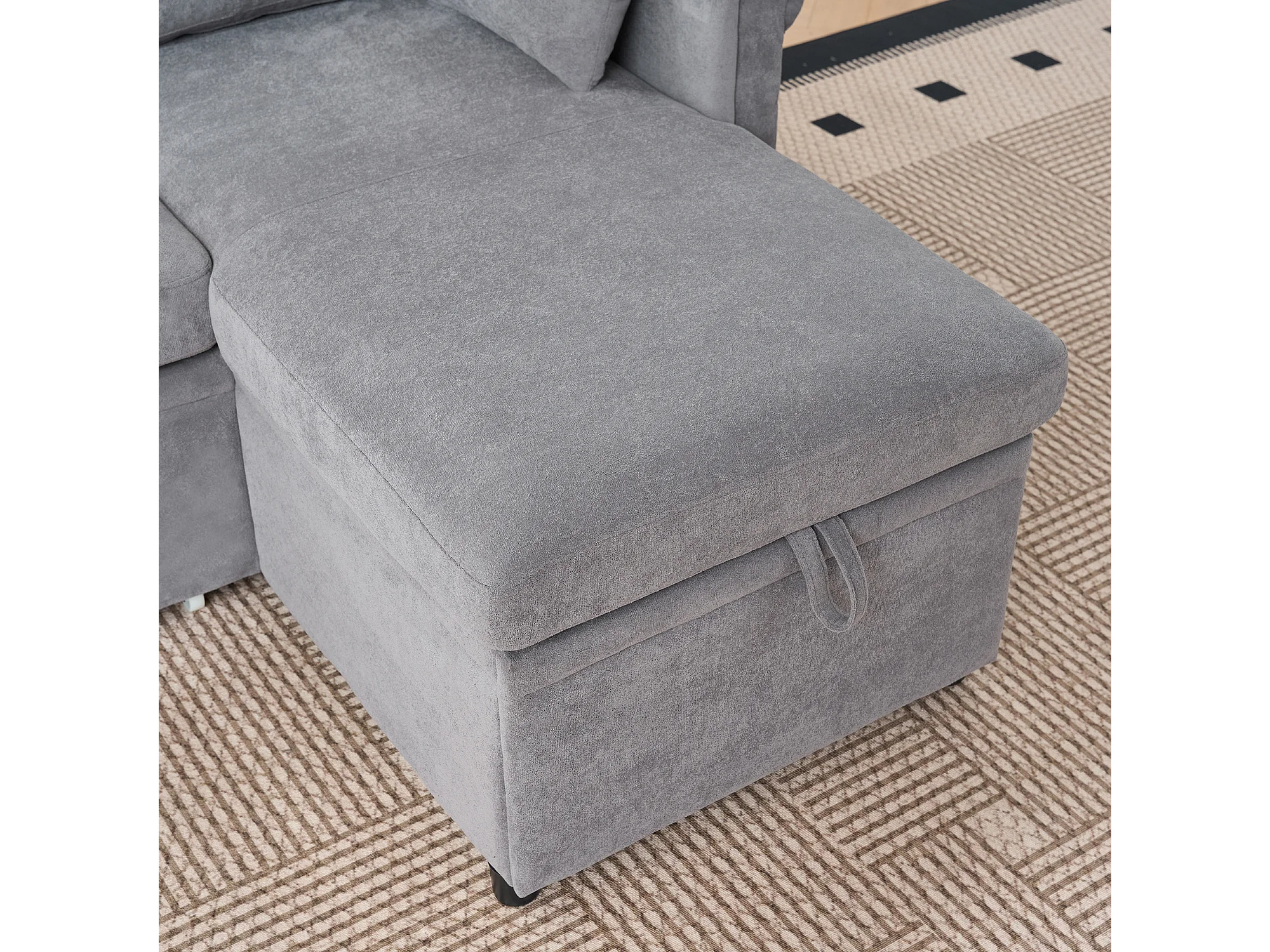 Canapé 3 places d'angle en forme de U avec rangement - Canapé-lit en tissu chenille - Gris