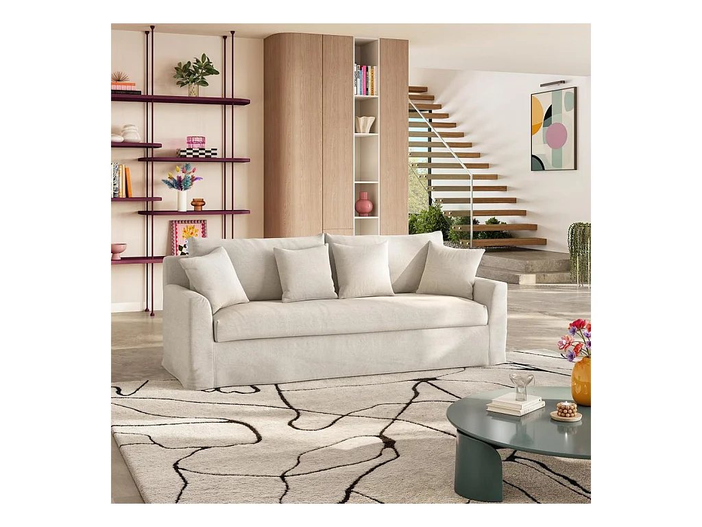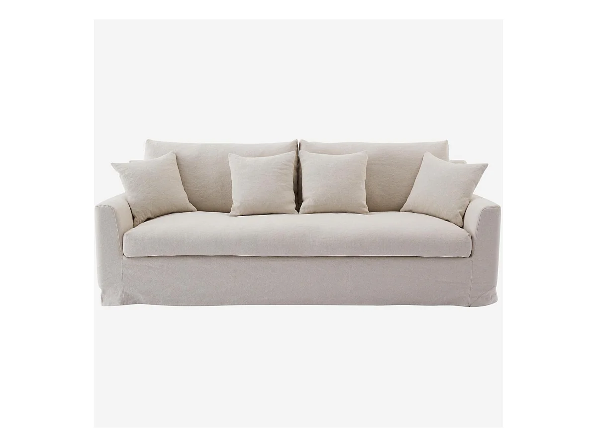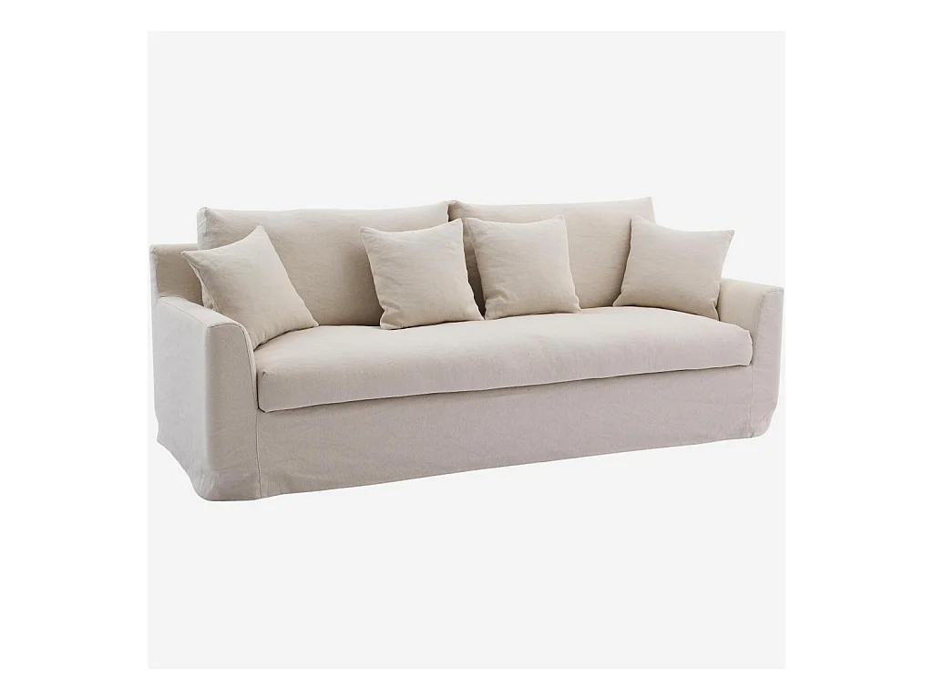 Habitat - Canapé 3 places déhoussable en coton et lin garni de plumes - Sable blanc - Ostuni