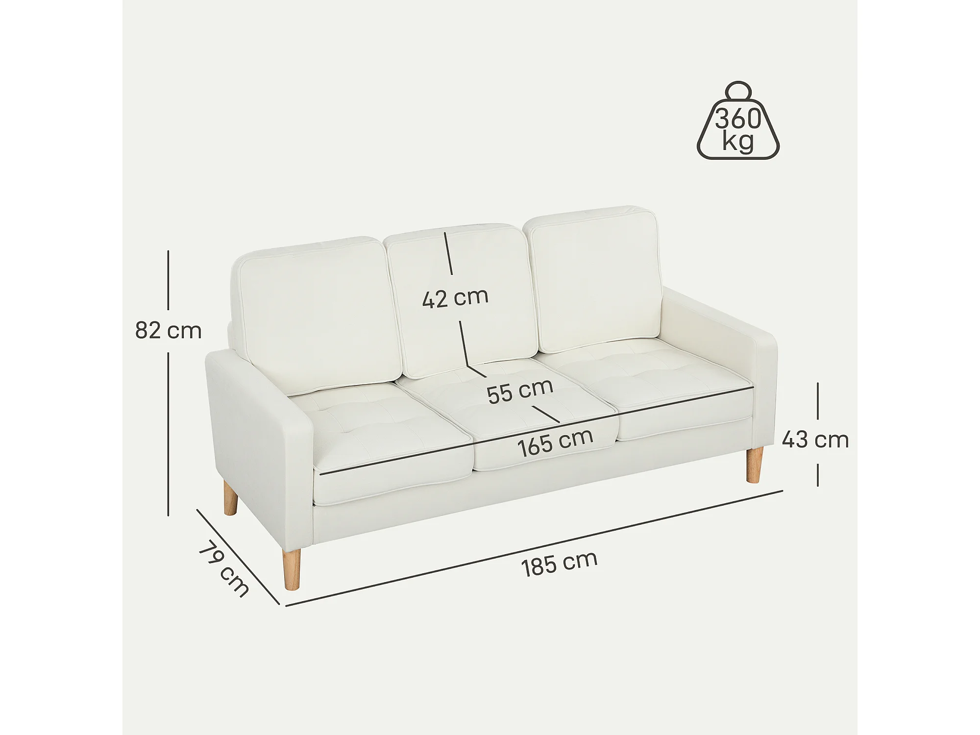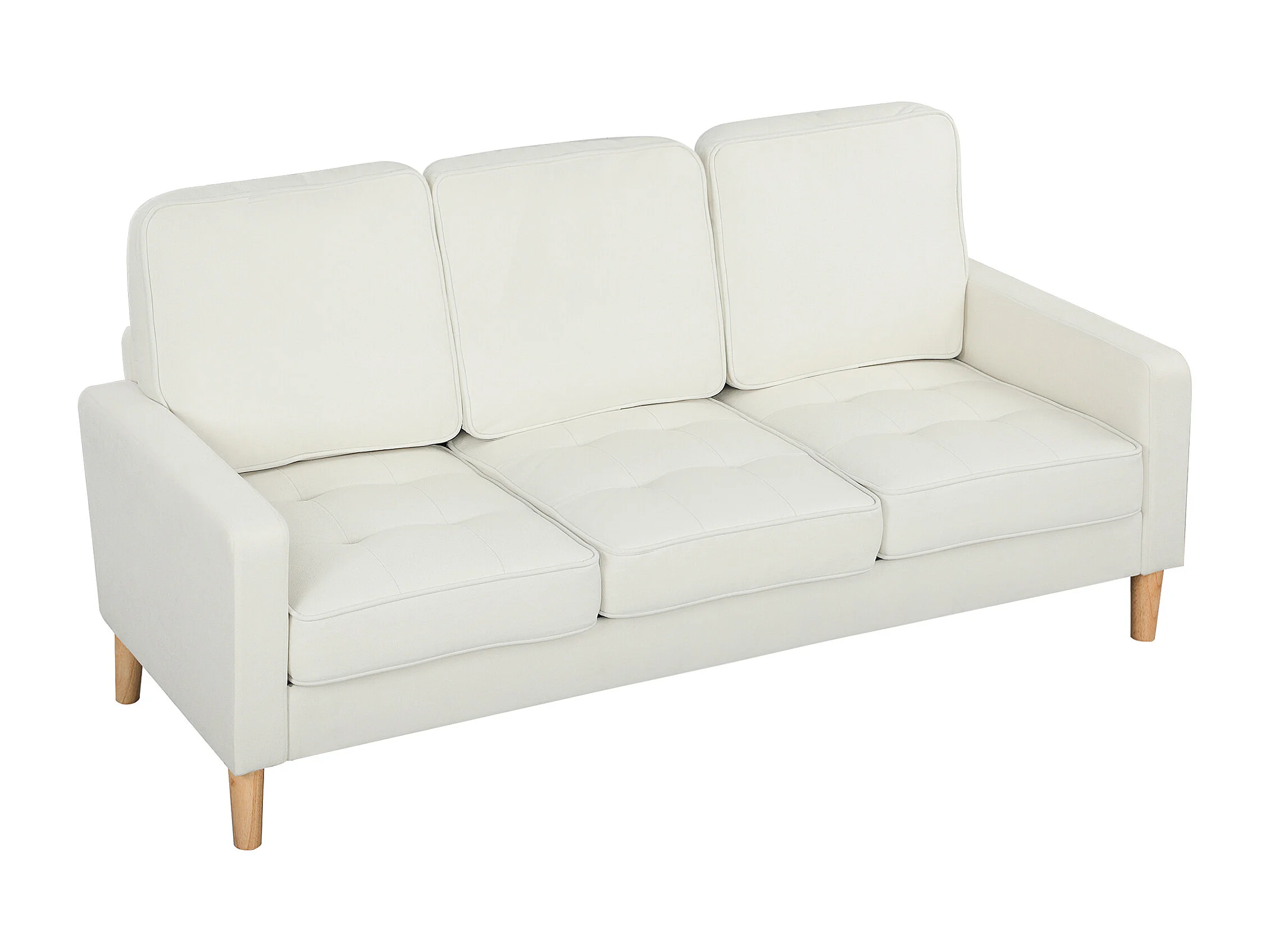 Canapé 3 places design assise effet capitonné piètement effilé bois velours crème