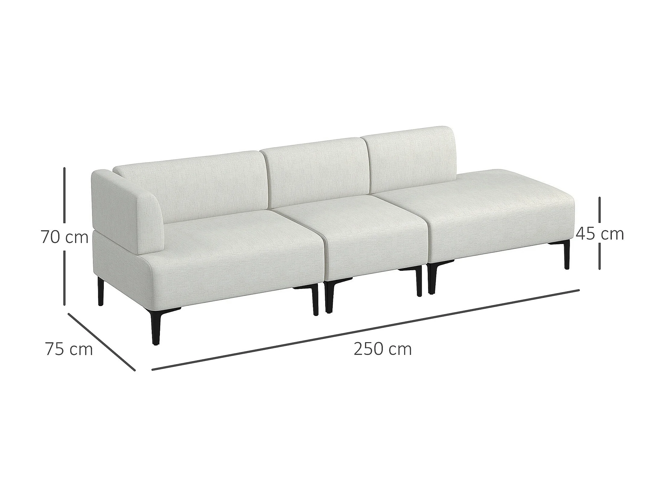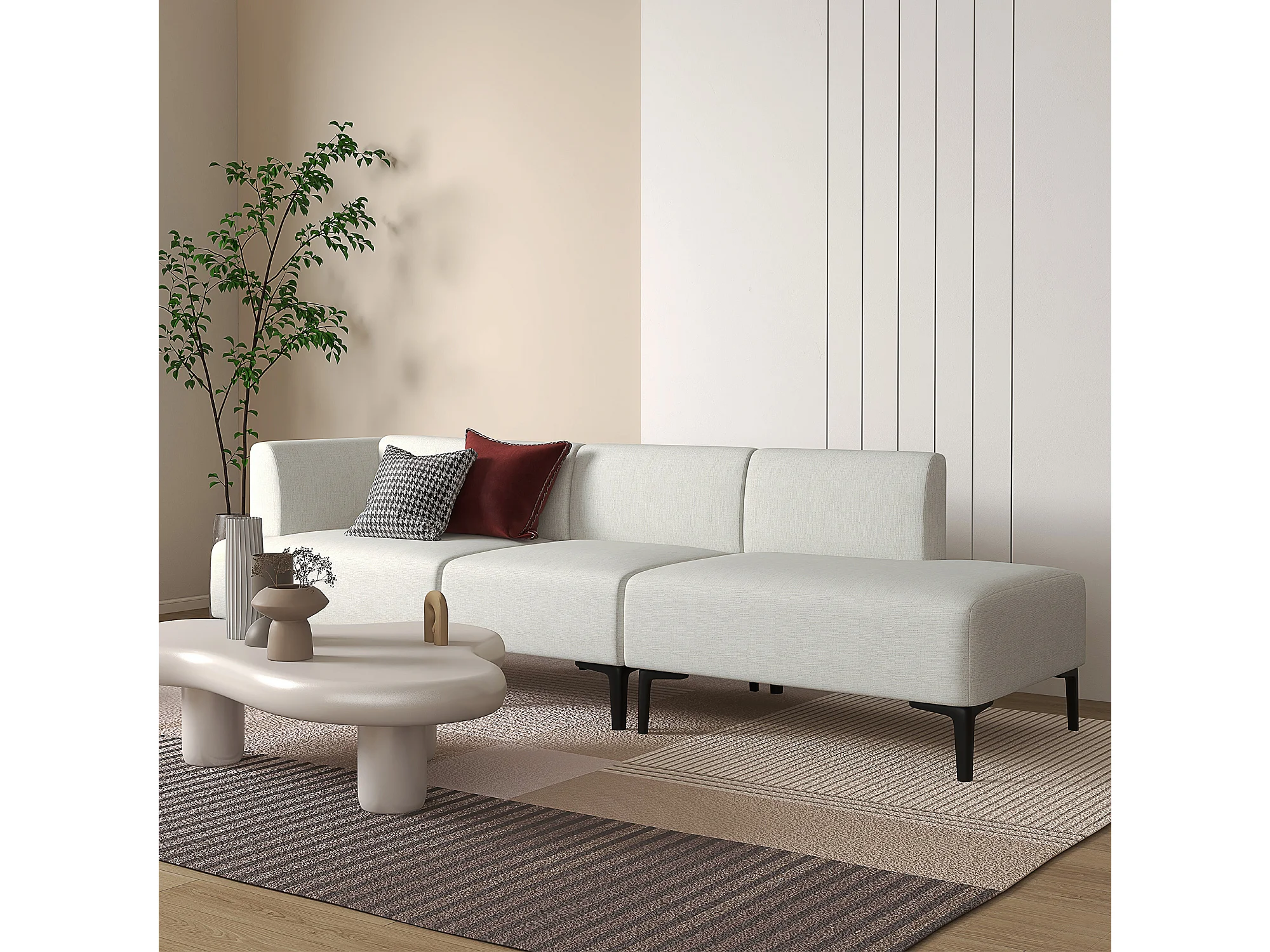 Canapé 3 places design contemporain modulable piètement acier noir tissu aspect lin blanc cassé