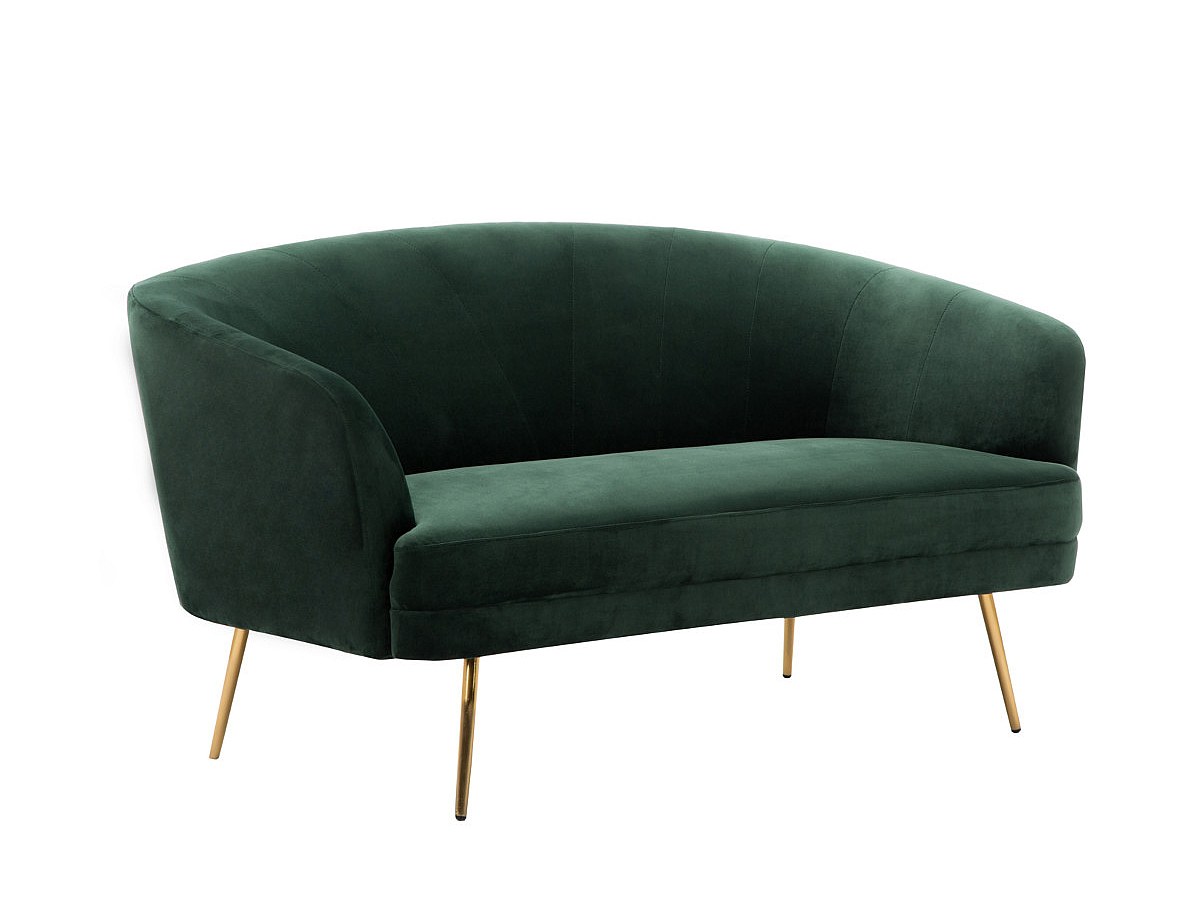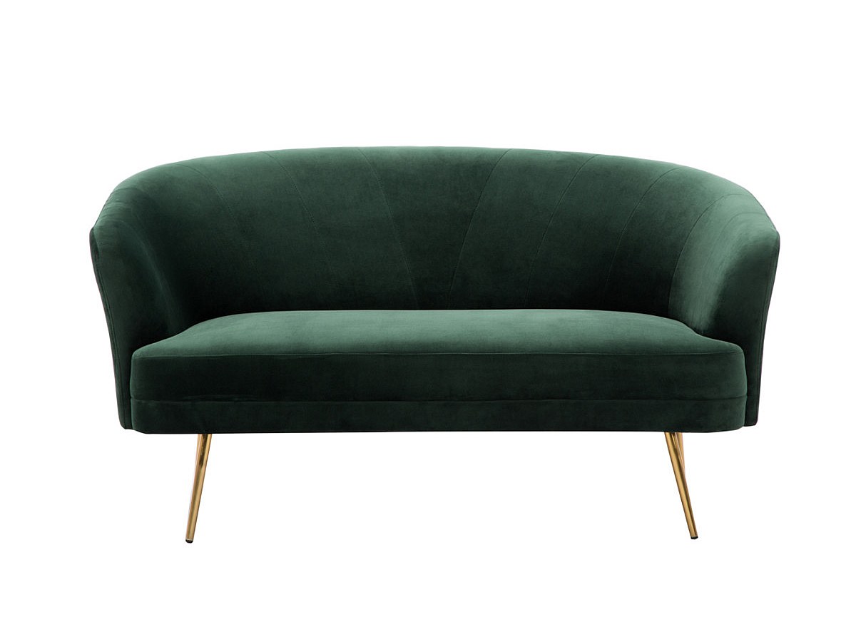 Avec ses pieds dorés, son revêtement en velours et sa forme arrondie, le canapé DOMUR ne manque pas d'atouts pour vous séduire ! Telle une invitation à vous asseoir, il n'attend que vous !