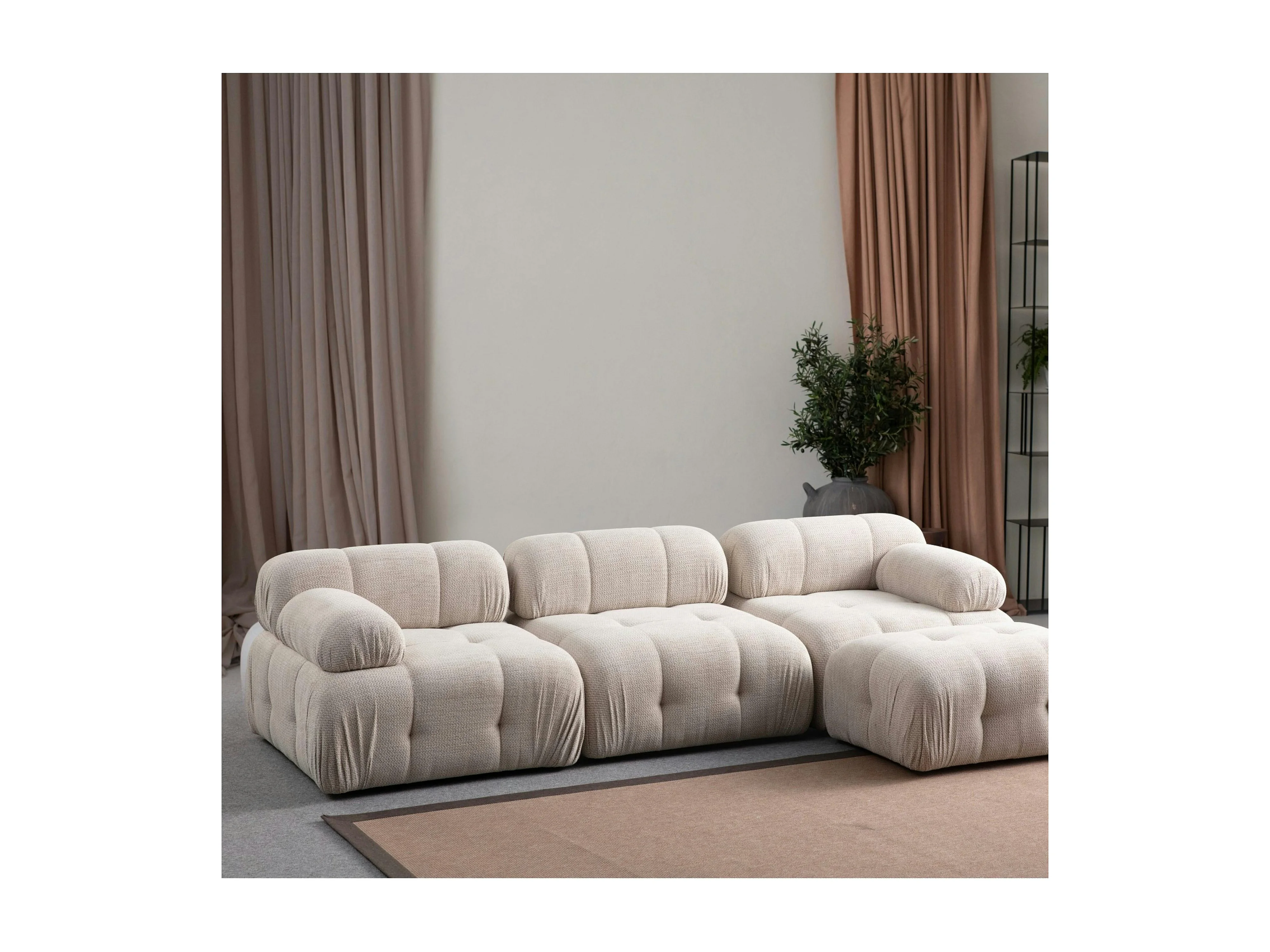 Canapé 3 places écru 290 cm, avec repose-pieds ICA