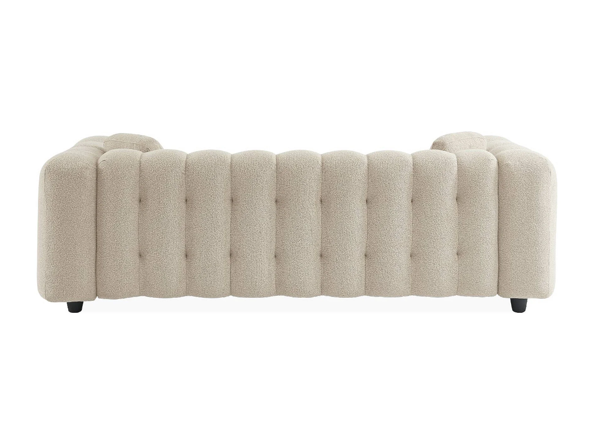 Canapé 3 places en bouclette texturée capitonné beige - Structure bois d'eucalyptus et contreplaqué
