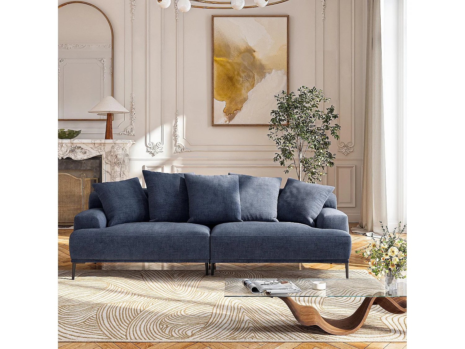 Habitat - Canapé 3 places en coton et lin garni de plumes - Bleu - Ottone II