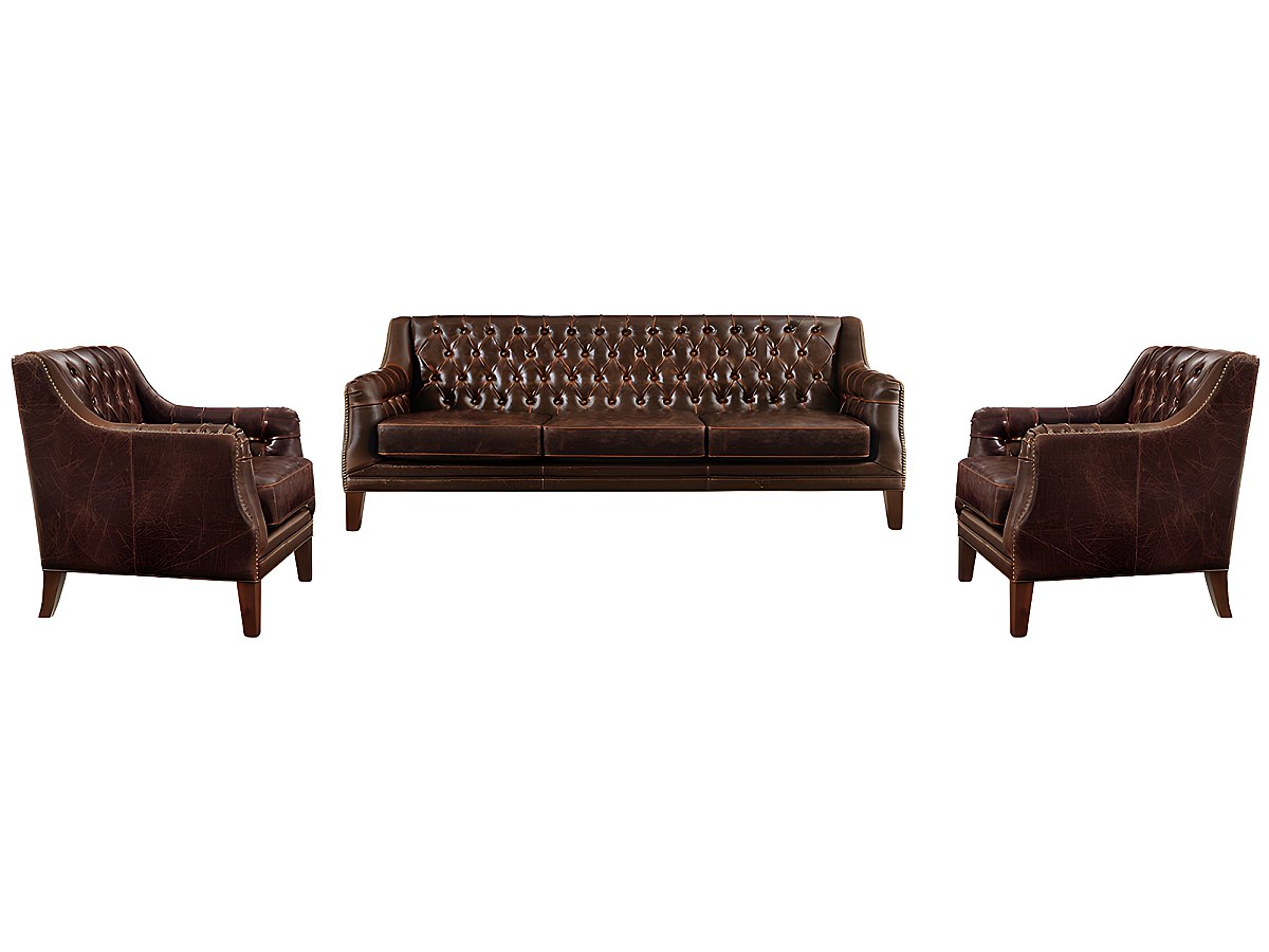 Ce salon a été spécialement conçu pour garantir une authenticité de style grâce à son cuir vieilli couleur chocolat et à sa structure en bois.