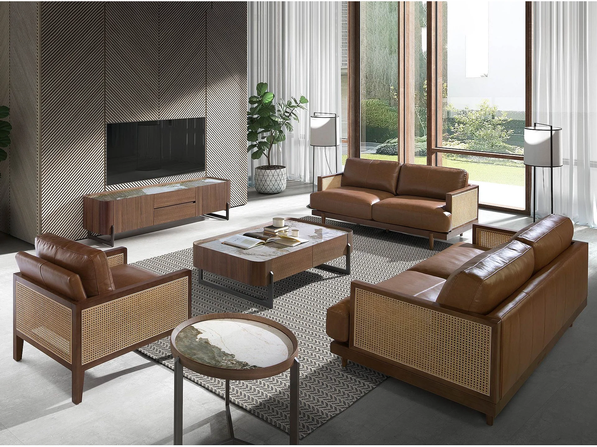 Canapé 3 places en cuir marron 6177 ANGEL CERDA
