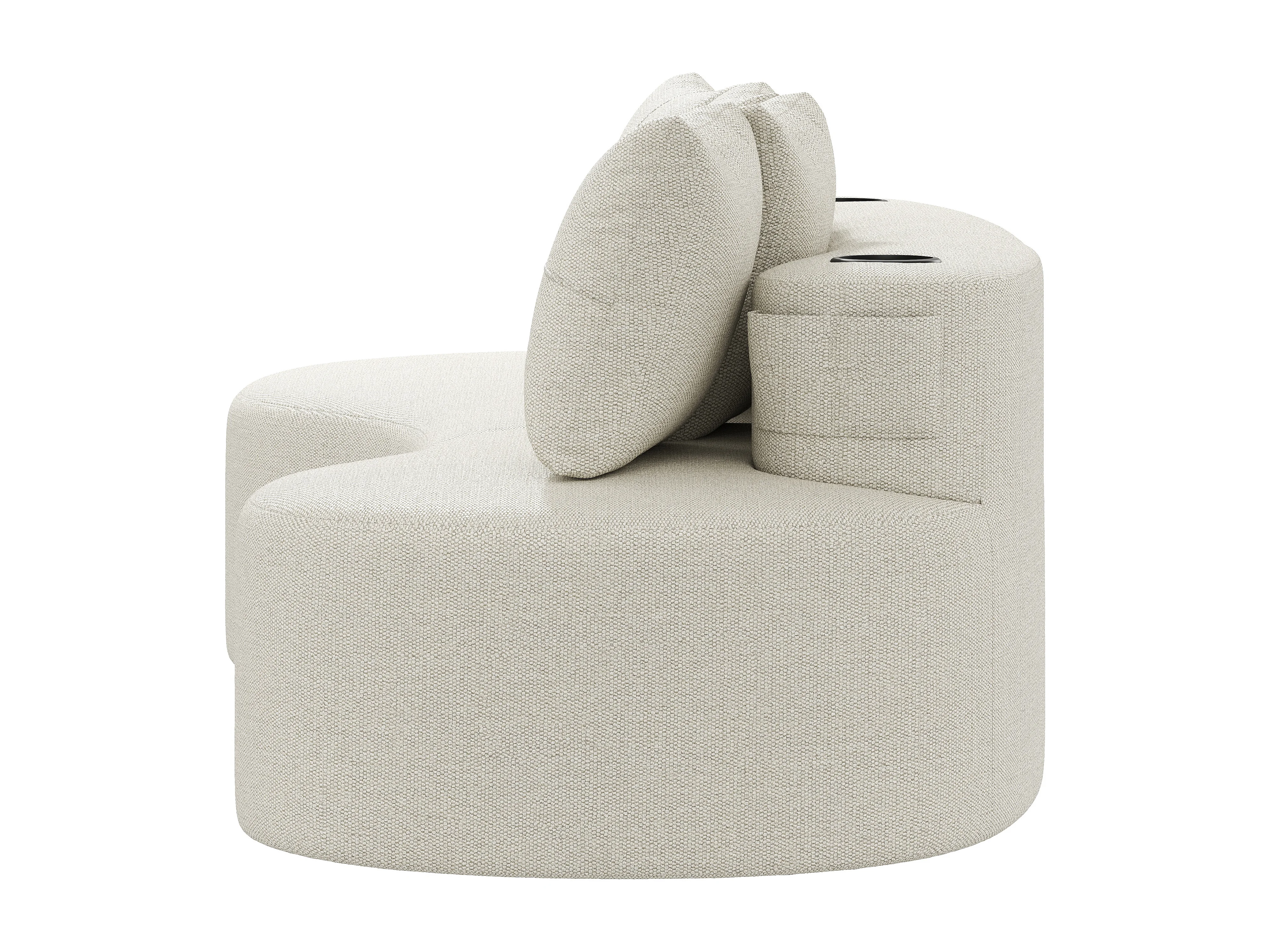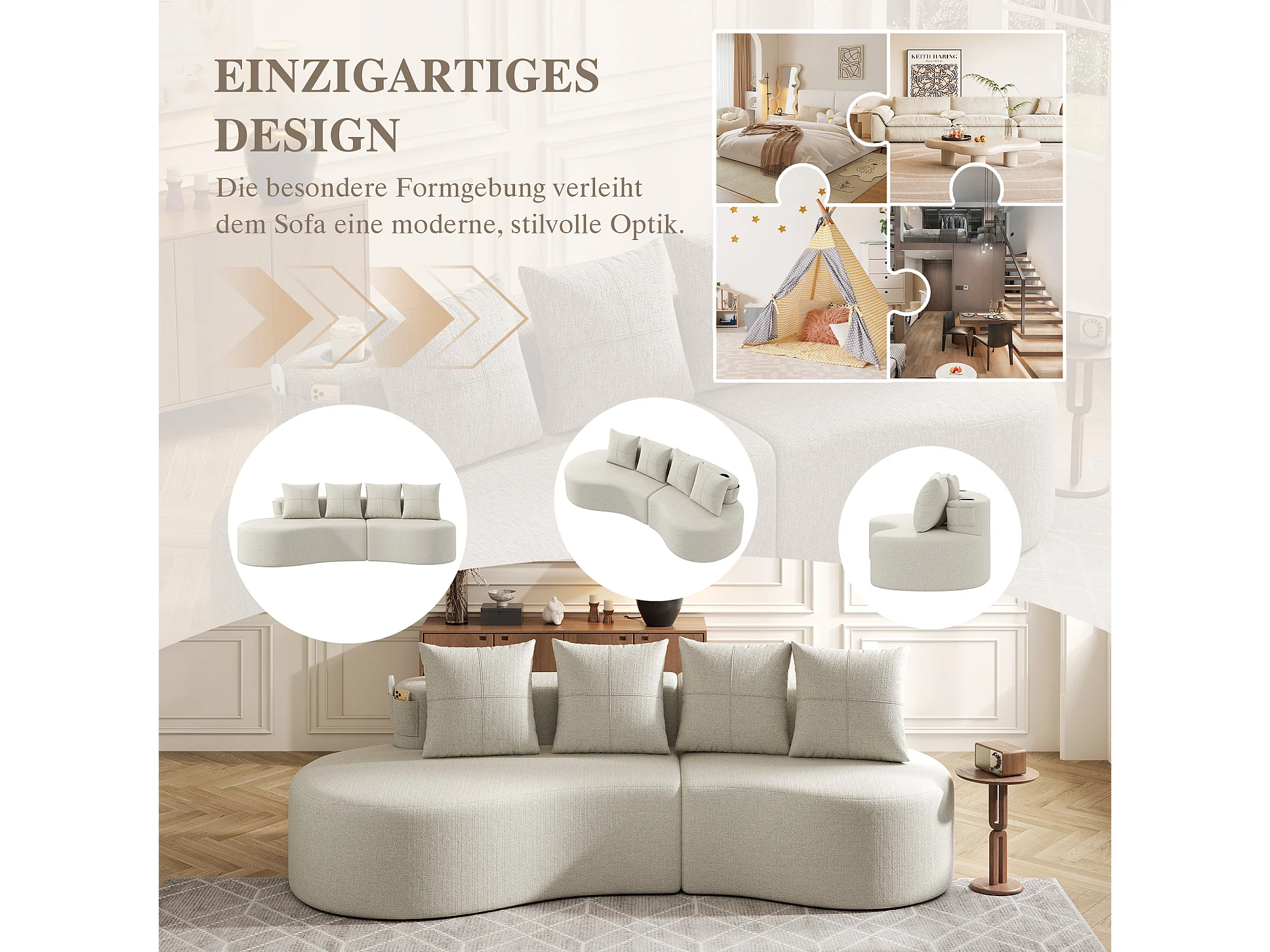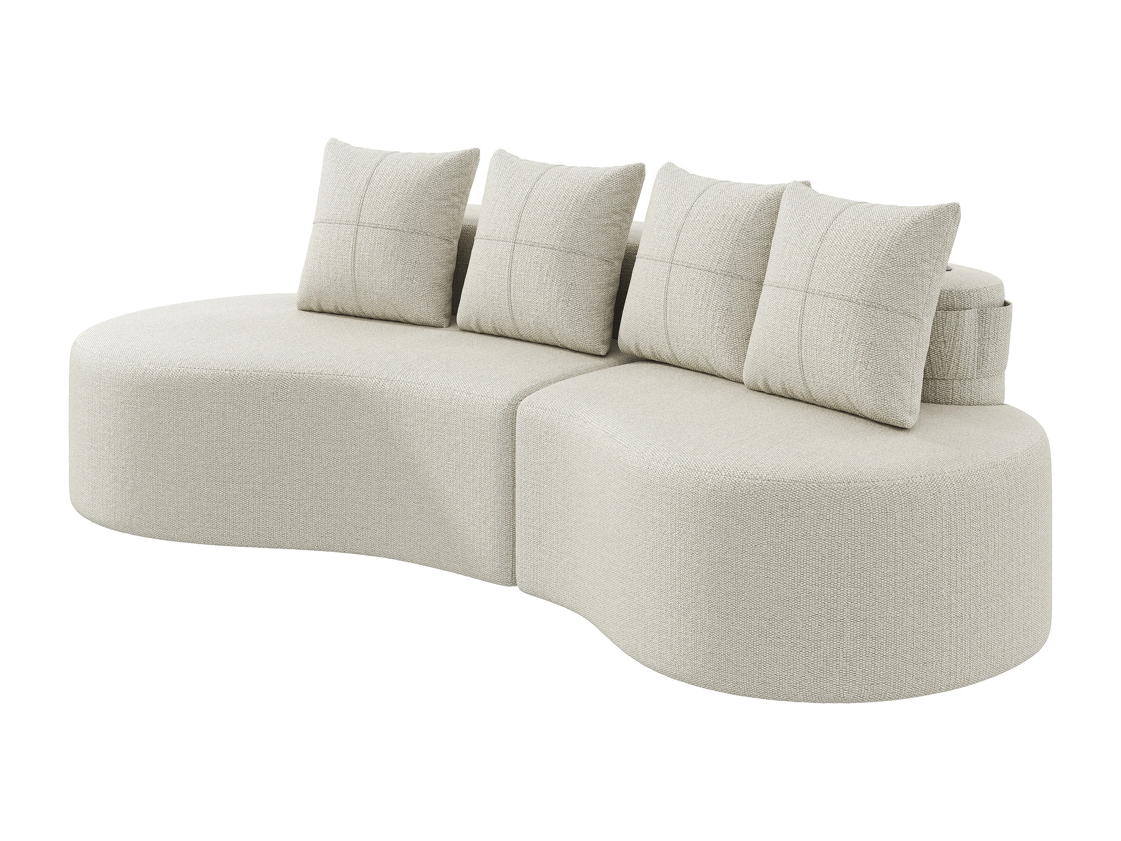 Canapé 3 places en lin avec 4 coussins, porte-gobelet et poche latérale - Beige