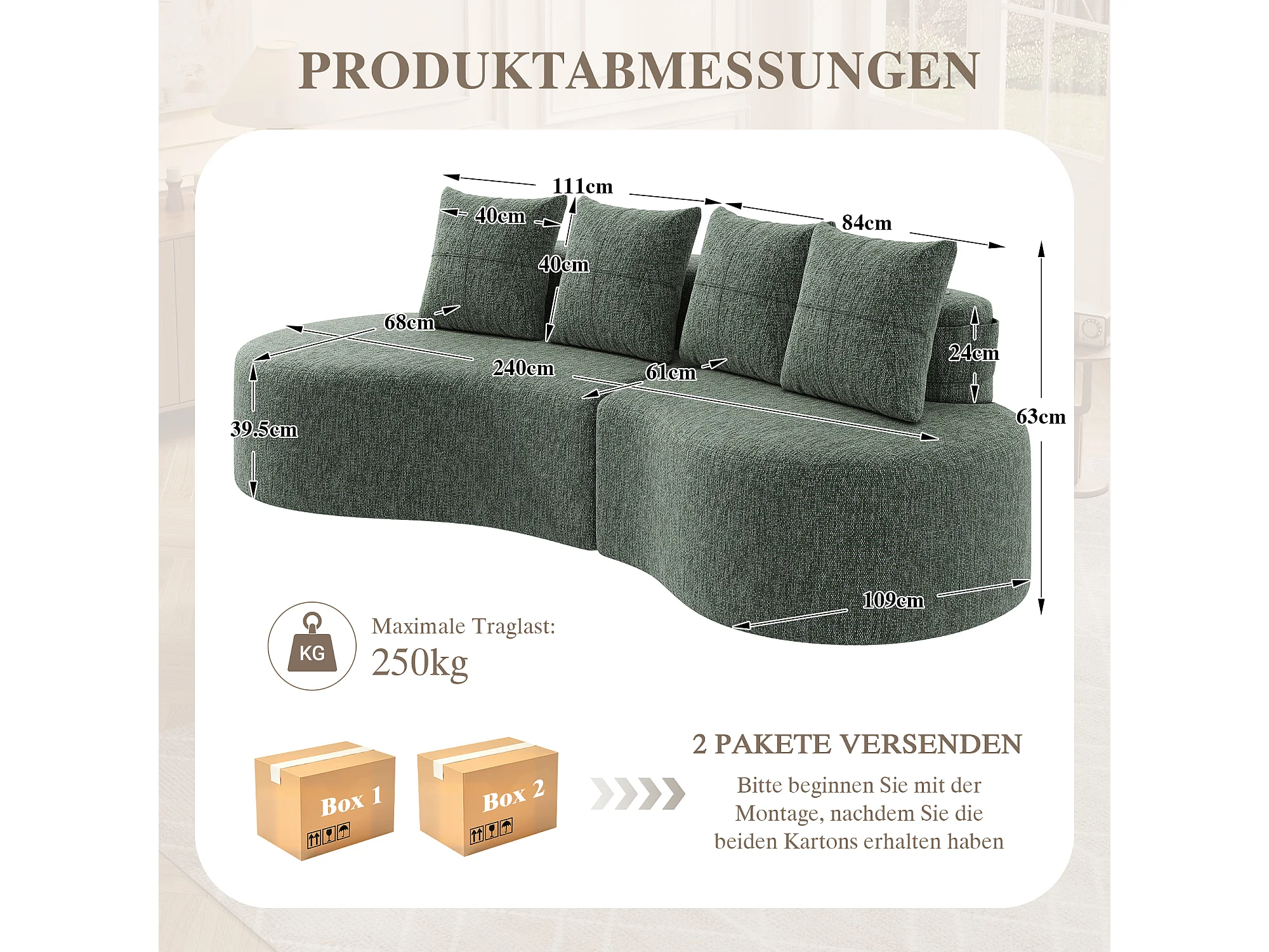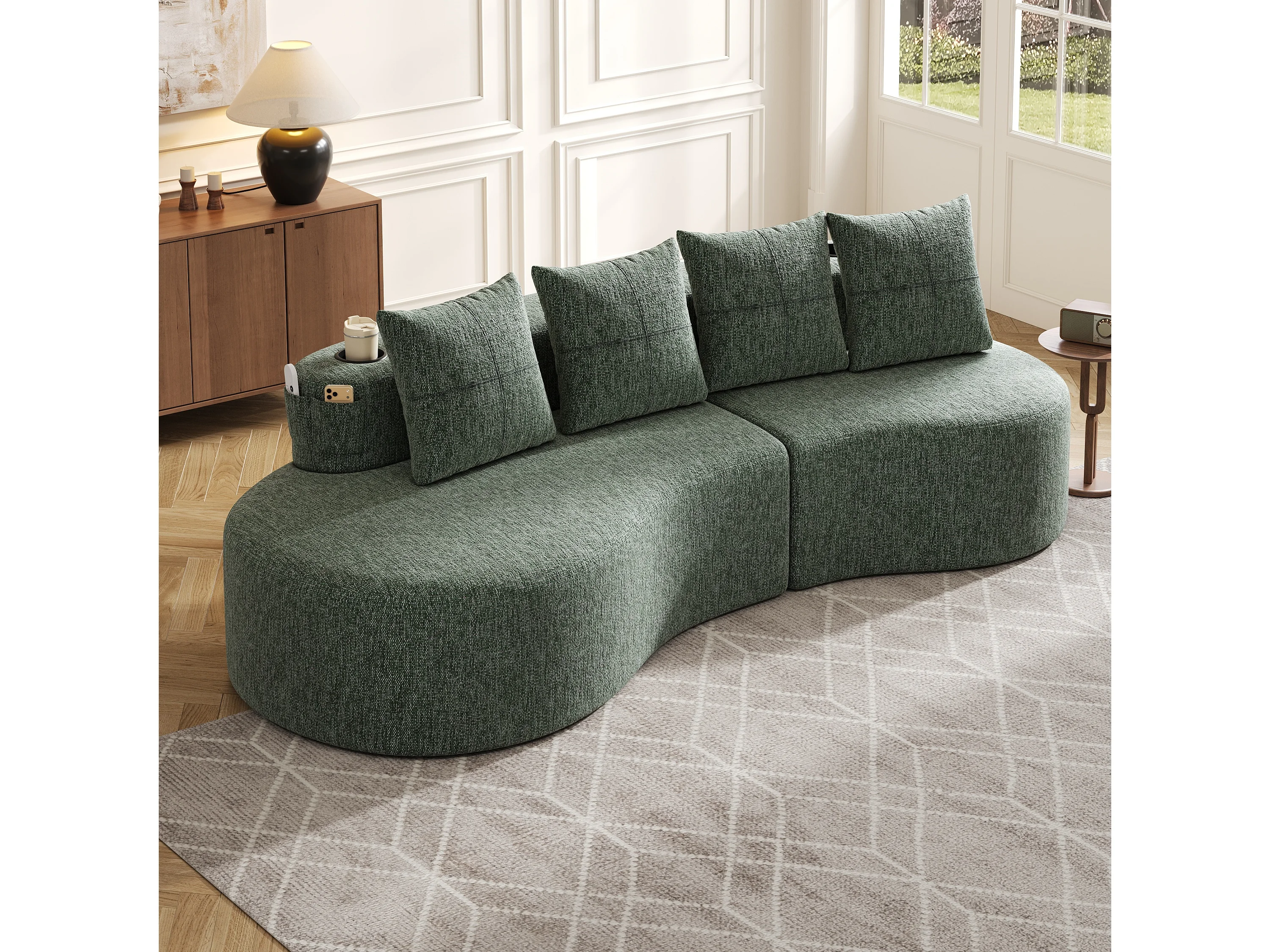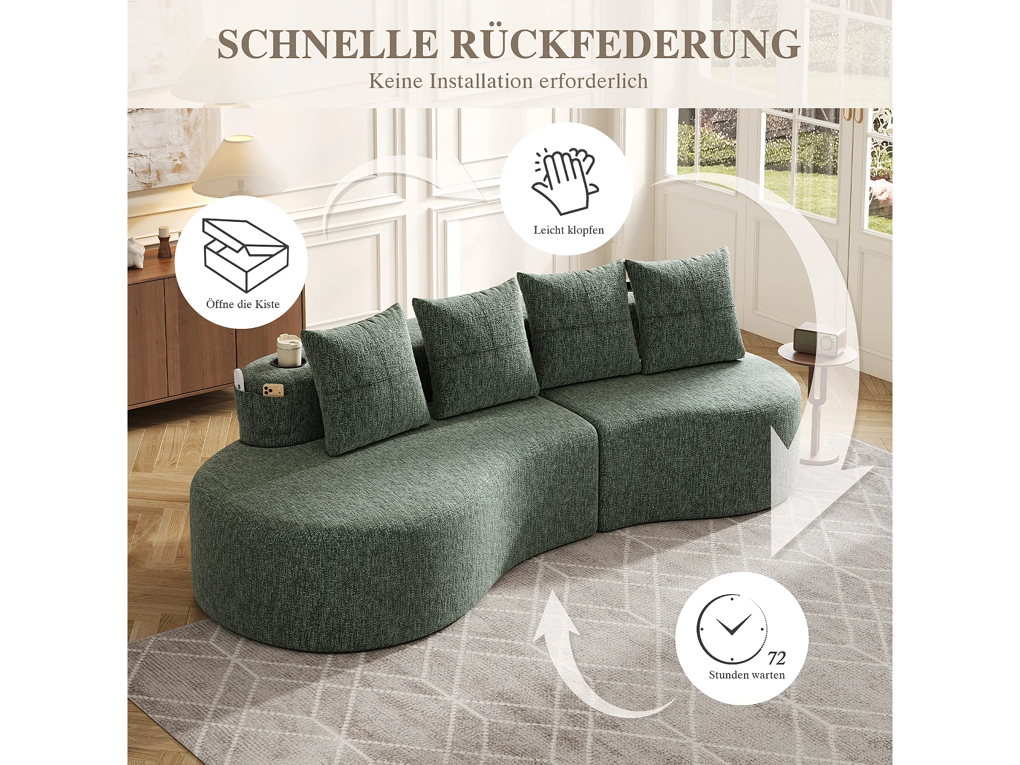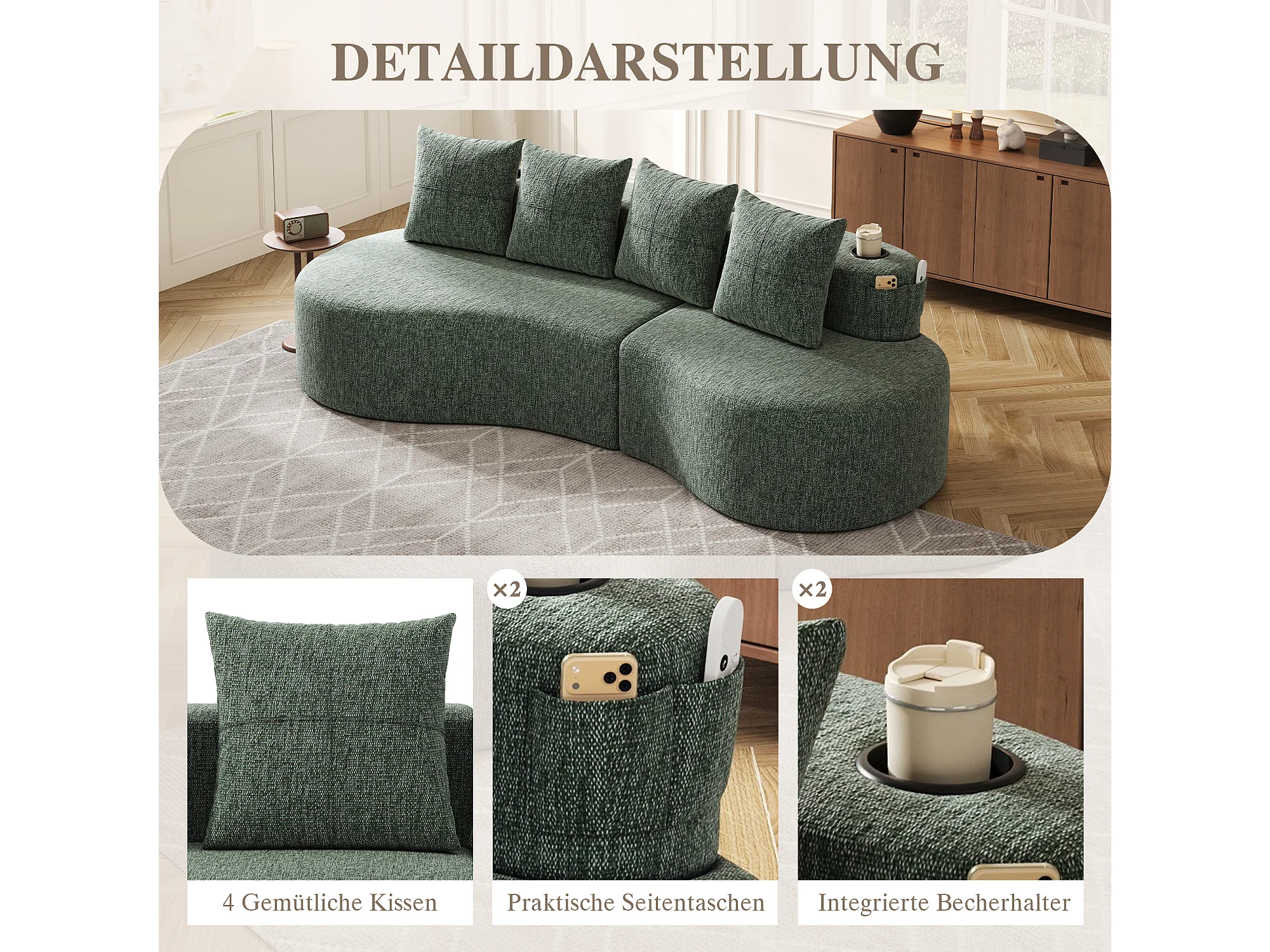 Canapé 3 places en lin avec 4 coussins, porte-gobelet et poche latérale - Verr