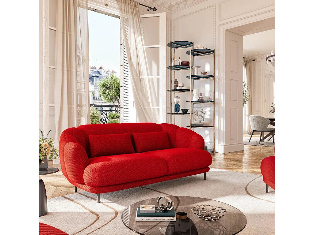 Habitat - Canapé 3 places en tissu 3D et dossier garni de plumes - Rouge coquelicot - Design by Federica Francini - Paraty