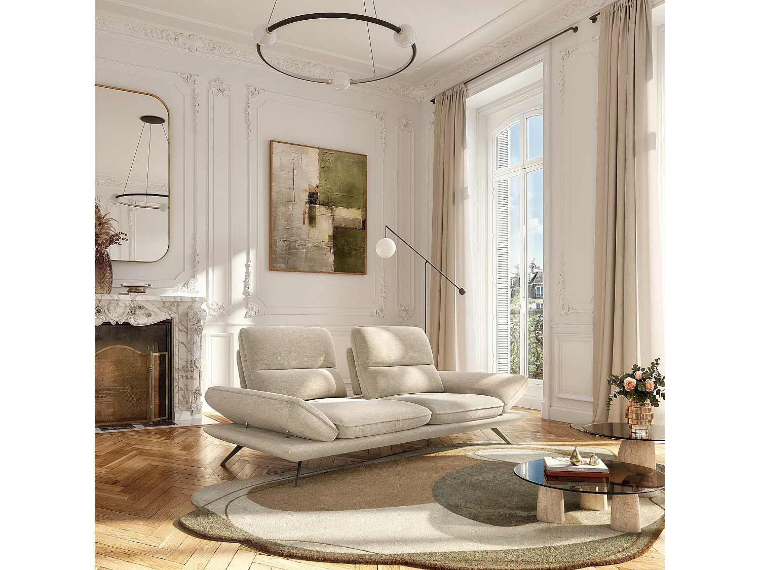 Habitat - Canapé 3 places en tissu avec dossier avance-recule - Crème - Ropio
